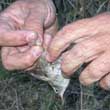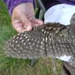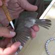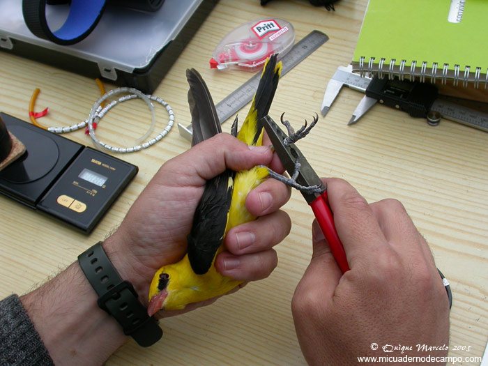 La colocación de una anilla en la pata de un ave marca