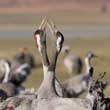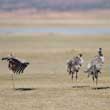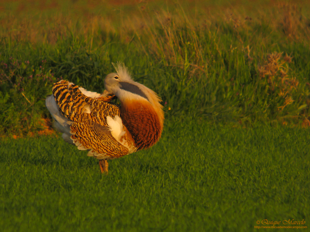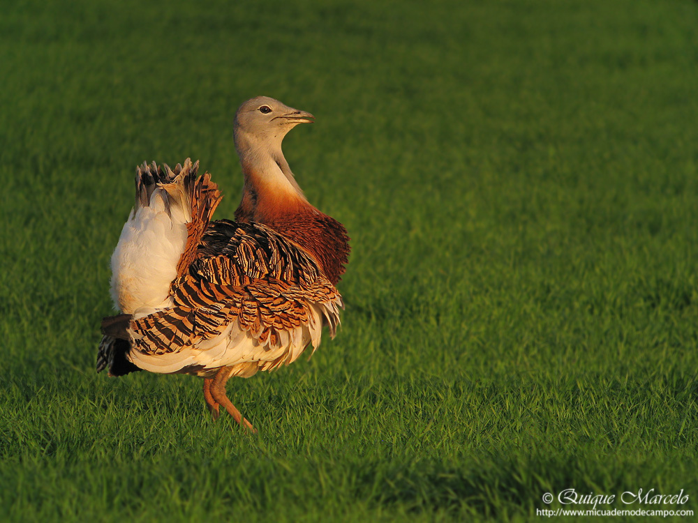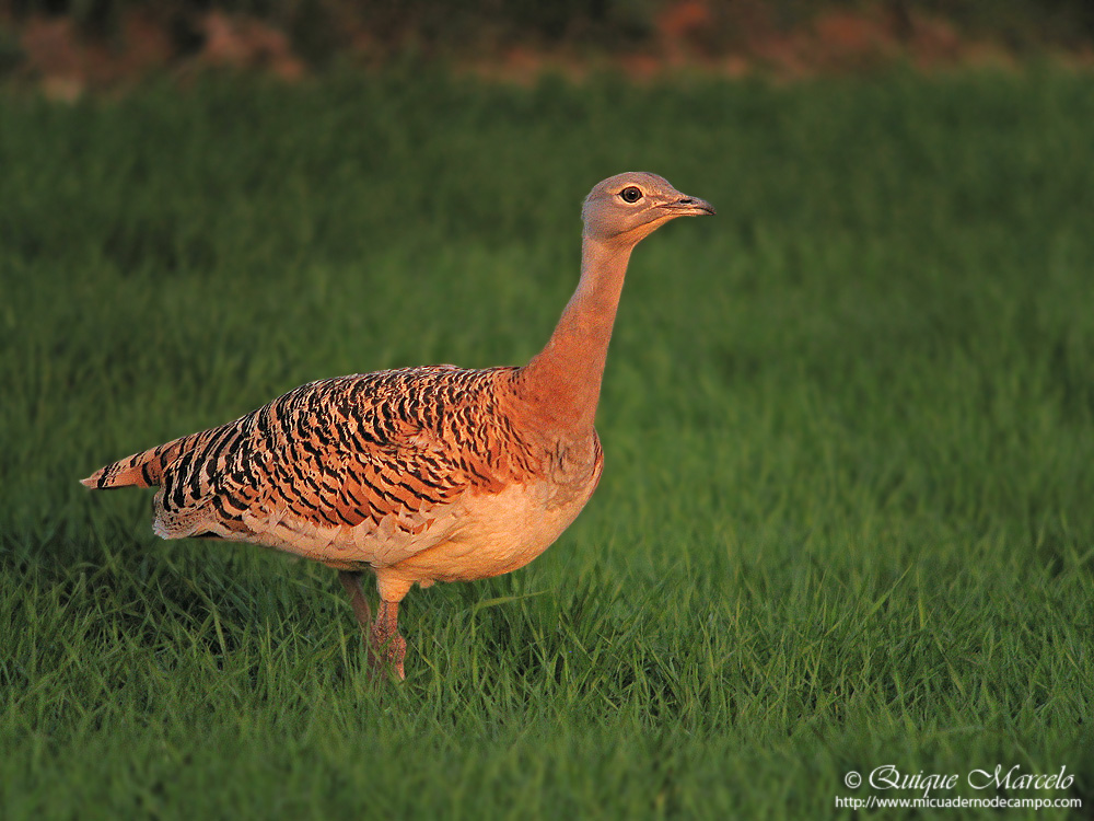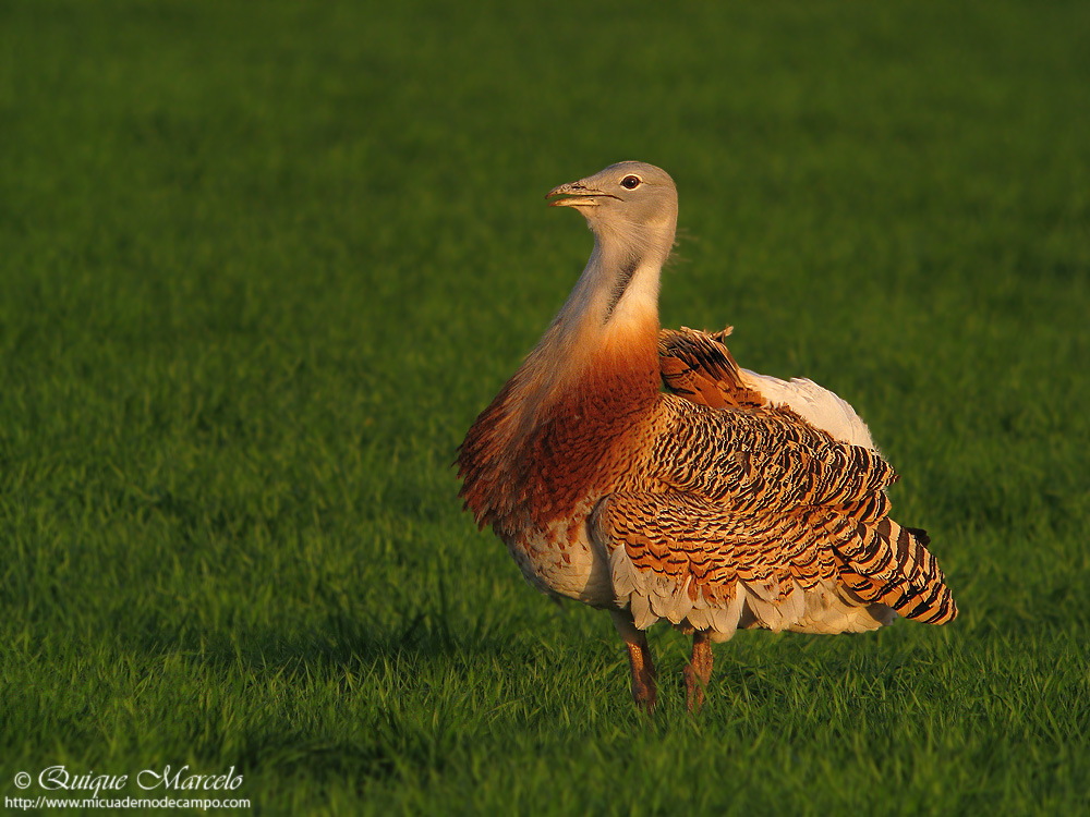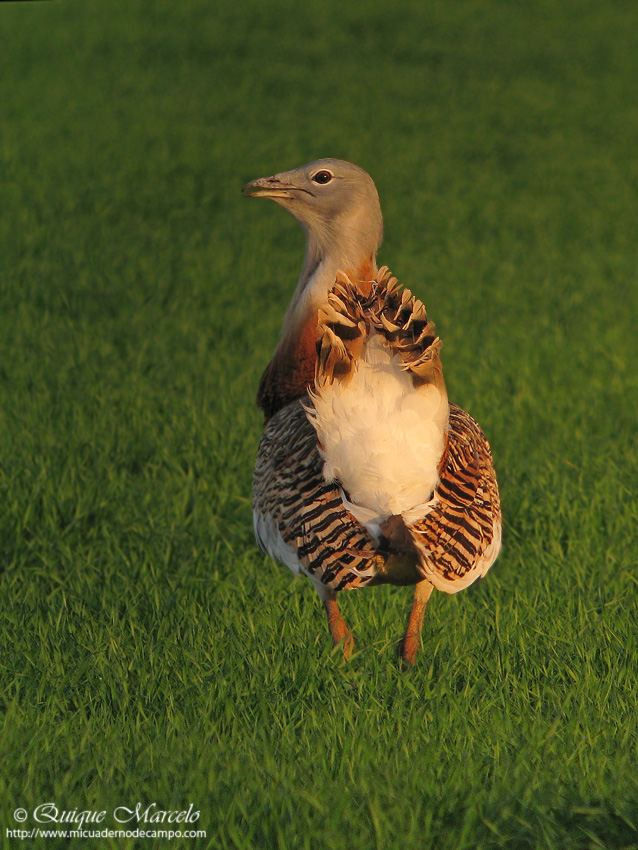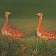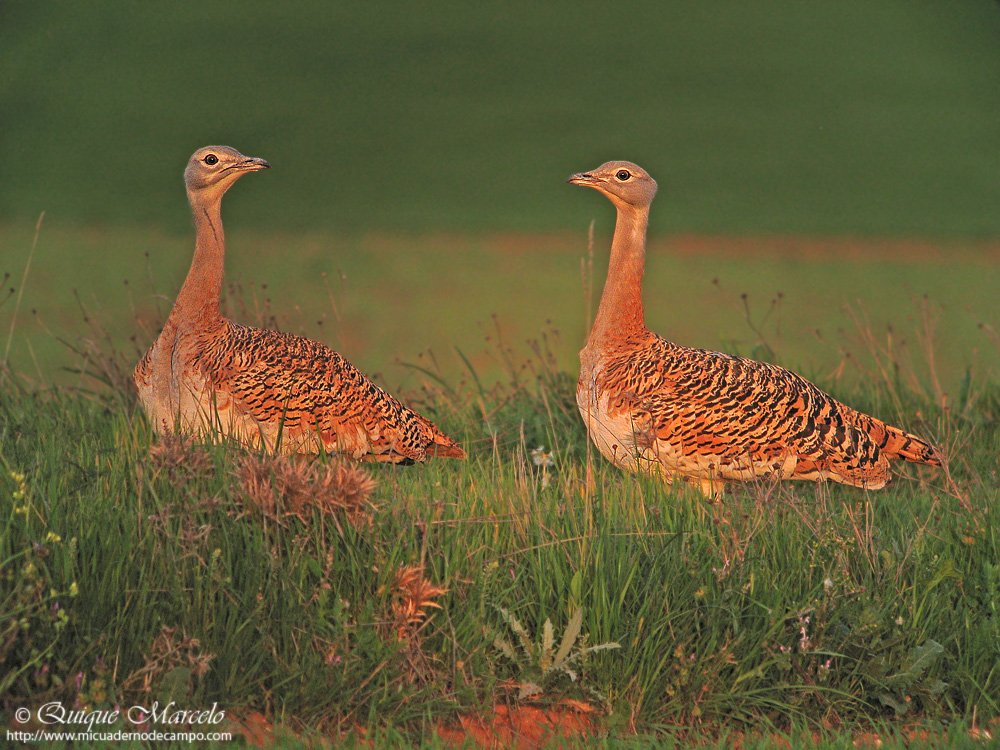 Aves altas, erguidas, de paso largo, tipo garza, pero con el pico mas pequeño y el cuello más grueso que se ensancha en los hombros (en el caso de la avutarda y sisón).