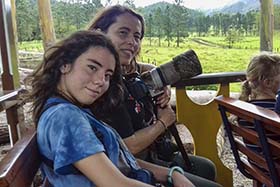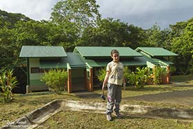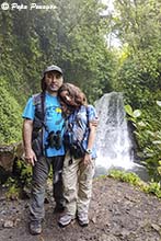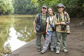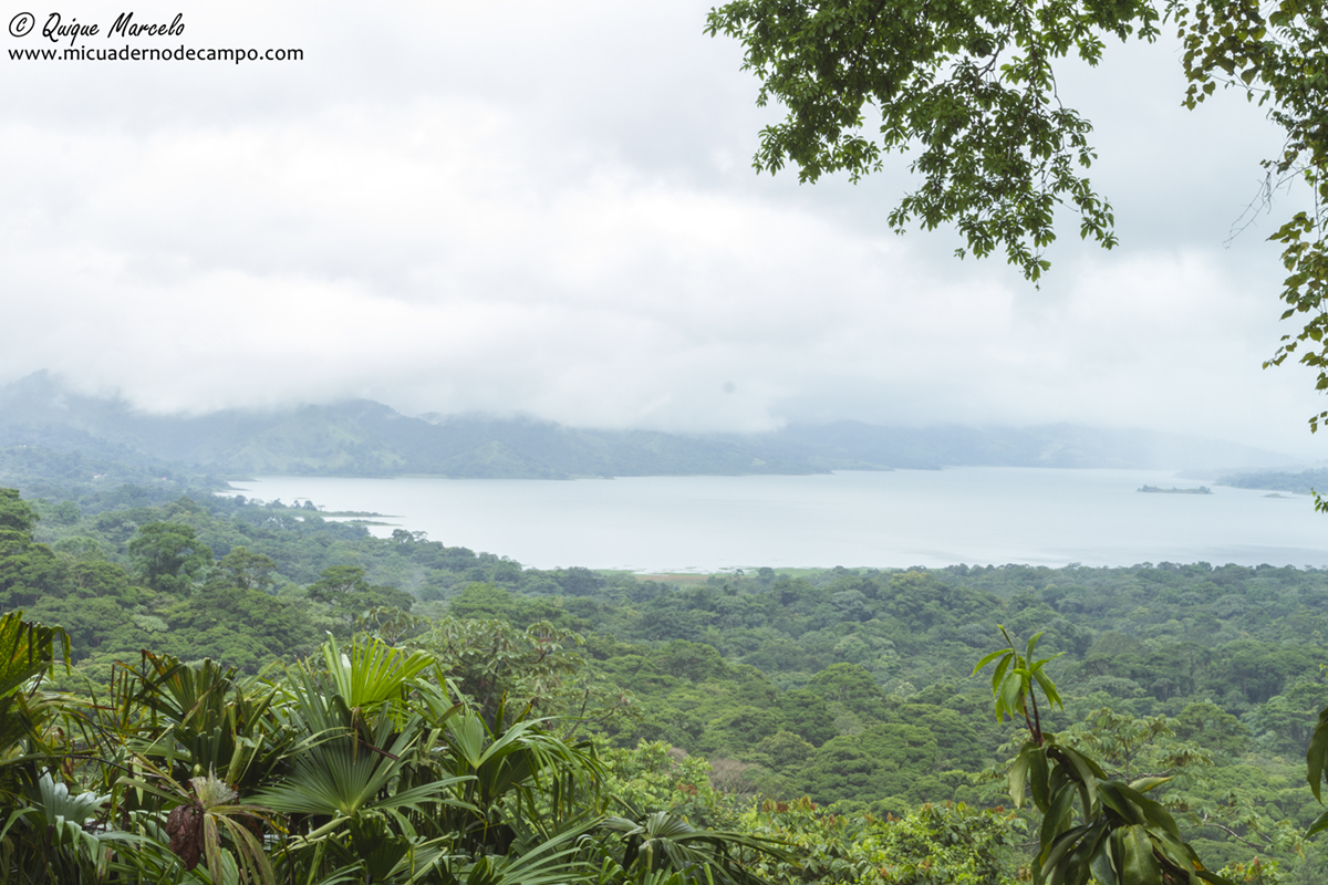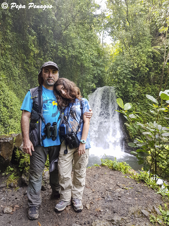 Nuevamente me levanto temprano y me doy una vuelta por la zona donde estaba nuestro lodge. Me acerco a un rincón de ese magnífico jardín, donde desde un asiento se puede disfrutar de una impresionante vista del lago, aunque está lloviendo intermitentemente, en alguna ocasión con tanta fuerza que me tengo que resguardar debajo de los aleros de los lodges. Aun así, puedo ver Tangara cabecidorada (Tangara larvata), Colibrí cabeciazul (Klais guimeti) y Semillero piquigrueso (Oryzoborus funereus), entre otros. Con las chicas ya levantadas, nos vamos a desayunar y desde la balconada del comedor puedo ver unos comederos donde acuden bastantes pájaros, entre ellos, Cacique de Moctezuma (Psacorolius montezuma), Mielerito patirrojo (Cyanerpes cyaneus) y Cerquero negrilistado (Arremonops conirostris). Con el buche lleno, después del desayuno, nos dirigimos a la recepción, ya que, allí nos espera Eduardo para hacer un tour guiado por los senderos de aquel magnífico lugar que es el Arenal Observatory lodge. Hacemos la caminata por el sendero de La hormiga, donde podemos ver entre un amasijo de hojas y ramas un grupo de Cacique de Moctezuma (Psacorolius montezuma), además de un Picamaderos listado (Dryocopus lineatus), un precioso Tucán de pico castaño (Ramphastos swainsonii) y un nutrido grupo de Monos cariblancos (Cebus capucinus). La verdad es que, aunque la idea ornitológica de Eduardo es bastante escasa, hizo muy entretenida la caminata, contando a los asistentes historias del volcán Arenal. Como curiosidad, nos cuenta que el primer sismólogo que hubo en la zona fue un ganadero que es el primero que avisó en aquel maldito 29 de julio de 1968 que todo el mundo se fuera de la zona, ya que, el volcán estaba entrando en erupción, a lo que los vecinos le dijeron que eso no era un volcán, sino una montaña. El volcán a los dos días entró en erupción produciendo casi un centenar de muertos en la zona. Aquel ganadero se dio cuenta porque por su finca empezaron a correr despavoridos animales que bajaban de aquella, hasta entonces, montaña, por tal motivo, los ticos dicen que fue el primer sismólogo que hubo en Costa Rica. Finalmente, la caminata termina en una bonita catarata, donde hacemos la obligada foto y regresamos a la recepción montados todo el grupo en un tractor con un remolque de asientos. Ya eran las 11:00 horas, cuando decidimos ir a almorzar a La Fortuna, localidad cercana a Arenal. En el camino podemos ver Bienteveo común (Pitangus sulphuratus), Zanate cantor (Dives dives), Tirano melancólico (Tyrannus melancholicus), Bienteveo sociable (Myiozetetes similis), etc. Después de comer nos dirigimos hacia el lago Arenal, sito al pie del volcán, donde localizamos un bonito Martín gigante neotropical (Ceryle torquatus) posado en una pasarela, también allí vemos Mosquero negro (Sayornis nigricans), y un grupo de Espigueros de collar (Sporophila torqueola), éstos últimos fueron vistos por un birdwatcher costarricense que estaba por la zona viendo pájaros. Esta misma persona nos indica un camino para recorrer andando que es bastante bueno para la observación de aves. Nos ponemos manos a la obra y nos damos un paseo por ese camino que sale desde el puente del lago. Allí pudimos ver Carpintero alirrufo (Piculus simplex), Tangara terciopelo (Ramphocelus passerinii), Trepatroncos cabecirrayado (Lepidocolaptes souleyetii), Amazilia de cara rufa (Amazilia tzacatl), Bienteveo pitanguá (Megarhynchus pitangua), Tucán piquiverde (Ramphastos sulfuratus), etc. Llegamos al lodge sobre las 18:00 horas y ya la noche había caído, sin pensarlo mucho, nos dirigimos a un ranario natural que tiene el lodge, como a unos 500 metros andando por un sendero. La visita al ranario resulta ser muy productiva y podemos ver varios ejemplares de la preciosa Rana calzonuda (Agalychnis callidryas), además de Sapo neotropical gigante (Bufo marinus) y una bonita y diminuta rana llamada, Rana arbórea amarillenta (Dedropsophus ebraccatus). De vuelta a nuestro alojamiento nos encontramos en el camino con una serpiente que resultó ser una Bejuquilla manchada (Imantodes cenchoa). Cuando pedí a mis chicas que la alumbraran con la linterna para poder fotografiarla, éstas ya habían salido corriendo hacia al lodge, fue un momento para echarse unas risas. Cenamos en una pizzería en la Fortuna y a dormir. |