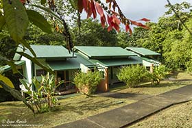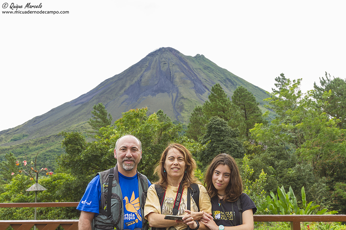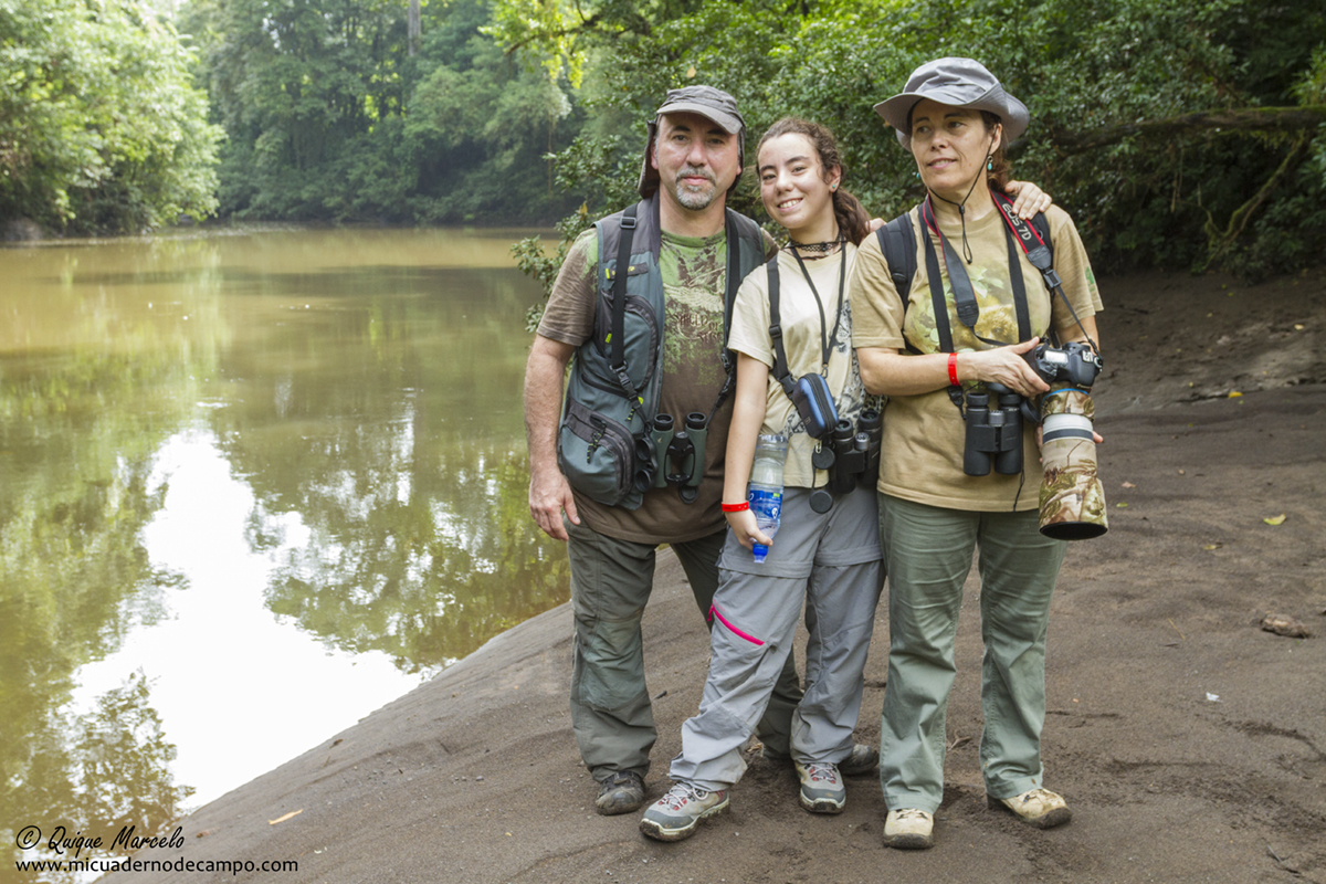 Empezó el día temprano, como todos los anteriores, con una corta salida a los jardines mientras que las chicas se levantaban, donde además de los pájaros vistos el día anterior, pude también observar un nutrido grupo de Amazona harinosa sureña (Amazona farinosa), unos loros bastante ruidosos y una pareja de Carpintero centroamericano (Melanerpes pucherani) afanándose en hacer un agujero en un poste de electricidad. Pronto las chicas salieron de la habitación y fuimos a desayunar al recinto principal de la estación. Antes de irnos allí, preguntamos al guarda hacia donde iba el camino que se encontraba nada más salir de la zona de los lodges, a lo que nos respondió que llegaba al río. Pensamos que podía ser un buen sitio para después de desayunar pasar el resto de la mañana antes de partir hacia Volcán Arenal, nuestro próximo destino. Cuando terminamos de desayunar, montamos en el coche y nos dirigimos de vuelta hacia la zona de lodges y bajamos con el coche por el camino que habíamos hablado anteriormente con el guarda. El camino empeoraba por momentos y decidimos no bajar más con el coche y hacerlo andando. Antes de salir del coche, un precioso Trogón violáceo (Trogon violaceus) se posó en un cable de la luz y lo pudimos fotografiar y disfrutar unos segundos, un buen momento sin duda. Al llegar al río, la zona estaba sin ninguna actividad pajaril, con un agua bastante sucia que, según la gente de la zona, nos contaron que era producto de las lluvias que se estaban produciendo en San José y que arrastraban todo ese lodo. Sin nada más que hacer allí, nos hicimos las fotos de rigor al lado del río y empezamos la subida del sendero con dirección al coche, y en esto, empezó a llover a cantaros. Al llegar al coche y de igual manera que lo hizo el trogón de hacia un momento, un Momoto picoancho (Electron platyrhynchum) se posó en el cable, y también quedó fotografiado. La sorpresa llegó, cuando ya montados en el coche hicimos la maniobra para subir la pequeña cuesta que lleva al lodge, y las ruedas empezaron a patinar de tal manera que nos quedamos atascados allí sin ninguna probabilidad de subir. Andando llegué al puesto del guarda, y éste llamó por walkie a unos compañeros que en pocos minutos llegaron y nos remolcaron. Tan solo perdimos una media hora en liberar al coche de aquella trampa, una lección más aprendida en Costa Rica. Pasado el susto y ya de nuevo en la habitación, yo me di una vuelta por los alrededores, mientras las chicas se quedaban en el lodge. Tomé el camino que se dirigía a recepción y allí pude ver Trepatroncos cabecirrayado (Lepidocolaptes souleyetii), Chochín criollo (Troglodytes aedon), Cacique de Moctezuma (Psarocolius montezuma), un precioso Tucán piquiverde (Ramphastos sulfuratus), y al llegar al lugar donde el día anterior habíamos visto el Murciélago blanco, aquella hoja en forma de tienda de campaña estaba vacía en esta ocasión. Comimos pronto y salimos hacia Arenal. Paramos en una soda para tomar un refresco y en un árbol cercano vi y fotografié un grupo de Aratinga jamaicana (Aratinga nana). También en el camino en unos cables de la luz pudimos ver varios hirúndidos, entre los que se encontraban Golondrina gorgirrufa (Stelgidopteryx ruficollis) y Golondrina pechigrís (Progne chalybea), además de Zopilote negro (Coragyps atratus) y Aura gallipavo (Cathartes aura) volando alto por encima de nuestras cabezas. Llegamos al Arenal observatory lodge pasadas las 17:30, donde sin tiempo para más, nos acomodamos en nuestra nueva habitación, tomamos una ducha, fuimos a cenar al restaurante de aquel maravilloso complejo y a dormir. |