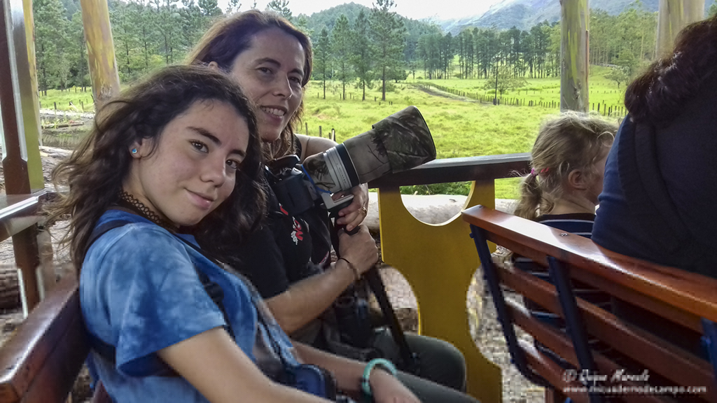Hoy todo el día en Arenal ha estado lloviendo nuevamente. Por la mañana me doy un paseo por los alrededores de nuestra habitación donde hay un buen pajareo. Logro ver pájaros interesantes como, Bienteveo cabecigrís (Myiozetetes granadensis), Tangara florida (Tangara florida), Tangara cabecibaya (Tangara gyrola), Picogrueso negriazul (Cyanocompsa cyanoides), etc. Más tarde, recojo a las chicas y nos vamos a desayunar. El objetivo después de desayunar es ir a buscar jacamarás, ya que, el día anterior me comento Gabriel que se posan en los cables de la electricidad cerca del portón de entrada al Arenal Observatory. No tardamos en ver 4 o 5 ejemplares del bonito Jacamará colirrufo (Galbula ruficauda) justo en el punto que me indicó Gabriel, los cuales, alguna foto puedo hacerles. Antes de recoger las maletas, otra vuelta por los alrededores de la habitación me proporciona muy buenas observaciones de Eufonia olivácea (Euphonia gouldi), Turpial cabecinegro (Icterus prosthemelas), Jilguero menor (Carduelis psaltria), Bienteveo del Chocó (Conopias albovittatus), Colibrí de Cuvier (Phaeochroa curvierii), etc. Ya con las maletas en el coche para cambiar de destino, vamos a entregar las llaves de la habitación y en la recepción del hotel me encuentro con mi amigo Nes, su novia y la hermana de ésta. El encuentro ha sido totalmente inesperado y la alegría es tremenda al encontrarme con un amigo pajarero de Madrid sin saber que se encontraba allí. Nos hacemos unas fotos y echamos un rato con ellos charlando antes de partir hacia Río Celeste, nuestro próximo destino. Aprovechamos nuestro paso por La Fortuna para comer en el restaurante La Parada. Al terminar de comer, recordaba el camino que había tomado con Gabriel la noche anterior donde vimos al Nictibio grande (Nyctibius grandis) y hacia allí nos dirigimos, aunque el nictibio no estaba en aquel tronco seco, pero en ese camino vimos otros pájaros interesantes, Jacana centroamericana (Jacana spinosa), Sargento alirrojo (Agelaius phoeniceus), Mosquero negro (Sayornis nigricans), Golondrina gorgirrufa (Stelgidopteryx ruficollis), Pibí tropical (Contopus cinereus), etc. Poco más nos depara el día en un largo viaje hasta llegar a Sueño Celeste, lugar al norte cerca de la frontera de Nicaragua, al pie del Volcán Tenorio. Solamente destacar en el camino, un Carancho norteño (Caracara cheriway) posado en un poste muy cerca de la carretera junto a un Aura gallipavo (Cathartes aura). Llegamos tarde a Sueño celeste, pero con el tiempo justo para acomodarnos y usar el jacuzzi. Pronto vamos a la cama después de una cena en la habitación a base de pollo frito que habíamos comprado en el camino. |