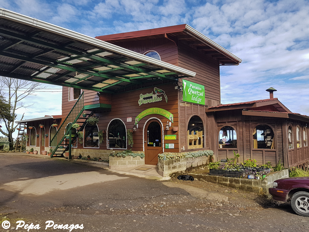 Parecía el día de la marmota cada vez que me levantaba por la mañana, era prácticamente lo mismo todos los días, salía de la cama, me aseaba, un cafetito, me cepillaba los dientes, cogía los aperos de fotografía y los prismáticos, y a buscar pájaros mientras las chicas se quedaban un ratito más en la cama. La salida mañanera no fue nada del otro mundo. Recorrí un sendero monte abajo, pero la falta de visibilidad por lo enmarañado del lugar me daban pocas opciones de ver aves, aunque si pude observar Cerquero patilargo (Pezopetes capitalis), Cerquero musliamarillo (Pselliophorus tibialis), Clorospingo cejiblanco (Pselliophorus tibialis), Reinita carinegra (Basileuterus melnogenys), Zorzalito piquinegro (Catharus gracilirostris), Candelita collareja (Myioborus torquatus) y un precioso Mosquero cabecinegro (Empidonax atriceps), otra ave endémica para Costa Rica y oeste de Panamá. Vuelvo a la cabina a buscar a las chicas y nos vamos a desayunar. Después del desayuno, nos dirigimos a los comederos de colibríes, que como siempre tienen muchísima actividad, pero sin ninguna sorpresa, allí están solamente las mismas 4 especies del día anterior, Colibrí magnífico (Eugenes fulgens), Colibrí verdemar (Colibri thalassinus), Chispita volcanera (Selasphorus flammula) y el colorido Colibrí insigne (Panterpe insignis). La mañana avanza y decidimos darnos un paseo por un sendero que baja al río antes de irnos a comer. Este sendero nos lo aconsejó uno de los chicos de Paraíso Quetzal, Jorge Serrano Salazar, guía y gran conocedor de toda la avifauna del lugar. Cuando le pregunté a Jorge por algún lugar donde podría ver Mirlo acuático norteamericano (Cinclus mexicanus), que como recordaréis, lo andaba buscando prácticamente desde que llegamos a Costa Rica, él me indico este camino hacia el río. El mirlo nos da nuevamente esquinazo y eran ya muchos intentos, aunque nos tuvimos que conformar con otros no menos interesantes, como un bonito Subepalo rojizo (Margarornis rubiginosus), un Trepatroncos coronipunteado (Lepidocolaptes affinis), o de nuevo la especie endémica que vi por la mañana, Mosquero cabecinegro (Empidonax atriceps). Una vez bajada la empinada cuesta hasta llegar al río, ahora tocaba subirla. Al final la subida se nos hace bastante larga y llegamos muy cansados, dispuestos a coger el coche, ir a la soda de carretera del día anterior y comernos un buen casado para reponer fuerzas. Así lo hicimos, disfrutamos de un buen casado con carne de ternera y a través de la ventana del restaurante veíamos como, al igual que cada tarde, empezaba a llover. Ya estábamos acostumbrados. Cuando llegamos al lodge, la lluvia se había intensificado de manera notable, y al aparcar el coche, nos tenemos que dar una buena carrera hacía nuestra habitación, pero eso no impide que lleguemos empapados. Toda la tarde estuvo diluviando, con lo cual, la dichosa lluvia no nos da permiso para salir. Allí llovía como si no hubiera un mañana, pero tenemos un ventanal que vale su peso en oro, y desde allí, sentado en una silla con una cerveza en la mesa, puedo disfrutar de la fauna que pasa de un lado a otro. Era como estar en un hide con cristal espía. Desde allí pude ver Pinchaflor plomizo (Diglossa plumbea), Yal pizarroso (Haplospiza rustica), Pico velloso (Picoides villosus), una preciosa pareja de Capulinero negrigualdo (Phainoptila melanoxantha), Mirlo negruzco (Turdus nigrescens), etc. Las dos últimas especies citadas son también endémicas para Costa Rica y oeste de Panamá. Cuando llega la hora de cenar seguía lloviendo, no paró hasta bien avanzada la noche, así que, nos pusimos los chubasqueros y fuimos al restaurante del lodge. Al terminar, vuelta a la habitación y pronto a dormir. |