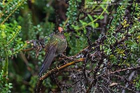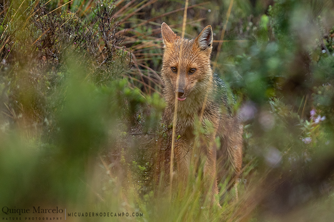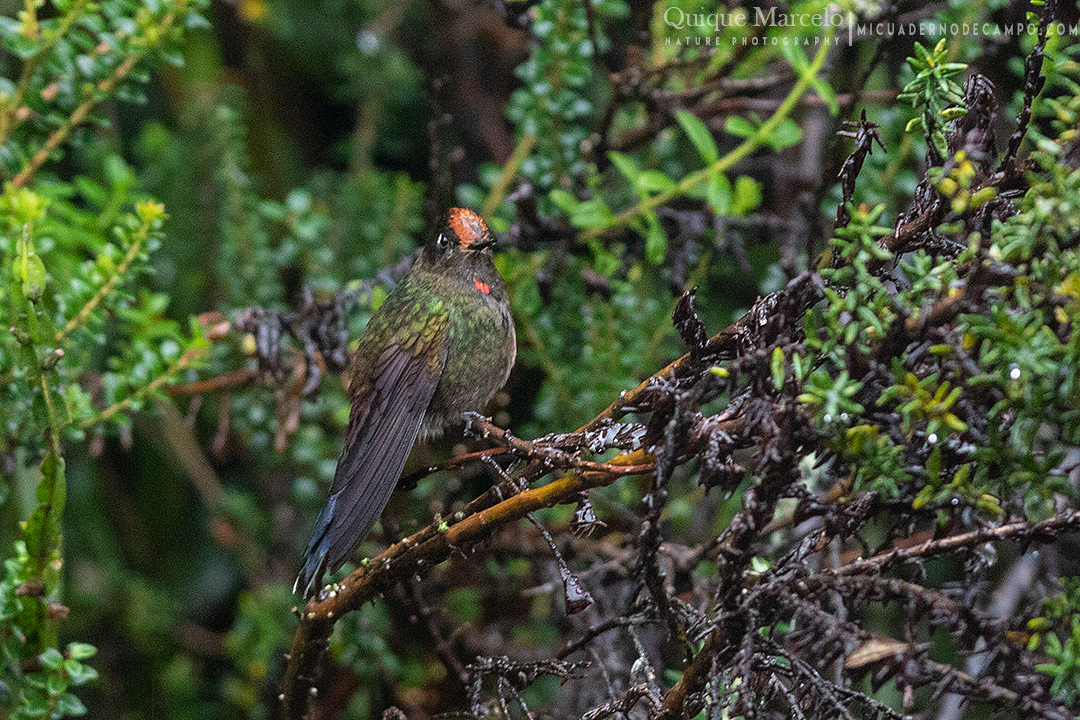 Al salir del hotel, me recibió una lluvia intensa, con una temperatura gélida de unos 5ºC y un viento implacable que me sacudía. A pesar del clima adverso, Alex y yo decidimos aventurarnos en el Parque Nacional Cayambe Coca en busca de aves únicas que difícilmente encontraría en otro lugar de Ecuador. Nada más adentrarnos en el parque, nos sorprendió la aparición de un Zorro andino (Lycalopex culpaeus), que me permitió capturar algunas fotografías antes de desaparecer entre la densa vegetación. A pesar de las inclemencias del tiempo, también avistamos algunas aves como Colibrí de Herrán (Chalcostigma herrani), Atlapetes nuquipálido (Atlapetes pallidinucha), Tangara ventriescarlata (Anisognathus igniventris) y Metalura verde (Metallura williami), entre otros. Pronto nos dimos cuenta de que continuar la búsqueda en esas condiciones sería infructuoso, así que decidimos regresar al hotel para desayunar y esperar a que el clima mejorara. Nuestro siguiente objetivo era explorar la zona conocida como "Las Antenas" en busca de la esquiva Agachona grande (Oreonympha nobilis). Después del desayuno, llamé a Alex y nos aventuramos nuevamente hacia Las Antenas. Sin embargo, lo que nos esperaba en lo alto de las montañas era aún peor que por la mañana: a 4400 metros sobre el nivel del mar, nos enfrentamos a un clima hostil con fuertes vientos, lluvia intensa y temperaturas cercanas al punto de congelación. La búsqueda de la Agachona en esas condiciones resultaba prácticamente imposible, así que decidimos regresar al hotel para buscar aves en entornos más amigables. Pasamos el tiempo hasta el almuerzo en la carretera vieja cerca del hotel, donde finalmente pude disfrutar un poco del día observando aves como Tangara lacrimosa (Anisognathus lacrymosus), Tangara pechifulva (Dubusia taeniata), Colibrí picoespada (Ensifera ensifera), etc. Después del almuerzo, acordamos encontrarnos nuevamente con Alex alrededor de las 16:00 horas en el mismo lugar. Una vez más, fuimos recompensados con la aparición de nuevas especies, como Pinchaflor enmascarado (Diglossa cyanea), Pinchaflor negro (Diglossa humeralis), Conirrostro cinéreo (Conirostrum cinereum) y Conirrostro dorsiazul (Conirostrum sitticolor), entre otros. De vuelta en el hotel, aproveché la oportunidad para relajarme con un baño en las termas, seguido de una cena reconfortante antes de retirarme a descansar, recordando las experiencias del día con gratitud y anticipando lo que el próximo día nos depararía en esta tierra de sorpresas infinitas. |