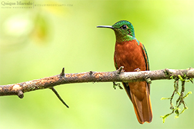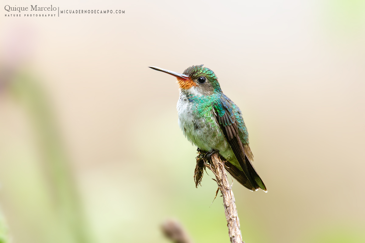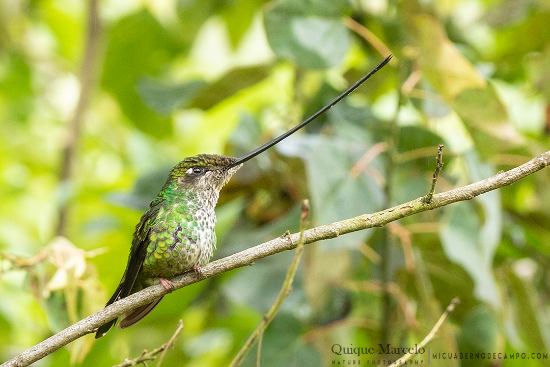 Antes de que nuestro despertador sonara, un despertador natural nos sacudió de nuestro sueño: un temblor de tierra de 4,6 grados en la escala de Richter, seguido de tres réplicas, nos recordó la fuerza de la naturaleza que nos rodeaba. Aunque duró solo unos segundos, el crujido de nuestra cabaña nos hizo ponernos en alerta de una manera rápida, realmente no sabíamos en ese momento que había pasado Este inesperado acontecimiento ocurrió alrededor de las 4:10 de la mañana, y aunque intenté volver a dormir, el shock del temblor me mantuvo despierto hasta las 5:30, momento en que finalmente sonó nuestro despertador. Nada más levantarnos, aún haciéndonos preguntas por lo sucedido, las chicas se fueron preparando para ir a un SPA que había en este maravilloso complejo de las Termas de Papallacta, mientras yo me preparaba para otra jornada de exploración con Alex. Afortunadamente, el cielo parecía más prometedor esa mañana, así que decidimos repetir nuestra visita al Parque Nacional Cayambe Coca en busca de especies de montaña. A pesar de que algunas se nos escaparon, tuve la suerte de avistar de nuevo el precioso Colibrí de Herrán (Chalcostigma herrani), además del Piojito gargantilla (Mecocerculus leucophrys), Cotinga crestirroja (Ampelion rubrocristatus) y Colibrí aliazul (Pterophanes cyanopterus) entre otros. Regresamos al hotel alrededor de las 9:00 para disfrutar de un reconfortante desayuno antes de partir nuevamente hacia Las Antenas. Después de más de una hora y media de búsqueda, la escurridiza Agachona volvió a evadirnos, aunque tuvimos la oportunidad de observar otras especies como la Remolinera común septentrional (Cinclodes albidiventris) y el Colibrí de Stanley (Chalcostigma stanleyi). Alrededor de las 12:30, regresamos al hotel para preparar nuestras maletas, ya que debíamos hacer el check-out a la 13:00 horas. Era momento de cambiar de zona y de alojamiento, así que nos dirigimos hacia el Río Quijos Ecolodge, aproximadamente a una hora y media de Papallacta. En el camino, hicimos una parada en Guango Lodge, un paraíso para observar aves donde tuvimos la suerte de ver el Pato torrentero (Merganetta armata) y varias especies de colibríes, como el Colibrí pechirrojo (Boissonneaua matthewsii) y el Colibrí de Mulsant (Chaetocercus mulsant), entre otros. Llegamos al Río Quijos alrededor de las 18:30, donde dejamos nuestro equipaje en la habitación antes de disfrutar de una cena reconfortante en el restaurante del lodge. Con la mente llena de emocionantes avistamientos y la promesa de nuevas aventuras por delante, nos retiramos a descansar, listos para lo que el mañana nos deparara en este maravilloso viaje por las tierras ecuatorianas. |