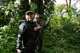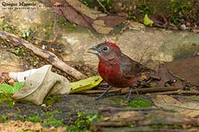 El sonido del despertador a las 5:30 de la mañana marcó el inicio de otro día emocionante en nuestro viaje. Aunque esta vez tuvimos que dormir en cabañas separadas, que estaban tan cerca una de otra que se podía oir claramente el despertador de la otra habitación. Nuestro destino para el día era el Sendero Jumandy, ubicado a unos 50 km de Río Quijos. Con el desayuno preparado para llevar, nos apresuramos a tomar un rápido café antes de emprender el camino. Al llegar al sendero, nos esperaban aves como Cacique montano (Cacicus chrysonotus), Chara turquesa (Cyanolyca turcosa) o Tangara montana (Buthraupis montana), entre otros. Comenzamos la caminata de unos 3 km en busca del Peruvian antpitta (Grallaricula peruviana), una especie que esperábamos avistar en este punto del camino. Sin embargo, el camino se tornó más difícil de lo esperado: las piedras resbaladizas y las zonas embarradas dificultaban nuestro avance. A lo largo del sendero, nos encontramos con sorpresas como Tucán piquinegro (Andigena nigrirostris), Mosquero hermoso (Nephelomyas pulcher) y Picamaderos poderoso (Campephilus pollens), entre otros. Después de más de 3 horas de caminata, llegamos al punto donde esperábamos avistar al Peruvian antpitta. A pesar de los esfuerzos de Alex por llamar al ave con su reclamo, pasaron 40 minutos sin éxito. Decidimos entonces regresar al coche y cambiar nuestros planes. El siguiente destino era la Reserva Wayra, en la alta amazonía, pero antes de llegar, Alex nos sorprendió con la oportunidad de buscar al Birro común (Hirundinea ferruginea), una especie que probablemente no tendríamos otra oportunidad de ver. Con entusiasmo, nos dirigimos hacia este nuevo punto. En medio del camino y sobre unos cortados de piedra, finalmente avistamos al hermoso Birro común, que nos permitió capturar numerosas fotografías antes de continuar nuestro viaje hacia la Reserva Wayra, con la satisfacción de haber vivido otro emocionante encuentro con la naturaleza ecuatoriana. Concluida nuestra búsqueda y fotografía del Birro común, finalmente nos dirigimos a la Reserva Wayra, un hermoso lugar que nos recibió con los brazos abiertos. La amable propietaria nos guió por la reserva, mostrándonos los encantos del lugar y colocando bananas y semillas en los comederos dispersos por todo el territorio. En la parte alta de la reserva, tuvimos la oportunidad de fotografiar varias especies de Tangara, como la preciosa Tangara urraca (Cissopis leverianus), Tangara palmera (Thraupis palmarum), Tangara picoplata (Ramphocelus carbo), así como diferentes tipos de colibríes que revoloteaban entre las flores, como Amazilia listada (Chionomesa fimbriata) , Zafiro colidorado (Chrysuronia oenone), Colibrí pardo (Colibri delphinae), etc. A medida que el día llegaba a su fin, le mencioné a Alex mi deseo de regresar a la Reserva Wayra al día siguiente, ya que percibía que el lugar ofrecía innumerables posibilidades de avistamiento y fotografía de aves. Regresamos a Río Quijos ecolodge después de disfrutar de otro vibrantee día en lugares muy interensantes, y después de una merecida ducha, nos fuimos a cenar y, finalmente, nos retiramos a descansar. |