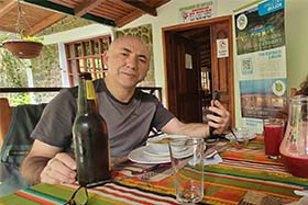 El día comienza temprano cuando salimos a las 6:20 de Río Quijos ecolodge con nuestro desayuno empacado, rumbo a la Reserva Wayra para otra jornada de emocionante observación de aves. A las 7:45, después de una hora y media de viaje, llegamos a la reserva, donde la cálida bienvenida de la dueña nos llena de entusiasmo para explorar las maravillas de este lugar. En un primer vistazo al área, quedamos maravillados al ver los pequeños monos Tamarindo de dorso negro (Saguinus nigricollis graellsi) disfrutando de su desayuno a base de plátanos y semillas que les había puesto la señora de la reserva, seguidos por una variedad de aves, incluyendo Tangara del paraíso (Tangara chilensis), Dacnis azul (Dacnis cayana), Tangara negra (Tachyphonus rufus), Tangara dorada (Tangara arthus), Eufonia ventrinaranja (Euphonia xanthogaster), Zorzal piquinegro (Turdus ignobilis), Soldadito crestirrojo (Coryphospingus cucullatus), Fiofío piquicorto (Elaenia parvirostris), y muchos más. Nuestra atención se desvía cuando la señora de la reserva nos informa sobre la presencia de una hembra de Amazilia gorjirroja (Hylocharis sapphirina) perchada en una rama en las cercanías, una emocionante sorpresa incluso para Alex, ya que es bimbo para él. De vuelta a los comederos, nos enteramos de la llegada de un grupo de Corcovado pechirrufo (Odontophorus speciosus), pero lamentablemente solo podemos verlos ocultos entre la vegetación, aunque alguna foto puedo conseguir. Decidimos regresar a Río Quijos alrededor de las 11:10, donde pasamos el resto de la mañana avistando especies como Mirlo acuático coroniblanco (Cinclus leucocephalus), Pato torrentero (Merganetta armata), Momoto serrano (Momotus aequatorialis), etc. Tras una deliciosa comida y una rápida llamada a la familia en el propio comedor de Río Quijos ecolodge, hacemos nuestras maletas y nos aventuramos en una última caminata por los alrededores. Durante esta última exploración, observamos una variedad de aves, incluyendo Chingolo cejigüaldo (Ammdramus aurifrons), Tirano melancólico (Tyrannus melancholicus), Golondrina barranquera (Pygochelidon cyanoleuca), Carpintero moteado (Colaptes punctigula), y Curutié cejigrís (Cranioleuca curtata). Para culminar el día, Alex escucha el canto de un Churrín colilargo (Scytalopus micropterus), y después de una búsqueda paciente, logramos avistarlo y fotografiarlo, una hazaña que pocas veces se logra con estas esquivas aves. Con el día bien avanzado, emprendemos nuestro viaje hacia Quito, pero en este fascinante país, no sabes en qué momento va a venir una sorpresa, y esta llegó en la carretera, cuando en mitad de la vía nos encontramos una Tarántula. No dudamos en parar, lo primero para retirarla de la carretera y que no sea atropellada, y luego para tomarla alguna foto. Terminado este encuentro con el arácnido, proseguimos el viaje llegando a nuestro destino, el Hotel Zaysant, bajo la oscuridad de la noche. y después de que nos den las llaves de la habitación, una buena cena en el restaurante, ducha y a dormir.