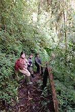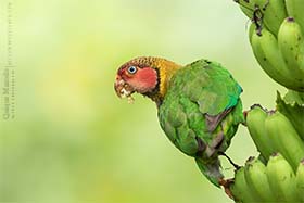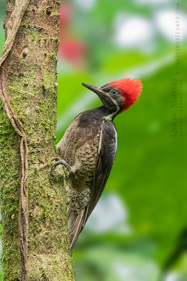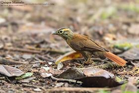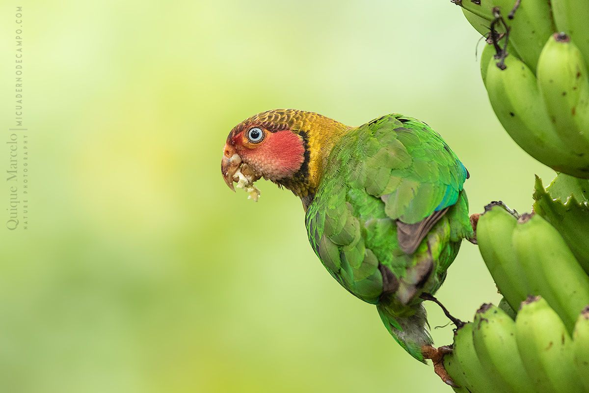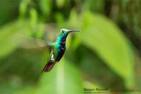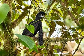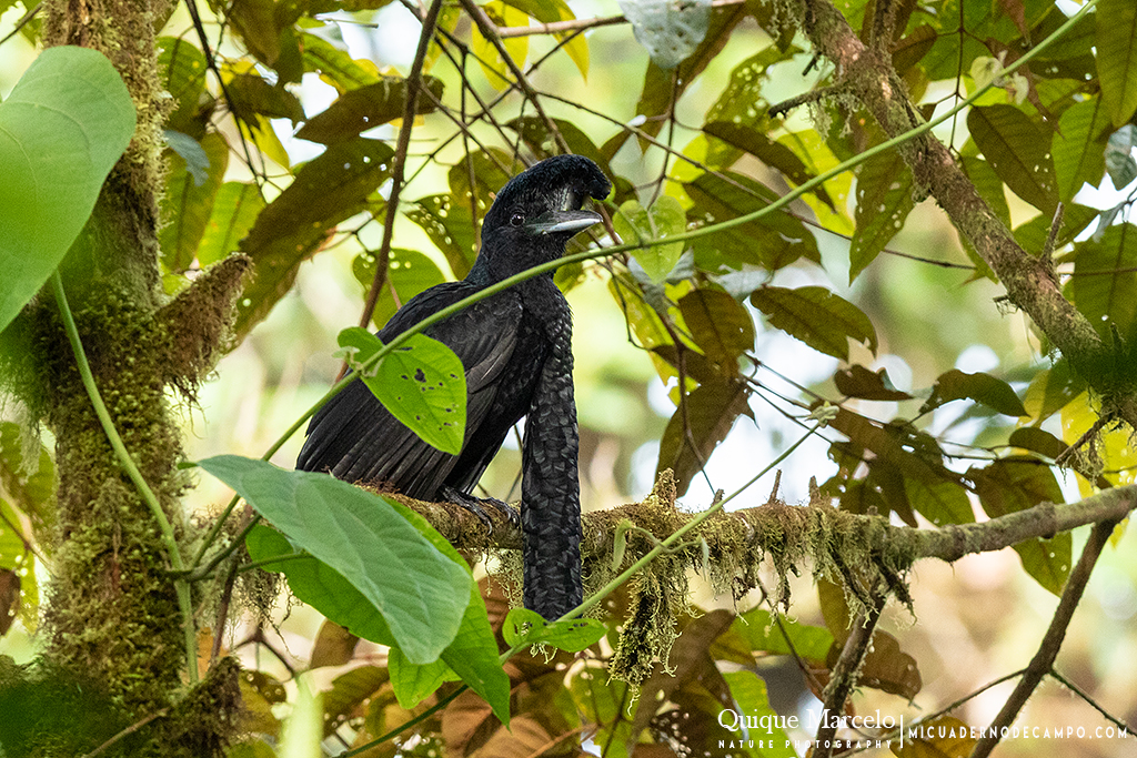 Juan Luna es quien nos recibe en la finca y nos guía hasta el área donde habita el Paragüero, una experiencia que nos lleva unos 15 minutos de caminata y un cruce de arroyo que realizamos con la ayuda de Juan que nos sube a su espalda para cruzar, ya que no llevábamos botas de agua. El Paragüero no tarda en hacer su aparición, aunque al principio lo avistamos en un árbol bastante distante. Sin embargo, poco a poco se acerca y se posa en uno de los árboles más cercanos, aunque lamentablemente, está en la sombra y a gran altura. A pesar de ello, consigo capturar algunas fotos. Pero lo que viene a continuación es aún más emocionante. Mientras observamos con los prismáticos en busca de más aves, escuchamos un sonido desde el bosque que despierta la curiosidad de Alex. Al principio piensa que se trata de una Pava cojolita (Penelope purpurascens), pero Juan nos informa que se trata de un Corcovado frentirrojo (Odontophorus erythrops), al que ha estado alimentando durante varios días. Nos dirigimos hacia allí sin dudarlo y en un claro del bosque, Juan esparce maíz y otras semillas para atraer al ave, que finalmente, y después de una considerable espera, se asoma tímidamente. Consigo capturar varias fotos de esta hermosa ave, lo que resulta especialmente emocionante ya que Alex, un experimentado guía y fotógrafo de aves en Ecuador, nunca antes había tenido la oportunidad de fotografiarla y afirma que esto es un "pajarazo" porque ha tenido muy pocos encuentros con él durante su dilatada vida como guía. De regreso a la misma zona donde vimos anteriormente al Paragüero, avistamos otras especies como Clorospingo oscuro (Chlorospingus semifuscus), Trepatroncos picocuña (Glyphorynchus spirurus), Vireo coronipardo (Vireo leucophrys) y Tucán pechigualdo (Ramphastos ambiguus), entre otros. Después de disfrutar de un buen desayuno en la casa de Juan Luna, emprendemos el regreso a Mindo, haciendo algunas paradas para avistar rapaces como Aura gallipavo (Cathartes aura), Halcón murcielaguero (Falco rufigularis) y Busardo caminero (Rupornis magnirostris). Llegamos a Mindo alrededor de las 13:00 y nos apresuramos a almorzar, ya que a las 14:00 tenemos una salida a caballo por los caminos de los alrededores, una actividad que disfrutó especialmente Iris. Por la tarde, nos relajamos en el lodge El Descanso, donde observamos y disfrutamos de los comederos de colibríes, en los que el dueño era un agresivo Amazilia tzacatl (Amazilia tzacatl). Este lugar también atrae, la Paloma montaraz pálida (Leptotila pallida), el Picamaderos listado (Dryocopus lineatus) y de Guayaquil (Campephilus gayaquilensis), la Tangara flamigera (Ramphocelus flammigerus), la Eufonia picogruesa (Euphonia laniirostris), el Pepitero gorjicanelo (Saltator maximus) y alinegro (Saltator atripennis), entre otros, acompañados por un simpático Agutí negro (Dasyprocta fuliginosa). Con el día llegando a su fin, nos retiramos a nuestra habitación para ducharnos y luego salir al pueblo a cenar. |