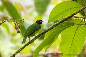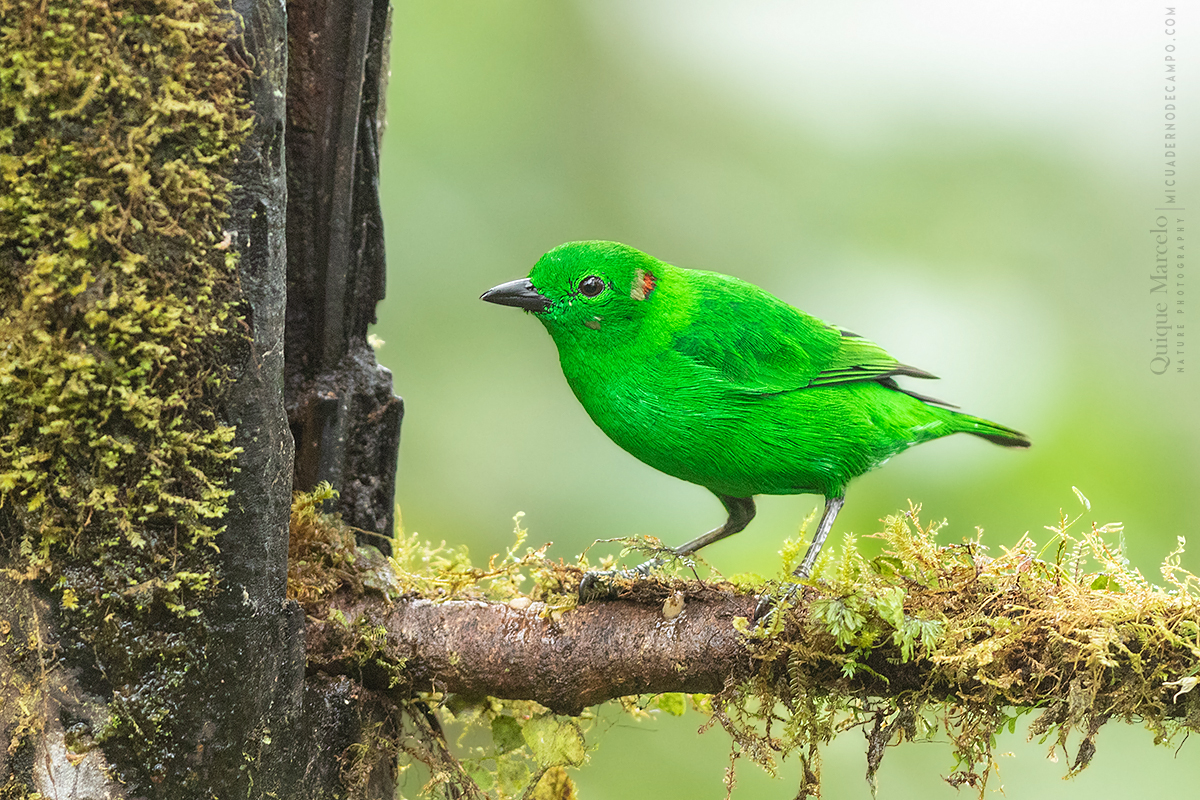 A las 5 de la mañana, me reuní con la persona que me guiaría durante el resto del viaje. Alex Luna me pidió hace unos días el favor de permitirle participar en una salida pelágica en la costa que le surgió de repente. En esta excursión iban a embarcar los mejores expertos en aves marinas del país, algo que no se quería perder. Le dijimos que adelante y nos dejó en manos de su cuñado y tocayo, también un excelente guía, Alex Toapanta. Hemos estado muy a gusto con el "nuevo Alex", ya que conoce bastante bien a las aves de Ecuador. Gracias a él, he podido avistar muchas especies que hasta ahora no había tenido la oportunidad de ver. El primer lugar que visitamos esta mañana del 25 de junio es la Reserva de Amagusa. Me encantó por la gran variedad de especies que pude observar y fotografiar, además de lo bien organizado que está con comederos de colibríes, tangaras, tucanes, y un área con tela blanca iluminada para atraer a los insectos. Comenzamos en una zona con poca luz, donde ya pudimos ver algunas especies interesantes, como Hormiguero de Zeledón (Hafferia zeledoni) y Clorospingo gorjiamarillo (Chlorospingus flavigularis). De repente, Alex me llamó alamartemente porque había descubierto un Pinchaflor índigo (Diglossa indigotica) en un pequeño árbol, indicándome que es una especie muy difícil de ver y que no perdiera la oportunidad de fotografiarla, y yo, como soy muy obediente, no dejé pasar la ocasión. Más tarde, otra sorpresa llegó en forma de Lorito carirrosado (Pyrilia pulchra), una especie fascinante que acudió a las bananas colocadas en un árbol dentro de la finca, especie que no volvimos a ver durante el resto del viaje. En los comederos de las tangaras, también tuvimos suerte. Allí pude observar espectaculares especies como Tangara dorada (Tangara arthus), Tangara de Edwards (Bangsia edwardsi), Tangara nuquirrufa (Chalcothraupis ruficervix), Tangara verde (Chlorochrysa phoenicotis), Tangara carafuego (Tangara parzudakii) y Tangara barbinegra (Anisognathus notabilis), entre otras. Además, vimos otras especies como Saltarín alitorcido (Machaeropterus deliciosus), Tucanete culirrojo (Aulacorhynchus haematopygus), Anambé barrado (Pachyramphus versicolor), Solitario andino (Myadestes ralloides), Anambé canelo (Pachyramphus cinnamomeus) y Vireón piquinegro (Cyclarhis nigrirostris), junto con varias especies de colibríes, entre los que se encontraban Brillante emperador (Heliodoxa imperatrix) o Rabudito verde (Discosura conversii), entre otros. De allí, decidimos ir a otra hermosa reserva abierta recientemente y muy recomendable, la Reserva Sachaguatusa, pero ants hicimos una interesante parada a medio camino donde logré fotografiar varias especies fascinantes, como Solitario negro (Entomodestes coracinus), Frutero pechinaranja (Pipreola jucunda), Quetzal cabecidorado (Pharomachrus auriceps) y Mielerito collarejo (Iridophanes pulcherrimus), por nombrar algunos. Una vez en Sachaguatusa, los dueños de la finca nos recibieron y nos llevaron a un área donde ponen frutas para las aves. Allí, disfrutamos de una buena sesión fotográfica con especies igualmente interesantes, como Cabezón cabecirrojo (Eubucco bourcierii), Tangara cabecibaya (Tangara gyrola), Semillero variable (Sporophila corvina), Tangara golirrufa (Ixothraupis rufigula) y Tangara goliplateada (Tangara icterocephala). Nos fuimos de la magnífica reserva Sachaguatusa e hicimos una parada en el camino para comer en un restaurante de carretera antes de ir a nuestro último destino del día: la Finca Victoriana, cerca de Santa Elena. Allí tienen un lek de Gallito de roca (Rupicola peruvianus) que Alex me había recomendado encarecidamente visitar por la excelente luz para las fotos. Al caer la tarde, llegaron muchos individuos a ese lek, y pude tomar una gran cantidad de fotos. La visita al lek del Gallito de roca fue un magnífico final de día. Aunque ya los habíamos visto en la primera parte del viaje en Refugio Paz de las aves, volver a ver a estos impresionantes pájaros en plena actividad fue de nuevo una experiencia inolvidable. Sin tiempo para mucho más, nos dirigimos de regreso a nuestro alojamiento en Mindo, llegando justo a tiempo para una ducha refrescante y una cena reconfortante. El día había sido largo y lleno de momentos memorables, y mientras cenábamos, no pudimos evitar recordar y comentar las espectaculares especies que habíamos visto. Fue el cierre perfecto para una jornada intensa y emocionante en los rincones naturales de Ecuador. |