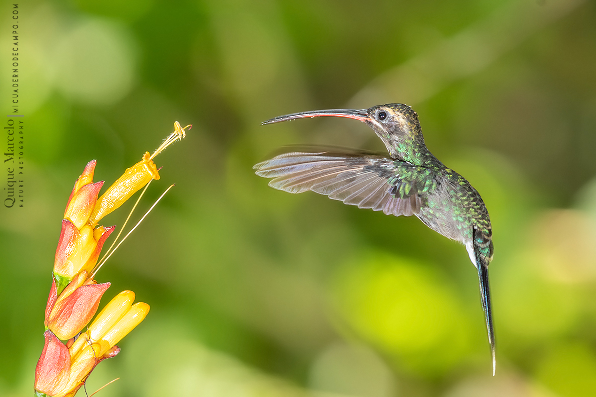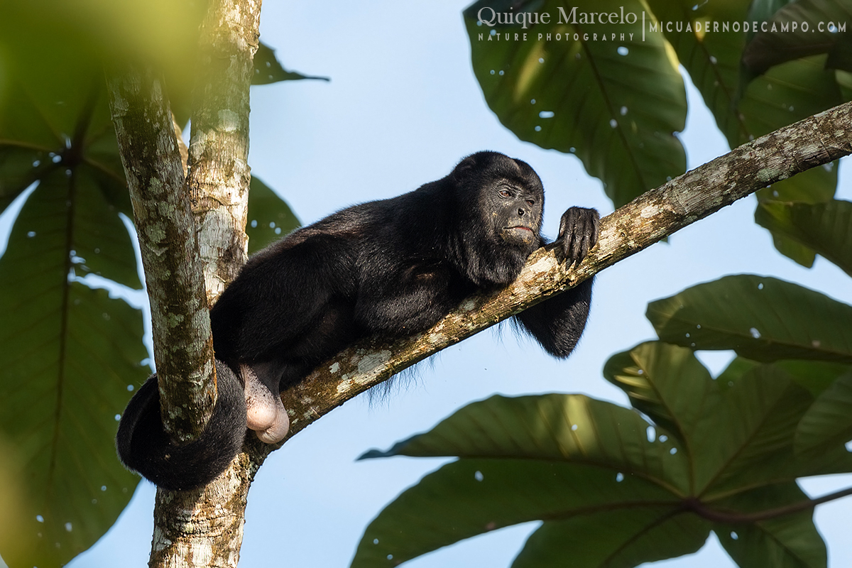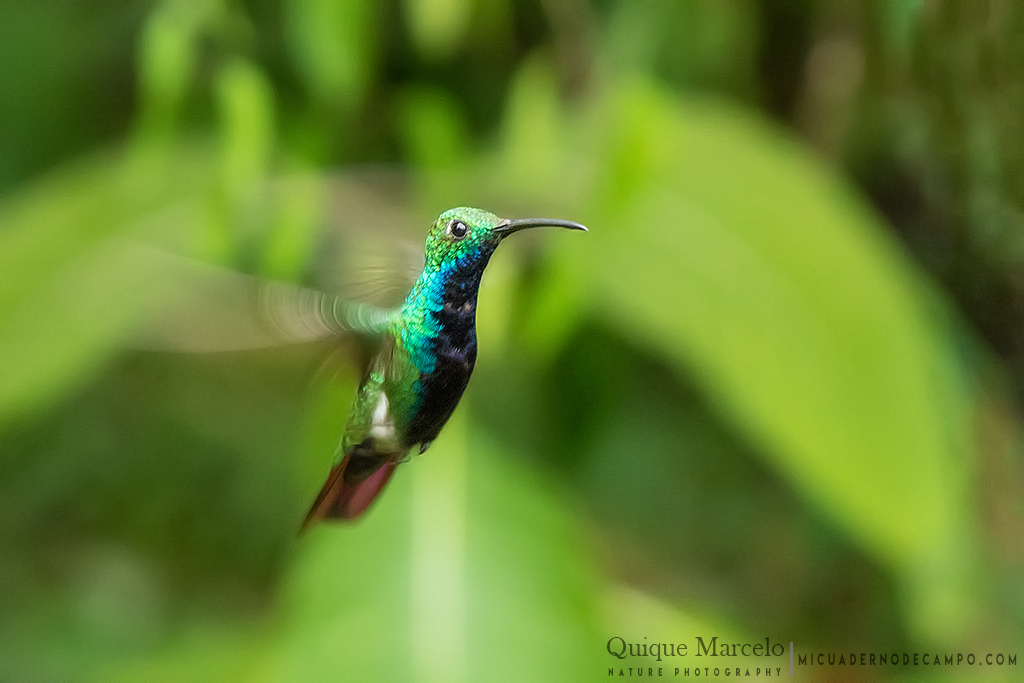 Nuevamente, Alex llegó temprano a buscarme a nuestro lodge. A las 5 de la mañana me subí a su coche, listo para iniciar una nueva jornada de exploración. El Santuario de Aves Río Silanche por la mañana y la finca Fruti Tour por la tarde serían los destinos que exploraríamos en este penúltimo día en suelo ecuatoriano. El trayecto desde Mindo a Río Silanche tomó más de una hora. Al llegar a la reserva, aparcamos en la entrada y, todavía con muy poca luz, nos dirigimos por un sendero hacia una torre de observación. Esta estructura, accesible mediante una larga escalera, nos elevaba varios metros por encima del nivel del bosque, ofreciendo una vista privilegiada sobre la zona forestal. Las aves ya estaban muy activas a esa hora y pronto empezamos a ver y escuchar una gran variedad de pájaros. Entre las primeras sorpresas del día, observamos tres especies de dacnis que no había visto hasta el momento: Dacnis azul (Dacnis cayana), Dacnis muslirrojo (Dacnis venusta) y Dacnis pechirrojo (Dacnis berlepschi). También pudimos recrearnos con otras especies como Tangara cejirroja (Heterospingus xanthopygius), Picolezna menudo (Xenops minutus), Tangara cabecidorada (Stilpnia larvata) y Cabezón escamoso (Capito squamatus), por nombrar algunos. A medida que la mañana avanzaba, el calor se hacía cada vez más intenso, aunque la actividad de las aves no disminuía y seguía sumando especies a mi lista. Entre estas, pudimos identificar cuatro especies diferentes de vencejos: Vencejo acollarado (Streptoprocne zonaris), Vencejo tijereta chico (Panyptila cayennensis), Vencejo cuellirrojo (Streptoprocne rutila) y Vencejo ceniciento (Chaetura cinereiventris). También fue muy interesante el avistamiento de un Mono aullador (Alouatta palliata) que, haciendo honor a su nombre, aullaba con mucha intensidad a poca distancia de la torre donde nos encontrábamos. Antes de bajar de la torre, ya que el calor se había vuelto insoportable, logramos observar unas cuantas especies más, como una hembra de Saltarín cabecirrojo norteño (Ceratopipra mentalis), Mosquerito del Chocó (Zimmerius albigularis), Titira enmascarado (Tityra semifasciata), Cotinga quérula (Querula purpurata), etc. Nos retiramos hacia la entrada de la reserva, donde teníamos aparcado el coche, ya que allí hay más sombra y podremos disfrutar de mejor manera buscando aves. La verdad es que no se da nada mal, ya que podemos ver a muy poca distancia un Trogón coliblanco (Trogon chionurus), además de otras especies no menos interesantes, como Ermitaño de yaruqui (Phaethornis yaruqui), Brillante coroniverde (Heliodoxa jacula), Zafiro coronado (Thalurania colombica), Pepitero pizarroso (Saltator grossus), y el Mosquerito cabecigrís (Phyllomyias griseiceps), entre otros. A media mañana nos vamos de esta bonita reserva que por el poco tiempo que tenemos no puedo quedarme a explorar más. Alex me asegura que da mucho más de sí. Antes de llegar a nuestro próximo destino, el Sendero Frutti tour, paramos a comer en un restaurante donde nos ponen un abundante plato combinado muy rico, riquísimo. Una vez en el Sendero Frutti tour, nos recibe la persona que lo gestiona, Marcelo Jumbo, quien nos acompaña desde nuestra llegada hasta que nos vamos después de más de tres horas disfrutando de sus senderos y sus animales. Primeramente nos dirigimos hacia una zona donde tienen plantado cacao y allí puedo ver un buen número de interesantes especies, como Semillero piquigrueso (Sporophila funerea), Cotorrita de Piura (Forpus coelestis), Carpinterito oliváceo (Picumnus olivaceus), Cacique lomiamarillo (Cacicus cela), Carpintero escarlata (Dryobates callonotus), Tangara cabeciazul (Stilpnia cyanicollis), y Bienteveo alicastaño (Myiozetetes cayanensis), entre otros. Luego nos dirigimos hacia la construcción donde reciben a los turistas, porque allí están los comederos de colibríes y están entrando dos especies que hasta el momento no he podido ver: Mango gorjinegro (Anthracothorax nigricollis) y Colibrí piquilargo (Heliomaster longirostris). Aunque se hacen de rogar, por fin los puedo ver y tomar alguna fotografía. Otras especies que puedo fotografiar desde la balconada de esa instalación son Carpintero oliváceo (Colaptes rubiginosus), Momoto yerubá occidental (Baryphthengus martii), Cerquero piquinaranja (Arremon aurantiirostris), Semillero volatinero (Volatinia jacarina) y Carpintero centroamericano (Melanerpes pucherani), por nombrar algunos. Casi con la noche al caer, nos retiramos del lugar y emprendemos viaje a Mindo, ya que tenemos un trayecto de casi una hora, por tanto, no da para mucho más este día. |
