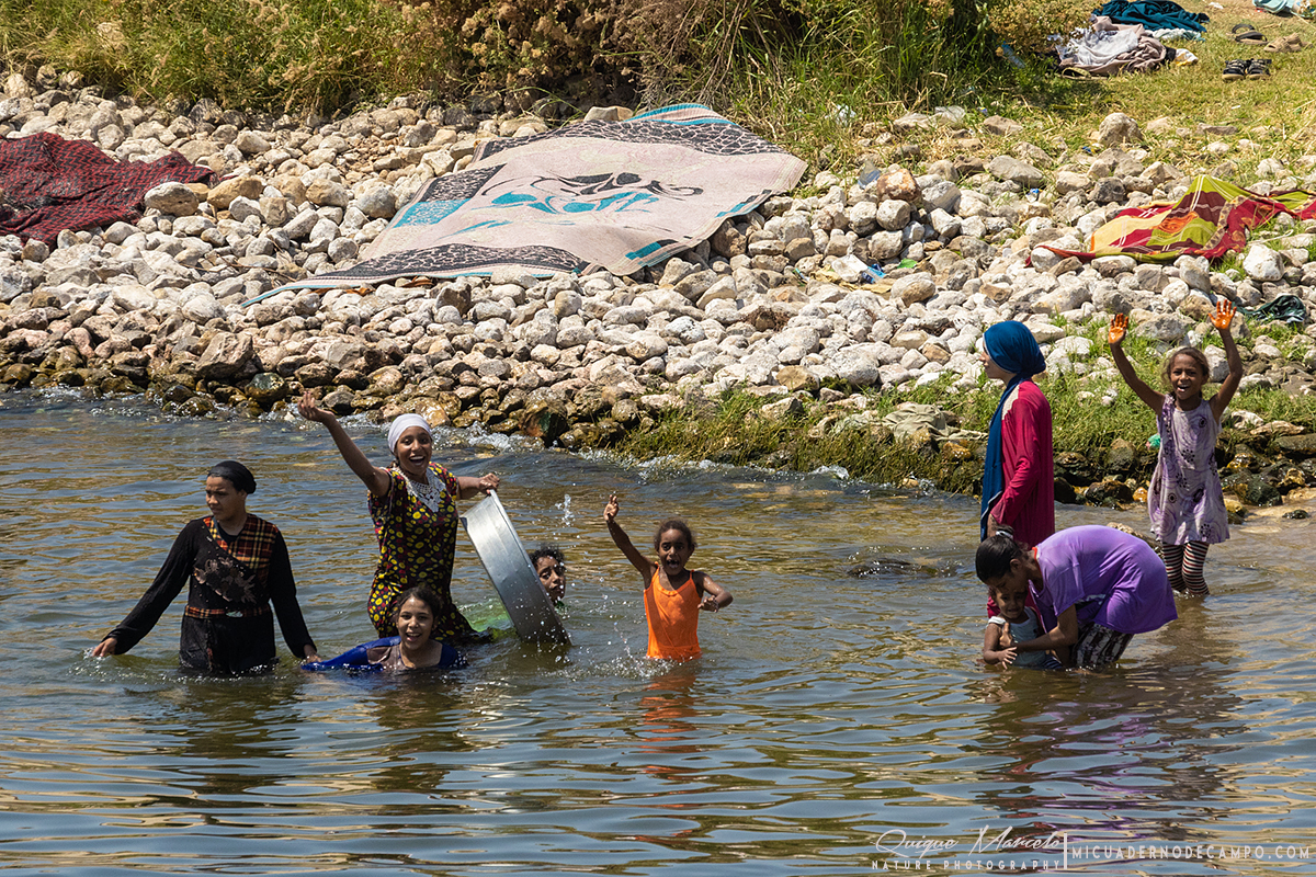 Fue en Aswan donde comenzó de verdad el lado ornitológico. En Abu Simbel, frente a los templos de Ramsés II y Nefertari, las aves se mostraban casi tan omnipresentes como el turista. Primeramente localicé a un Abejaruco esmeralda africano (Merops viridissimus), seguido del Avión isabel norteño (Ptyonoprogne obsoleta) que resultaba especialmente abundante, revoloteando sobre la fachada colosal. En la orilla del lago Nasser aparecieron especies como Paloma bravía (Columba livia), Tórtola senegalesa (Spilopelia senegalensis aegyptiaca), Garcilla bueyera occidental (Ardea ibis), Morito común (Plegadis falcinellus) y Cormorán grande (Phalacrocorax carbo). En el cielo, un Cernícalo vulgar (Falco tinnunculus) y la silueta de varios Milanos negros (Milvus migrans aegyptius) recordaban que Egipto también cuenta con esta subespecie de milano de pico amarillo. Entre las sorpresas más curiosas, la presencia de un grupo de murciélagos, que no pude identificar, en el interior mismo del templo de Ramses II. Estos estaban colgados del techo junto a esos magníficos grabados que lucen estas colosales construcciones. El Nilo, sin embargo, fue el verdadero protagonista. Navegar por sus aguas ofrecía constantemente escenas de vida. Durante el recorrido, las ardeidas se hicieron omnipresentes: Garza real (Ardea cinerea), Garza imperial (Ardea purpurea), Garcilla cangrejera (Ardeola ralloides), Martinete común(Nycticorax nycticorax) y Garcilla bueyera occidental (Ardea ibis) se dejaban ver con facilidad. También llegué a identificar a una Garcilla azulada (Butorides striata) volando hacia el norte sobre la superficie del Nilo y a un buen número de Fumareles aliblancos (Chilidonias leucopterus) en migración siguiendo dirección sur el río. En un momento especialmente emocionante, un Águila pescadora (Pandion haliaetus) sobrevoló el barco siguiendo el curso del río. A sus pies, la abundantísima Gallineta común (Gallinula chloropus) se movía entre la vegetación. |