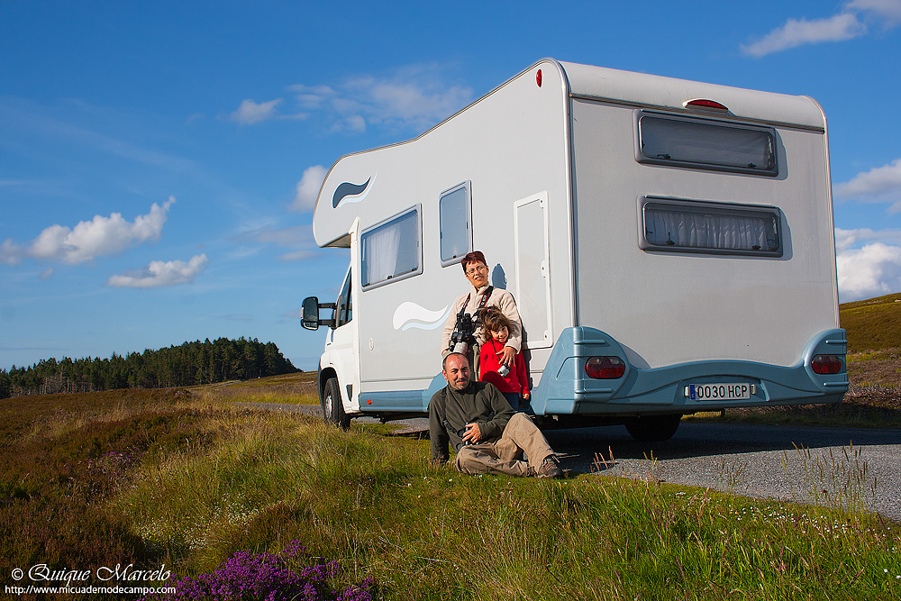 Desde hace mucho tiempo, Pepa (mi mujer) y yo, teníamos en mente realizar un viaje en autocaravana, ya que pensábamos que este medio de locomoción que lleva la casita a cuestas como los caracoles, nos iba a dar una autonomía que sin lugar a dudas no iba a proporcionarnos ningún otro tipo de viaje, y más, cuando todos nuestros viajes son enfocados a lo mismo, la fotografía de especies animales y sus entornos. Para elegir el destino, no nos quebramos mucho la cabeza, enseguida pensamos en Escocia, un país en el que ya habíamos estado con una pareja de amigos hará unos 12 años, ahora bien, aunque con nosotros viajaron como siempre los prismáticos, no fue un viaje estrictamente ornitológico, ya que tampoco la fecha en la que estuvimos (Septiembre) es la mejor, pero igualmente nos lo pasamos muy bien en aquella ocasión, quedándose en nuestras retinas esos paisajes ingleses y escoceses que resultan difícil de olvidar, de hecho hay por casa alguna foto en papel y la verdad, siempre hemos dicho "algún día tenemos que volver". También la elección del destino vino dada porque el Reino Unido es un país en el que se puede llegar por carretera con relativa facilidad, aunque es verdad que son muchos kilómetros, pero yendo en autocaravana puedes parar "donde quieras" y "cuando quieras" (siempre que esté autorizado), y poder reanudar el viaje al día siguiente. |