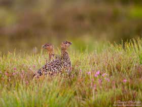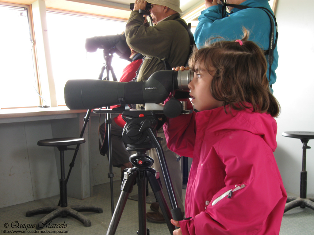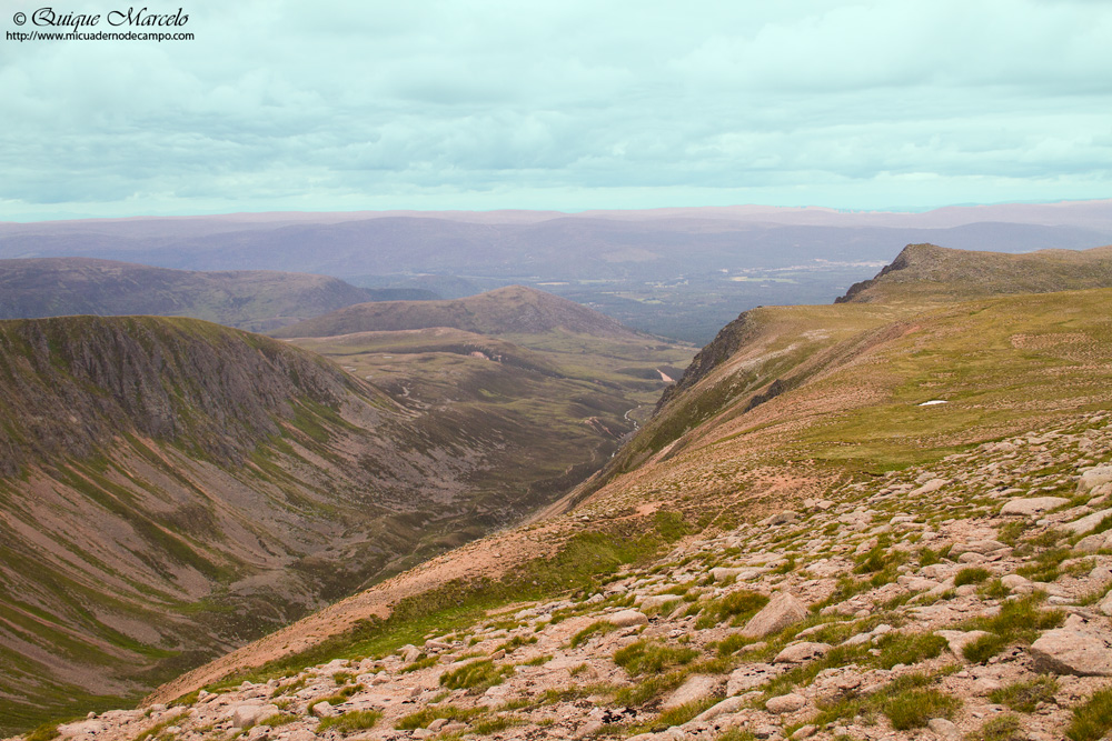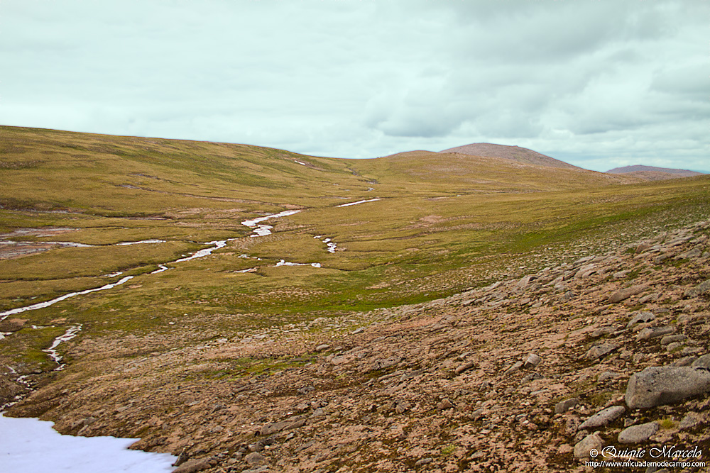 Nuevamente me levanto temprano y después de tomar un café, salgo para dar un paseo por los alrededores de Loch Morlich, en el cual, volando sobre su superficie hay bastantes ejemplares de Avión zapador (Riparia riparia) . El lugar es de fotografía, un gran loch rodeado de un denso bosque de pinos, hogar del escaso Urogallo (Tetrao urogallus) y del Gallo lira (Lyrurus tetrix) , y con la tranquilidad que te dan las primeras horas de la mañana, siempre se tiene la esperanza que aparezca uno de esos grandes gallos en cualquier momento, pero no fue así. Durante el paseo de casi dos horas pude ver Ánade azulón (Anas platyrhynchos), Mosquitero común (Phylloscopus collybita), Pinzón vulgar (Fringilla coelebs), Carbonero garrapinos (Parus ater britannicus), un Pico picapinos (Dendrocopos major) que no dejaba de picotear un árbol seco a muy pocos metros de mí, etc. De vuelta del paseo y ya en la autocaravana, las chicas ya se habían levantado y casi habían terminado de desayunar, por lo tanto, sin tardar mucho nos fuimos a Loch Ruthven, el mejor lugar de todo Escocia para ver Zampullín cuellirrojo (Podiceps auritus) . Allí vemos nuestro primer Colimbo chico (Gavia stellata) del viaje y un solitario Zampullín cuellirrojo (Pociceps auritus), aunque ambos lejísimos, más o menos, en la mitad del ancho lago. También vemos entre otros, Bisbita pratense (Anthus pratensis), Gaviota argéntea europea (Larus argentatus), Lavandera blanca (Motacilla alba yarrelii), etc. Decidimos ir a comer de nuevo a Lochindorb, aquel gran lago que el día anterior nos había dado la oportunidad de localizar aquella pareja de Lagópodo escocés (Lagopus lagopus scotica) con pollos. Tardamos como una media hora en llegar y aparcamos en uno de los apartaderos que tiene la carretera del lago, y mientras se preparaba la comida, saqué el telescopio y logré ver de nuevo, aunque muy lejos, a un solitario Lagópodo que rápidamente se perdió entre los brezos, mas tarde, una vez que comimos, nos dimos un paseo por esos páramos de brezo. Después de haber andado los tres durante un rato, de los pies salta reclamando primero un macho, y acto seguido la hembra que se posa a pocos metros como si estuviera herida, ya me imaginaba lo que pasaba, al mirar al suelo me encuentro lo esperado, 4 pollos bastante pequeños estaban a nuestros pies, que cuando los vio Iris se quedó alucinada y exclamó: ¡¡Hala papi, qué monos!! Decidimos abandonar rápidamente el lugar y proseguimos nuestro paseo por el lago y sus alrededores en la autocaravana. Más tarde volvemos a ver otra pareja de Lagópodo con 3 pollos grandes, pero éstos desaparecen entre el brezo de una manera sorprendente, de repente están y al segundo ya no estaban, asombroso. También vemos en el centro del lago una pareja de Colimbo chico (Gavia stellata) , unos cuantos individuos de Ánsar común (Anser anser) y en las orillas bastantes ejemplares de Andarríos chico (Actitis hypoleucos), Bisbita pratense (Anthus pratensis), Lavandera blanca (Motacilla alba yarrelii) y una solitaria Perdiz roja (Alectoris rufa). La idea para este día era dormir en el aparcamiento de la estación de esquí de los Cairngorm, para al día siguiente levantarme pronto y ascender al pico Ben Macdui, para intentar ver dos especies de alta montaña, Chorlito carambolo (Charadrius morinellus) y Lagópodo alpino (Lagopus muta), pero la carretera permanece cortada ya que hay una carrera de coches y termina bastante tarde, con lo cual, decidimos ir a dormir al mismo sitio que la noche anterior, a Loch Morlich, que está a 6 kilómetros. |