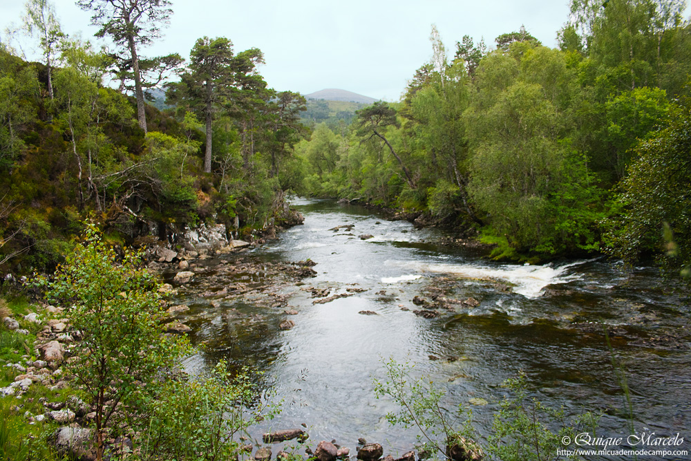 Al día siguiente, sobre las 9:00 horas subimos a la estación de esquí de Cairngorm, inicié el ascenso y realmente al principio era bastante suave, pero luego, poco a poco se iba empinando cada vez más, llegando a tener una subida con bastante desnivel casi al final de la ascensión. Durante el camino veo Bisbita pratense (Anthus pratensis) y Collalba gris (Oenanthe oenanthe) . Después de unas dos horas andando, llego a una planicie, en la cual, por fin veo la cumbre del pico Ben Macdui (1309 m.s.n.m.) ante mis ojos. En esta planicie Juanma Domínguez y Jose Mari Salazar, dos amigos que subieron el año pasado, me comentaron que puede ser un buen lugar para intentar localizar a algún Chorlito carambolo (Charadrius morinellus) , y la verdad es que no tardo en ver un ejemplar adulto con un pollo. El chorlito no se aleja mucho de su pollo y me da la oportunidad de hacerle infinidad de fotos, por lo tanto, gasto mucho más tiempo del previsto, pero no me importa, porque uno de los objetivos era fotografiar a este limícola que cría en la alta montaña, aunque luego me quedé casi sin tiempo para intentar localizar algún Lagópodo alpino (Lagopus muta) , ya que las chicas se han quedado abajo en la estación y tampoco quiero tardar mucho en bajar, aún así, lo intento pateando una zona con piedras que hay justo al pié de la cumbre del pico, pero no tengo suerte y decido ir bajando. Después de 5 horas desde que salí, llego a la autocaravana, me doy una duchita rápida y nos vamos, no sin antes, ver un Corzo (Capreolus capreolus) en la ladera opuesta a donde estamos. Lo que queda del día lo disfrutamos en plan turista por el lago Ness, ya que Iris no paraba de decirnos que quería ir a ver al monstruo. Entramos en varias tiendas, nos fotografiamos junto a una estatua que hay allí de Nessie, que Iris no dejaba de vigilar, no fuera a ser que aquel ser de metal empezara a moverse de repente, y así, hasta que con el día bastante avanzado decidimos seguir camino hacia nuestro siguiente destino, Glen Affric. Glen Affric es un precioso valle boscoso, en el cual se encuentran dos lochs, Loch Beinn a'Mheadholn y el que le da el nombre al Glen, Loch Affric. Por el camino que va por la orilla de este último Loch nos dimos un paseo, viendo en el rio una Lavandera cascadeña (Motacilla cinerea), además de algún que otro pájaro, Pinzón vulgar (Fringilla coelebs), Carbonero garrapinos (Periparus ater britannicus) y Carbonero común (Parus major), etc., hasta que decidimos ir al aparcamiento de la cascada de Dog Falls, a unos 5 Kilómetros de donde nos encontrábamos. Cuando llegamos al lugar, vimos perfectamente una Marta (Martes martes) que muy tranquilamente se fue alejando y finalmente se perdió en el bosque. Jamás había visto una Marta tan bien, fue un momento espectacular. |