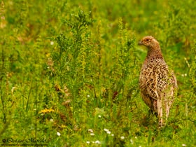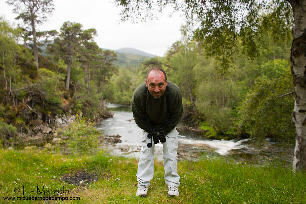Dormimos en la misma reserva llamada Loch of the Lowes, un lago bastante grande, en el cual, su principal atracción es un nido de Águila pescadora (Pandion haliaetus) que se puede ver perfectamente con telescopio desde el observatorio que tienen a pie del loch, aunque está un poquito lejos para la fotografía, como es lógico. Me levanté como casi todas las mañanas bastante temprano, cogí mi equipo de fotografía y me metí en uno de los tres observatorios que tienen al lado de su centro de interpretación. El nido del Águila pescadora lo descubrí por casualidad, ya que sabía que estaba, pero aquello era muy grande para buscarlo, y tampoco había nadie en el observatorio para preguntarle, pero después de chequear con el telescopio todos los grandes árboles que estaban cerca del agua, lo localicé a mi izquierda. Dentro de él había un adulto, que me dejo muy poco tiempo para contemplarlo, ya que a los pocos minutos saltó del nido y rápidamente desapareció. También había algún pollo que sería todavía pequeño, porque asomaba plumón, pero era difícil ver realmente lo que alojaba dentro aquel gran nido. Sobre las aguas del loch, aprecié que no había mucho movimiento de aves, aunque si que pude ver algún ejemplar de Cisne vulgar (Cygnus cygnus), Ánade azulón (Anas platyrhynchos) y Somormujo lavanco (Podiceps cristatus). También estuve un buen rato entretenido con los comederos que tienen allí por todas partes, que por cierto, estaban repletos de Verderón común (Carduelis chloris), Lúgano (Carduelis spinus), Pinzón vulgar (Fringilla coelebs), Herrerillo común (Parus caeruleus), Carbonero común (Parus major) y Carbonero garrapinos de la Sp. británica (Parus ater britannicus), además por el suelo merodeaba una azulona con sus patitos, comiendo las sobras que tiraban desde arriba los paseriformes. De vuelta al aparcamiento, en el campo de golf que estaba al lado, vi en el mismo plano que tenía delante de mí, un Corzo (Capreolus capreolus) , dos Gamos (Dama dama) y un grupo de Ciervos (Cervus elaphus), aunque todos estaban a bastante distancia. Luego, desayunamos y partimos hacia nuestro siguiente destino que era Insh Marshes, una zona inundada al pié de la cadena montañosa de los Cairngorm y que aunque tiene muy buenos observatorios, no se puede apreciar mucho pájaro, ya que los carrizos están altísimos, aún así, logro ver un Zarapito real (Numenius arquata), varios ejemplares de Garza real (Ardea cinerea), Ánade azulón (Anas platyrhynchos), Gaviota reidora (Chroicocephalus ridibundus) y 2 ejemplares de Ciervo (Cervus elaphus) tumbados muy lejos. Como Insh Marshes está un poco apagado, decidimos seguir nuestro camino hacia Loch Garten, un idílico lago rodeado de Pino silvestre (Pinus sylvestris), donde las vistas son espectaculares, por lo tanto, es el momento de parar y hacer unas cuantas fotos de paisaje, pero igualmente el lago está un poco pobre de aves, tan solo, un grupo de Ánade azulón (Anas platyrhynchos) a media distancia, una hembra de Silbón europeo (Anas penelope) con tres pollos descansando en la orilla y lo mejor fué ver 3 individuos jóvenes de Porrón osculado (Bucephala clangula) , eso sí, algo lejos. Allí se encuentra el Loch Garten Osprey Centre, gestionado por la RSPB (Royal Society for Protection of Birds) en el cual pagando 3 libras (creo recordar), puedes pasear por sus caminos llenos de Ardillas y comederos donde acuden multitud de pájaros, y finalizar en un gran hide lleno de monitores donde se puede ver el nido de un Águila pescadora (Pandion haliaetus) que tiene instalado una webcam, aunque con un telescopio desde las ventanas del mismo observatorio también se ve el nido, ya que está relativamente cerca, por lo tanto, allí estuve un buen rato observando ese nido con los 2 adultos y 2 pollos. Al salir del Centro del Águila pescadora, dimos un paseo por los alrededores del lago, con la intención de encontrar algún ejemplar de Piquituerto escocés (Loxia scotica) , pero no tuvimos éxito. Más tarde nos dirigimos a Lochindorb, otro grandísimo lago más al norte, encuadrado entre unos páramos de brezo, el cual, es el hábitat idóneo para intentar ver Lagópodo escocés (Lagopus lagopus scotica) . Era algo tarde y también estaba el día un poco gris, pero en una de las intermitentes paradas que hago con el coche, pegado a una de las orillas del lago, tengo la fortuna de ver muy cerca de la carretera una pareja de Lagópodo con tres pollos ya grandecitos que se quedan totalmente quietos confiando en que su mimético plumaje no los delate, pero el fotógrafo ya los había descubierto y me dan la posibilidad de hacerles unas cuantas fotos. Este fue uno de los momentos del viaje en los que subió la adrenalina de una manera alarmante, ya que todos los días no se ve tan cerca al críptico Lagópodo escocés. Ya con el día casi acabado, nos dirigimos hacia Loch Morlich, lugar donde quería empezar a pajarear al día siguiente, ubicado en el corazón del Parque Nacional de los Cairngorm, allí, en un aparcamiento al pié del lago, nos duchamos, cenamos y después de charlar un poco sobre todo lo ocurrido durante la jornada, fuimos a dormir. |