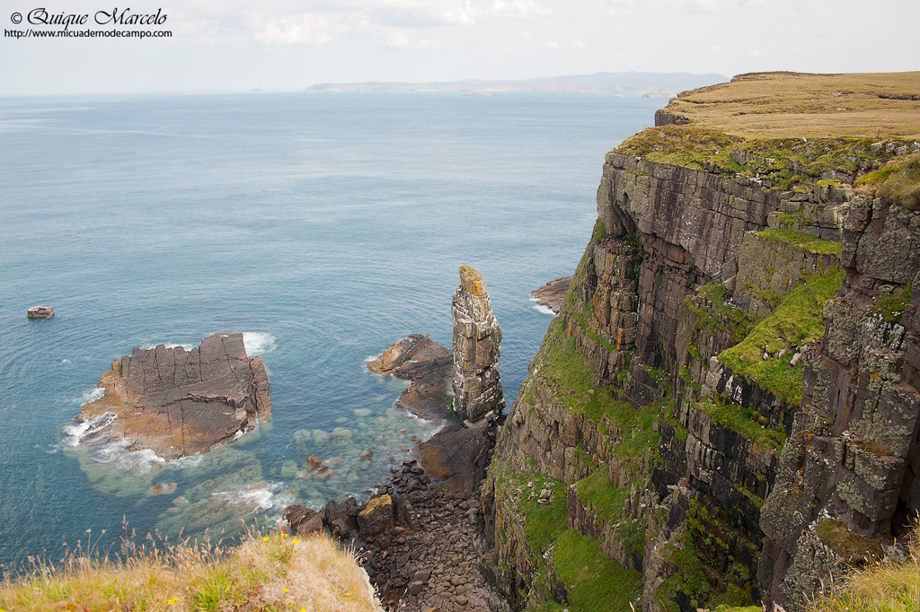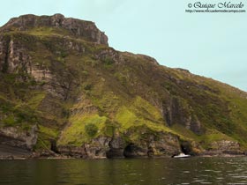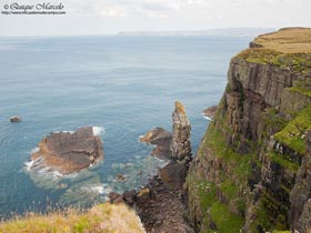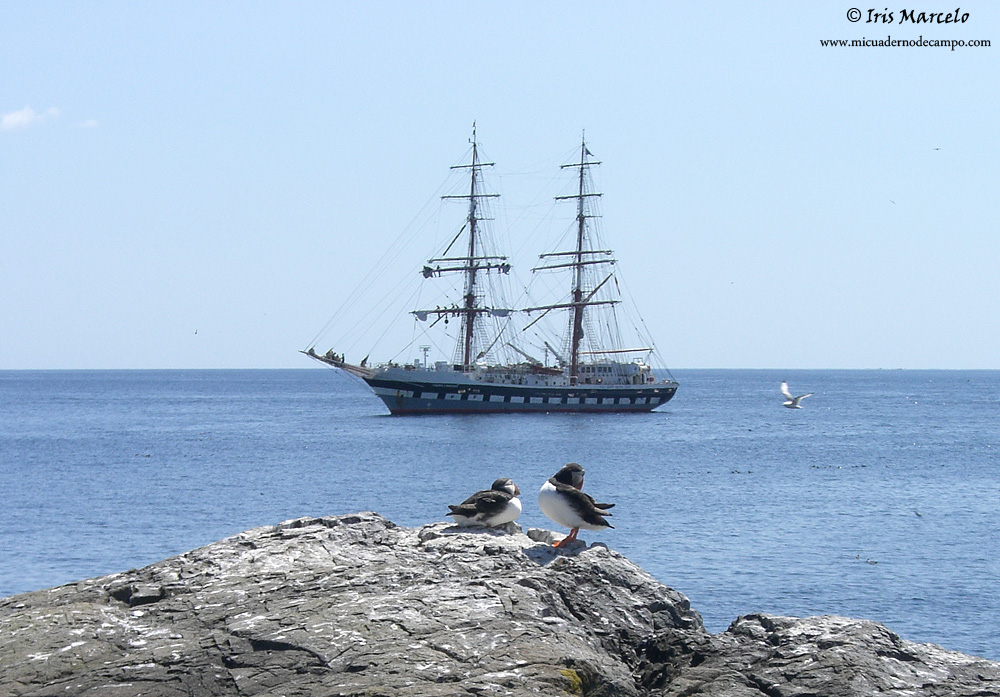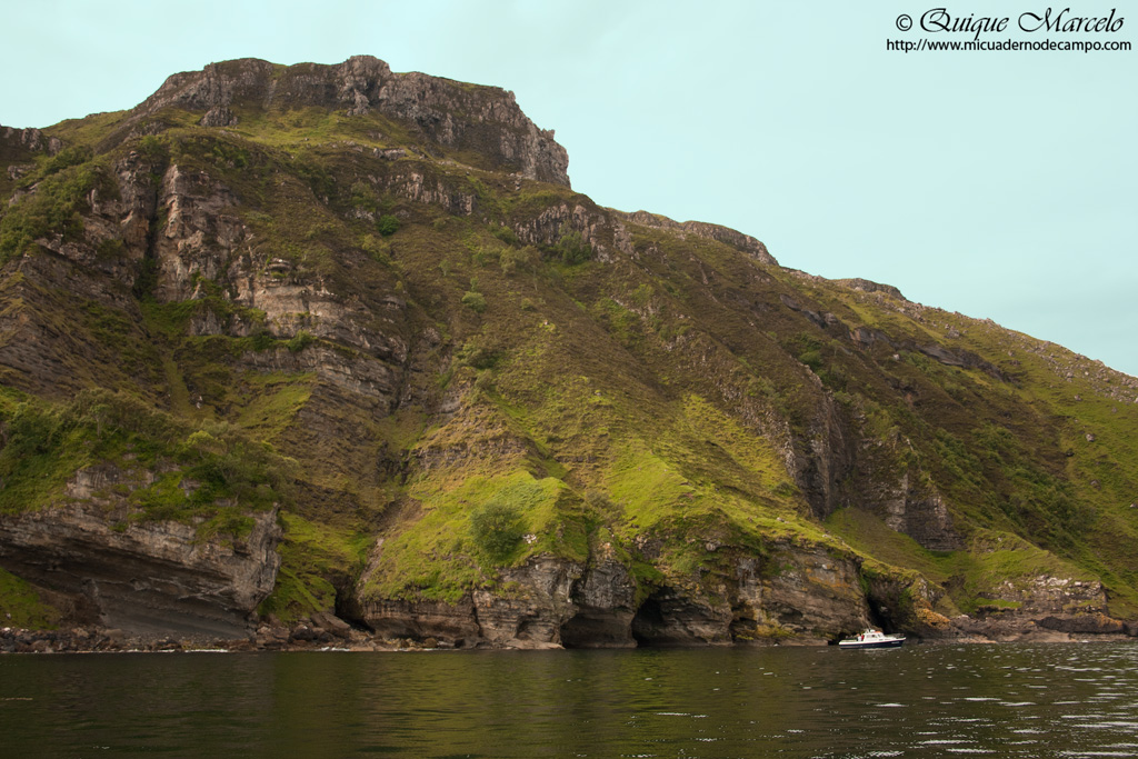 El día amaneció bastante mejor que como nos habíamos acostado y nada más abrir la ventana vi una Curruca zarcera (Sylvia communis) buscando alguna presa en un arbusto. Desayunamos y nos dirigimos hacia Dunvegan, donde se encuentra un espectacular castillo, perteneciente al clan Mcleod, seguramente el clan más poderoso de la isla de Skye, para más tarde ir a Neist point, un faro situado en el punto más al Oeste donde la vista se te pierde en el mar rodeado de acantilados, sin duda un lugar de ensueño. En Dunvegan vimos una colonia de Foca gris (Halichoerus grypus) y alguna Foca común ó moteada (Phoca vitulina) bastante cerca y nos entretuvimos un buen rato tomando varias docenas de fotos, tanto a individuos que descansaban plácidamente en la orilla, como a otros que nadaban buscando alimento. Más tarde en un lago ubicado al lado del faro de Neist point vimos Andarríos chico (Actitis hypoleucos) en la orilla, por los alrededores bastantes ejemplares de Estornino pinto (Sturnus vulgaris) perseguían a las ovejas y sobre el agua del lago, Gaviota argéntea europea (Larus argentatus) y un macho en plumaje de eclipse de Porrón osculado (Bucephala clangula). Siguiendo el camino llegamos hasta el aparcamiento del faro, que trás una corta, pero empinada escalinata hacia abajo se alcanzan unos cortados en los que pudimos observar, Fulmar (Fulmarus glacialis) , Gaviota argéntea europea (Larus argentatus), Arao común (Uria aalge), Arao aliblanco (Cepphus grylle), Alca común (Alca torda), Gavión atlántico (Larus marinus) y volando algún individuo de Alcatraz atlántico (Morus bassanus). También en las inmediaciones vemos Pardillo piquigüaldo (Carduelis flavirostris), Bisbita pratense (Anthus pratensis) y Collalba gris (Oenanthe oenanthe), entre otros. Ya tarde, volvimos dejando atrás el faro, subimos la gran cuesta para llegar al aparcamiento, donde nos esperaba nuestra casita. En el mismo aparcamiento nos duchamos, cenamos y seguidamente emprendimos camino hacia Portree, a unos 50 kilómetros, ya que la idea era dormir allí para al día siguiente coger temprano el primer barco que llevaba a ver Pigargo. |