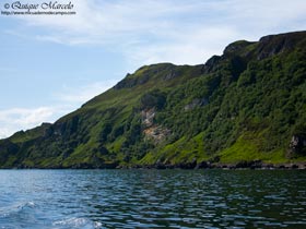 Habíamos elegido este día, porque mirando la previsión del tiempo vimos que iba a hacer bueno, por lo tanto dormimos en Portree y según lo previsto amaneció un espectacular día sin una nube y una luz sin igual. Portree tiene un bonito puerto pesquero con casas a lo largo del muelle de diferentes colores en el cual, te ofertan viajes para ir a ver Pigargo europeo (Haliaeetus albicilla). Nosotros elegimos una empresa llamada MV Stardust. A las 10:00 horas contratamos nuestra salida en el bote para hacer un recorrido circular por la bahía y mostrarnos un nido de Pigargo que tenía dos pollos. Salimos del puerto tres barcos de diferentes empresas para ir a ver a la gran rapaz, aunque antes hicimos una breve parada para observar un Colimbo chico (Gavia stellata) que no paraba de zambullirse bastante cerca, también vimos Cormorán grande (Phalacrocorax carbo) , Gaviota argéntea europea (Larus argentatus) , Gavión atlántico (Larus marinus), y un simpático grupo de Delfín común (Delphinus delphis) que desde lejos se acercaron al barco y nadaron durante un buen rato a nuestro lado haciéndonos pasar un bonito momento. Al llegar al risco donde se encontraba el Pigargo, no tardamos en descubrirlos, aunque estaban muy lejos, estaba uno de los adultos sobre una enorme roca y el otro adulto junto al nido. La técnica que empleaban los operarios de los botes era llamarles lanzándoles pescado cerca del barco, pero por más que los llamaron, éstos no quisieron bajar a por la comida y sólamente nos conformamos con verlos de lejos. Nuestro bote fue el primero que salió de regreso hacia el puerto y pudimos observar cuando estábamos ya bastante alejados, como uno de los Pigargos se lanzó desde su posadero, dio una pasada a muy pocos metros de unos de los otros barcos que allí se quedaron y volvió de nuevo a la roca. Pude hacerle unas cuantas tomas pero realmente estaba muy lejos. Ya en el puerto comimos de nuevo "fish and chips" y nos dirigimos al Suroeste de la isla, concretamente a un pueblo llamado Elgol, porque sabíamos que había un barco que te llevaba a la isla de Canna, y allí te desembarcaba por el espacio de una hora y era una buena oportunidad para ver en la travesía ballenas, además en la misma isla había una inmensa colonia de aves marinas, entre ellos Frailecillo atlántico (Fratercula arctica) , pero desestimamos la opción porque los botes salían al día siguiente y no queríamos esperar, con lo cual , y ya por la tarde, decidimos salir de Skye y dirigirnos hacia el sur, concretamente a la península de Ardnamurchan. En el camino paramos cerca de un puente donde el mar entraba y estaba con la marea baja, no recuerdo exactamente donde fue, el caso es que vimos bastantes limícolas, Archibebe claro (Tringa nebularia), Archibebe común (Tringa totanus) , Zarapito real (Numenius arquata) , Ostrero euroasiático (Haematopus ostralegus), etc., además de Ánade azulón (Anas platyrhynchos), Gaviota argéntea europea (Larus argentatus), Gaviota cana (Larus canus), Corneja cenicienta (Corvus cornix) y Lavandera blanca Sp. yarrelii (Motacilla alba yarrelii), entre otros. También muy cerca del pueblo donde dormimos, llamado Salen, ya en la misma península de Ardnamurchan, vimos a placer durante unos segundos, una preciosa Marta (Martes martes) en la carretera que se apartó de un par de saltos del asfalto, una pasada. |