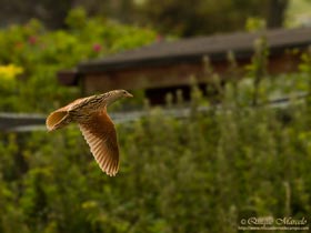 Nos despertamos temprano para intentar coger el primer ferry que te lleva a Iona, una isla que está a escasos 1500 metros y que podíamos ver perfectamente desde nuestra posición en Mull. Realmente la isla me encantó, con bastantes pájaros entre los que se puede destacar, Estornino pinto (Sturnus vulgaris), Chochín (Troglodytes troglodytes), bastantes individuos de Carricerín común (Acrocephalus schoenobaenus), Pardillo común (Carduelis cannabina), Ostrero euroasiático (Haematopus ostrelagus), y un largo etc., pero lo que me llamó la atención fue que nada más bajarnos del ferry y andar los primeros 150 metros, oímos no muy lejos el primer Corncrake (como lo llaman los ingleses), el Guión de codornices (Crex crex), que era el motivo principal de cruzar a Iona. Después de varios minutos que estuvimos mirando en el lugar donde estaba cantando y de reclamar el pájaro varias veces no hubo manera de verlo, estaba en una tierra con hierbas altas de unos 30 cm, pero éste no asomaba y no hubo manera de localizarlo. Desistimos y seguimos andando pero no volvimos a oír ninguno más, por lo tanto, sobre las 13:00 horas entramos en un restaurante que tiene la isla y comimos a base de buffet, para luego más tarde volver a dar un paseo nuevamente. En el mismo pueblo, vuelvo a oír de nuevo el reclamo de un Guión, y siguiendo su reclamo, logro acercarme a menos de 10 metros de él. Yo estaba en un prado de césped escrupulosamente cortado a ras que pertenecía a un hotel, y él estaba detrás de la valla en un herbazal con las hierbas bastante altas, e insisto, no nos separaban ni 10 metros. Durante más de una hora el pájaro canta con su característico "crex, crex", en intervalos de 30 a 40 segundos, pero por más que miro delante de mis narices, no logro verle, y me digo, "Será posible, no es un pájaro tan pequeño y está ahí, a menos de 10 metros, y no le logro ver, ni se mueve la hierba nada de nada, y siempre sale el sonido del mismo lugar", no me podía creer que en el tiempo que llevaba allí no asomara ni un poquito la cabeza para hacerle una foto y poder verle, porque si hubiera levantado un instante su cabeza seguramente le hubiera visto. Con las esperanzas ya perdidas, ya que el ferry de vuelta salía en 40 minutos, algo salta de repente del herbazal, vuela a escasos metros de mí, y se posa a cuerpo descubierto en el prado del hotel donde yo me encontraba y me deja hacerle unas cuantas fotos, puff, vaya pasada, lo había conseguido. Una vez que desapareció el pájaro, volvimos raúdos al puerto para coger el ferry que nos devolvería a Mull y sin pausa nos dirigimos a Craignure, ya que la idea era pernoctar allí, para al día siguiente tomar el ferry que te lleva a Oban, ya en la tierra principal. Antes de llegar a Craignure, pasamos por la bahía de Lochdon y me dio la oportunidad de disfrutar con los limícolas y demás aves que allí había, Zarapito real (Numenius arquata), una pareja de Cisne vulgar (Cygnus olor), Ostrero euroasiático (Haematopus ostrelagus), Avión zapador (Riparia riparia), etc. Más tarde, buscando un lugar donde dormir, nos metimos por el camino que lleva al Castillo Duart, en el mismo Craignure, donde multitud de pajarillos nos cruzaban, entre ellos, pudimos disfrutar con un bando de Pardillo sizerín (Carduelis flammea) que estaban alimentándose. Estando viendo a los pardillos, un pájaro grande nos cruzo lejos, "eh, es una rapaz gigante con la cola blanca", rápido canté "PIGARGO", éste era perseguido por un Gavión atlántico (Larus Marinus), un par de Corneja cenicienta (Corvus cornix) y un Busardo ratonero (Buteo buteo), todos ellos le estaban dando una caña increíble. La gran rapaz se posó en el suelo, mientras los otros solo hacían darle pasadas, hasta que levantó el vuelo y desapareció en la lejanía, fue un bonito broche para cerrar el día. |