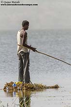 Quizás, hoy hayamos dormido en el mejor hotel de los que hemos pernoctado en Etiopía, El Oriental african group, un hotel lleno de nidos de Marabú africano (Leptoptilos crumeniferus), algunos con pollos, también había Calaos cariplateados (Bycanistes brevis) por todos lados, entre otros muchos pájaros. Además el lago Hawassa aparece ante tus ojos nada más salir de los jardines del hotel, motivo por el cual, puedes estar pajareando desde que abres la puerta de tu cabaña. Todo esto sumado a que Paco esa mañana estaba ya mucho mejor, todo decía que iba a ser un último día en Etiopía de esos memorables. Viendo el espectáculo que nos ofrecía el lugar, desayunamos nada más abrir el restaurante del hotel, y fuimos derechos al lago, donde nada más llegar vemos una preciosa pareja de Gansito africano (Nettapus auritus), que más tarde, se convertirían en muy abundantes. El lugar era impresionante en cuanto a aves. Yo me preguntaba, ¿Cómo puede haber tanto pájaro con la basura que hay tirada?, porque era así, multitud de pájaros, pero había basura y plástico a toneladas industriales en la orilla. Estaba lleno de Cormorán grande (Phalacrocorax carbo), Cormorán africano (Phalacrocorax africanus), Garcilla cangrejera (Ardeola ralloides), Jacana africana (Actophilornis africanus), Suirirí cariblanco (Dendrocygna viduata), Pato dorsiblanco (Thalassornis leuconotus), Martín pescador malaquita (Alcedo cristata), Fumarel aliblanco (Chlidonias leucopterus), etc. Otro de los buenos momentos fue cuando vimos pasar volando una hembra de Aguatero bengalí (Rostratula benghalensis), especie bastante rara en Etiopía. En el campo aledaño también pudimos ver Tórtola ojirroja (Streptopelia semitorquata), Tórtola engañosa (Streptopelia dicipiens), Batis carunculado gorgipardo (Platysteira cyanea), Inseparable abisinio (Agapornis taranta), Alción senegalés (Halcyon senegalensis), Estornino de Rüppell (Lamprotornis purpuroptera), etc. La pena es que no tenemos mucho más tiempo para seguir profundizando en el lugar y nos tenemos que ir rápidamente a visitar otro punto del lago, donde se encuentra el Parque Nacional de Amora Gedel, allí está el mercado de pescado. En la puerta del parque nos reciben un nutrido grupo de Monos verdes (Cercopithecus aethiops) buscando alimento entre unos árboles. El lugar nos dio muy buenos avistamientos de especies muy interesantes, como Chorlitejo tricollar (Charadrius tricollaris), especie que hasta el momento no habíamos logrado ver, Archibebe fino (Tringa stagnatilis), Garceta azabache (Egretta ardesiaca) adoptando su peculiar técnica de pesca, poniendo sus alas en forma de paraguas, Martín pescador pío (Ceryle rudis), Focha moruna (Fulica cristata), etc. Algo más tarde el grupo se dividió, Guille, Paco y Ángel se fueron con Fishea al mercado de pescado y yo me fui con Elias a prospectar el parque de Amora Gedel, donde pudimos ver Pigargo vocinglero (Haliaeetus vocifer), el endémico Barbudo etíope (Lybius undatus), Viuda colicinta (Vidua macroura), una pareja de Tejedor chico (Ploceus luteolus) construyendo su nido, etc. Muy a pesar nuestro, nos tenemos que ir, ya que nos quedan casi 300 kilómetros hasta llegar a Addis Abeba y tenemos que salir antes de las 12:00 de allí si queremos llegar con las tiendas abiertas para comprar café y alguna que otra cosa para llevar a casa. El viaje a Addis Abeba no da mucho más de sí. En el camino pudimos ver Cuervo picogordo (Corvus crassirostris), Aguilucho papialbo (Circus macrourus), Águila crestilarga (Lophaetus occipitalis), Busardo augur oriental (Buteo augur), etc. Pasadas las 18:00 horas llegamos a Addis, donde después de hacer las compras comentadas anteriormente, Elias nos lleva al mismo hotel donde nos alojamos la primera noche para tomar una ducha y reorganizar nuestra maleta para el viaje de vuelta a Madrid. Sobre el viaje de vuelta, mejor no hablar, larguísimo, llegamos a Madrid a las 17:00 horas del día siguiente. Para terminar, solo un consejo, si te gusta la naturaleza, los animales y vivir una experiencia inolvidable, Etiopía es el país. |