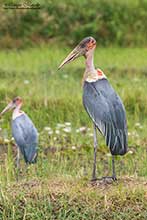 En pie a las 6:30 horas nuevamente y después de desayunar a organizar la maleta, hoy dejaríamos el lodge Annex para dirigirnos otra vez al campamento Tendaba, donde íbamos a pasar una noche antes de llegar de nuevo a la costa. La primera parada estaba destinada en el pueblo de Fula Bantang, donde se encontraba una colonia de Marabú africano (Leptoptilos crumeniferus). Solamente pudimos ver 3 ejemplares en lo alto de grandes árboles donde tenían sus nidos, aunque estaban a mucha distancia, eso sí, como siempre rodeado de niños mientras los observábamos pidiéndonos lapiceros o caramelos. Les dejé a los niños mirarlos desde mi telescopio y la verdad que flipaban. Quizá, aunque la colonia de Marabús la tenían en su pueblo, nunca los habían visto con tanto detalle como se veían a través del telescopio. A los pocos kilómetros, una vez reanudado nuestro viaje, Junkung le dijo a Cherino, "Stop Cherino". En un pequeño carrizal que había pegado a la carretera había descubierto un Cucal negro (Centropus grillii), especie nada fácil de encontrar en Gambia. Es algo más pequeño que el omnipresente Cucal senegalés (Centropus senegalensis) y realmente bonito. Otro excelente momento nos esperaba en Brikama Ba, donde Junkung nos dirigió a un grupo de árboles gigantes en medio de una plantación de cacahuete, donde descansaban dos Búhos lechosos (Bubo lacteus) que se podían ver perfectamente. Era impresionante la mirada de éstos, con esos párpados rosáceos. Nuevamente los niños de allí tuvieron su ración de caramelos. De ahí, proseguimos hasta llegar a los arrozales de Jakhali, otro lugar para haber echado allí, horas y horas. Las Jacanas africanas (Actophilornis africanus) se contaban por decenas, al igual que Garzas intermedias, grandes, bueyeras, cangrejeras, reales, cabecinegras, etc. En este lugar tuvimos nuestro primer encuentro con el Pinzón codorniz africano (Ortygospiza atricollis), un pequeño pajarito que se deja acercar bastante, imagino que confiado por su mimético plumaje, una chulada. Aguilucho lagunero occidental (Circus aeruginosus), Martín pescador pio (Ceryle rudis) y un Pigargo vocinglero (Haliaeetus vocifer), entre otros, eran los moradores de aquel lugar con tanta vida. Cuando nos íbamos, en uno de los últimos arrozales, tuvimos otro momento que me será difícil olvidar, fue cuando nos encontramos a tan solo una veintena de metros más de 20 Marabús africanos (Leptoptilos crumeniferus). El animal puede impresionar cuando lo ves desde lejos volando, o cuando lo ves encima de un árbol a cierta distancia, como ya nos había ocurrido, pero cuando los encuentras de repente a menos de 20 metros y puedes apreciar lo grandes que son, todos los detalles de su "desfigurada" cara, esa mirada, yo diría asesina, es un momento impresionante. Éstos estaban acompañados de un montón de garzas, incluidas Garceta intermedia (Egretta intermedia) y Avemartillo (Scopus umbretta). Nuestro siguiente destino era ir a buscar a otro de los difíciles del viaje, el Gansito africano (Nettapus auritus), a unas lagunas que había cerca de una población llamada Dalaba. Antes de llegar hicimos una parada porque vimos una impresionante Águila crestilarga (Lophaetus occipitalis) y un lejanísimo Busardo cuellirrojo (Buteo augularis), especie difícil de encontrar en Gambia. Las lagunas de Dalaba eran otro lugar repleto de vida por los cuatro costados, donde se podían ver muchas Garcillas bueyeras (Bubulcus ibis), también Anhinga africana (Anhinga rufa), Cormorán africano (Phalacrocorax africanus), Martín pescador malaquita (Alcedo cristata), un Águila pescadora (Pandion haliaetus) que hizo varios lances de pesca en la laguna, pero de los gansitos, ni rastro. La suerte cambió cuando nos cambiamos de orilla, porque al poco tiempo de abrirnos paso entre la maleza llegamos a una zona donde Junkung descubrió a una pareja de esta particular anátida. Aunque no es de un gran porte, tiene toda la planta de un ánsar pequeñito, imagino que de ahí su nombre. Los estuvimos disfrutando durante más de media hora. El siguiente lugar era encontrar unos arrozales donde a Junkung le habían dicho que habían visto varios ejemplares de Grulla coronada cuellinegra (Balearica pavonina) en los últimos días. Al final, después de mucho buscar no las encontramos, pero el lugar nos regaló vistas de Ganso espolonado (Plectropterus gambensis), varios Patos crestudos (Sarkidiornis melanotos), Pelicano rosado (Pelecanus rufescens), Alcaraván senegalés (Burhinus senegalensis), Estrilda degollada (Amadina fasciata), etc., sin duda un buen lugar para pajarear. Pasadas las 16:00 horas logramos comprar pan y paramos a comer en una charca de aguas residuales de lluvia, donde mientras comíamos pudimos ver, Verdecillo de Mozambique (Serinus mozambicus), Bulbul naranjero (Pycnonotus barbatus), Abejaruco esmeralda (Merops orientalis), Gorrión de matorral (Petronia dentata), Tejedor vitelino (Ploceus velatus), etc. Ya era muy tarde cuando terminamos de comer y tan solo nos dio tiempo hacer una última parada en un sitio improvisado pero que fue muy productivo, a pesar que en ese lugar, la carretera estaba en obras. Llegamos a Tendaba a las 18:45 horas. |