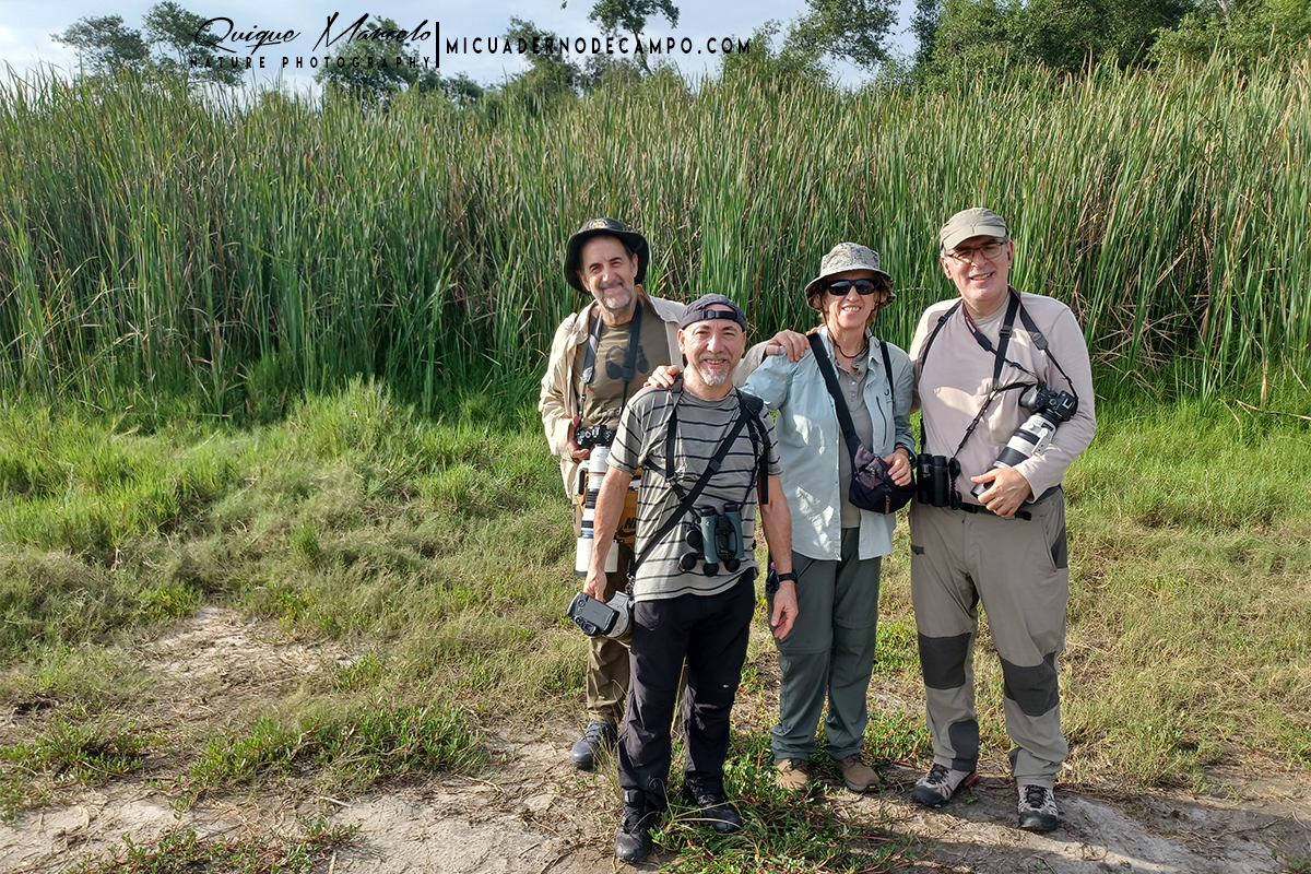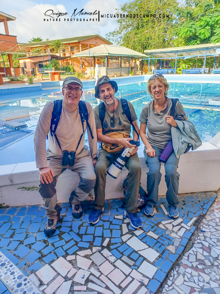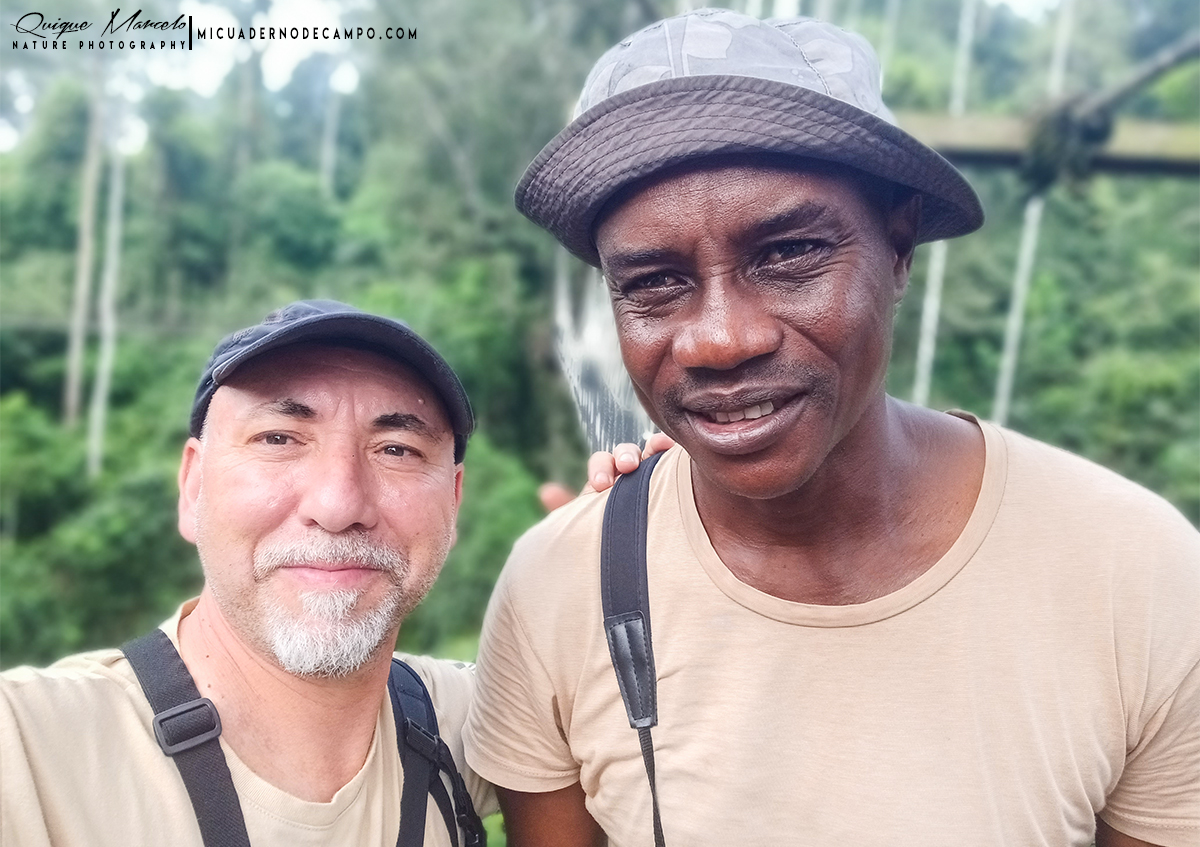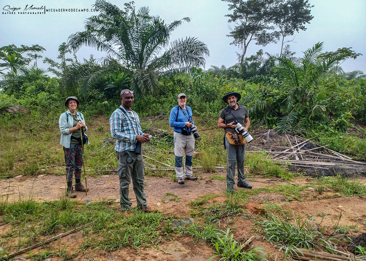 El día comienza temprano, con un desayuno a las 5:00 de la mañana, Poco después, a las 5:30, Kalu nos recoge para dirigirnos al canopy del Parque Nacional de Kakum. Este sistema de pasarelas suspendidas entre las copas de los árboles ofrece una oportunidad única para observar aves que suelen permanecer ocultas en el dosel del bosque primario. Las vistas desde las plataformas son impresionantes, con un mar de hojas verdes extendiéndose hasta donde alcanza la vista. Aunque la distancia hacía que muchas especies estuvieran muy lejos, disfrutamos enormemente de la experiencia, logrando identificar algunas de las aves más emblemáticas del lugar, como Toco negro Occidental (Horizocerus hartlaubi), Cálao crestiblanco occidental (Horizocerus albocristatus), Barbudo pintado (Buccanodon duchaillui), Barbudito escolopáceo (Pogoniulus scolopaceus) y Suimanga de Seimund (Anthreptes seimundi) entre otros. También avistamos un primate característico de la región, Cercopiteco mona (Cercopithecus mona), saltando ágilmente entre las ramas, que fue motivo de alegría para el grupo. De regreso al Hans Cottage Lodge a las 13:00, aprovechamos para observar aves en los jardines y el lago del alojamiento antes del almuerzo. Destacaron especies como Garcilla bueyera occidental (Ardea ibis), Tejedor anaranjado (Ploceus aurantius), Tejedor de Vieillot (Ploceus castaneofuscus), Tejedor africano (Ploceus cucullatus), etc., todos ellos muy activos alrededor del agua. También pudimos admirar a los imponentes Cocodrilos del Nilo (Crocodylus niloticus) que se acercaban tranquilamente a las orillas del lago, generando cierta mezcla de fascinación y respeto. Por la tarde, a las 15:30, Kalu nos llevó a un bosque secundario cercano al Parque Nacional de Kakum, llamado Ebekawopa. Este lugar, con áreas abiertas, nos permitió avistar especies adicionales como Monarca ventrirrojo (Terpsiphone rufiventer), Estornino espléndido (Lamprotornis splendidus), Crombec verde (Sylvietta virens) y Suimanga ventrioliva (Cinnyris chloropygius). Estas áreas eran ideales para observar aves más visibles que contrastaban con la dificultad del dosel cerrado del bosque primario que vistamos por la mañana. Para cerrar el día, intentamos localizar alguna rapaz nocturna cerca de la entrada del parque nacional, aunque no tuvimos éxito. Sin embargo, esta actividad nos permitió apreciar los sonidos y la atmósfera nocturna de Kakum, una experiencia en sí misma. Después, nos retiramos a cenar, tomar una ducha y descansar para el siguiente día. |