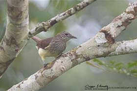 El día comienza temprano, como de costumbre. A las 5:30, el sonido del despertador nos pone en marcha, y tras un desayuno rápido, emprendemos el camino hacia Antwikwaa. La ruta nos lleva a través de paisajes variados, con manchas de bosque secundario y plantaciones de banana y cacao que dan un aire muy auténtico a la zona. Este tramo resulta ser especialmente fructífero en cuanto a avistamientos. Entre las especies destacadas del día figuran Suimanga ventrioliva (Cinnyris chloropygius),Barbudito culirrojo (Pogoniulus atroflavus), Barbudito gorjigualdo (Pogoniulus subsulphureus), Bulbul sencillo (Chlorocichla simplex), el llamativo Malimbo cabecirrojo (Malimbus rubricollis) y una de las sorpresas del día: un tímido y precioso ejemplar de Batis carunculado de Blissett (Platysteira blissetti). Tras una mañana cargada de actividad, volvemos al Hans Cottage Lodge sobre las 13:00, donde aprovechamos para observar aves en los jardines. Aunque las especies son similares a las vistas el día anterior, no dejan de sorprendernos. Esta vez, un Alción senegalés (Halcyon senegalensis) nos regaló un avistamiento cercano, y un Varano del Nilo (Varanus niloticus) se paseó con tranquilidad cerca de la colonia de Garcilla bueyera occidental (Bubulcus ibis), añadiendo una pizca de exotismo a nuestro descanso. Antes de almorzar, disfrutamos de un merecido baño en la piscina, una pausa refrescante tras el calor del día. Por la tarde, a las 15:30, Kalu y Frank nos recogen para dirigirnos a los bosques de Ebekawopa. Este lugar nos recibe con un flock de aves que mantiene al grupo entretenido durante horas. Entre las especies observadas destacan Papamoscas pizarroso (Fraseria caerulescens), Estrilda piquigorda ventrinegra (Euschistospiza cinereovinacea) y Batis carunculado gorjipardo (Batis crypta). Además, el cielo también nos regaló grandes momentos, con el majestuoso vuelo de un Cernícalo pizarroso (Falco ardosiaceus) y un Aguilucho caricalvo común (Polyboroides typus), cerrando la jornada con broche de oro. Con la noche cayendo, regresamos al lodge sobre las 18:30, cansados pero satisfechos con los avistamientos del día. Tras la cena, nos retiramos a descansar, preparándonos para lo que nos deparará la siguiente jornada en estas tierras tan ricas en biodiversidad. |