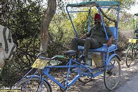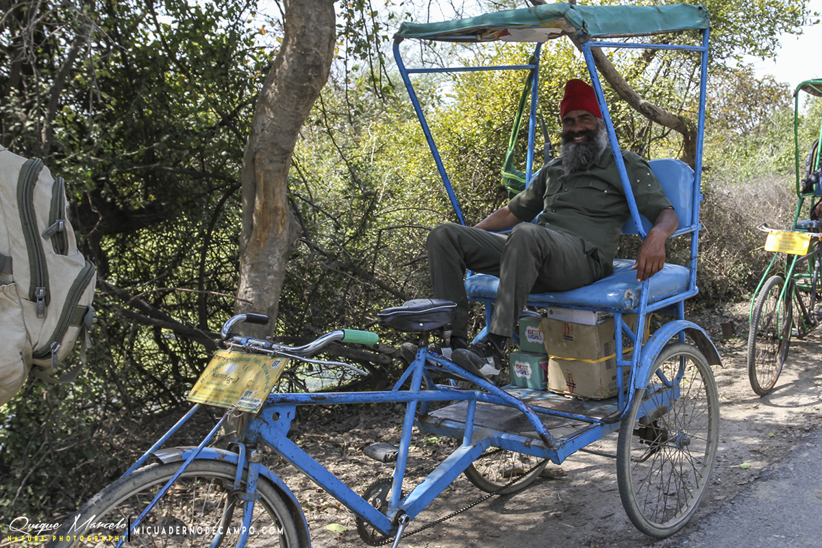 En las agotadoras y eternas 6 horas que duró el viaje, paramos un par de veces para pagar tasas de peaje y para tomar un café, antes de llegar a nuestro primer alojamiento, el hotel Kadamb Kunj, donde íbamos a pasar nuestra primera noche. Llegamos sobre las 11 de la mañana y nada más hacer el checking en el hotel, desayunamos y pusimos rumbo al Parque Nacional de Keoladeo Ghana, un increíble lugar de esos que te dejan siempre ganas de más, un buen comienzo para empezar el viaje. La manera de recorrer el parque es en ricksaw, un triciclo a pedales conducido por un operario del parque. La primera zona era bastante árida y seca, pero no por ello, menos interesante que otras. Allí iban apareciendo especies de aves muy sugerentes, como Bulbul cafre de la sp. humayuni (Pycnonotus cafer humayuni), otra subespecie, en esta ocasión de la Abubilla común (Upupa epops ceylonensis), Mochuelo brahmán (Athene brama), Suimanga asiático (Cinnyris asiaticus), Barbudo calderero (Psilopogon haemacephalus), Turdoide matorralero (Turdoides striata), Estornino de las pagodas (Sturnia pagodarum), etc., y no sólo aves, si no también aparecían los primeros mamíferos y reptiles, entre ellos, Macaco reshus (Macaca mulatta), Zorro volador de la India (Pteropus giganteus), Chital (Axis axis) y una imponente Pitón de la India (Python molurus) de varios metros de larga. Después del pic-nic al mediodía emprendimos la ruta por la segunda parte del parque, una zona más encharcada en la que iban cayendo cada vez, más y más especies nuevas. Por ser sinceros me lo estaba pasando pipa, en muchas ocasiones sin saber a dónde mirar porque había pájaros por todos lados. Por nombrar algunos, Grulla sarus (Antigone antigone), Carricero estentóreo de la sp. brunnescens (Acrocephalus stentoreus brunnescens), Garcita verdosa de la sp. chloriceps (Butorides striata chloriceps) Abejaruco esmeralda oriental (Merops orientalis), Miná ribereño (Acridotheres ginginianus), Estornino pío común (Gracupica contra), Ánade picopinto indio (Anas poecilorhyncha), Bulbul orejiblanco (Pycnonotus leucotis), etc. Al hacer la lista por la noche, contamos que habíamos visto en este primer día 116 especies de aves, de las cuales, la gran mayoría de ellas fueron "bimbo" para mí (pincha en el enlace si no sabes lo que es un bimbo, aunque el resumen es "ver una especie nueva". En este enlace hay un artículo que explica de donde viene esta descripción). En definitiva y para resumir, día completísimo pajareando en Keoladeo Ghana, pero la pena fue no tener un día más para repetir en ese alucinante lugar.