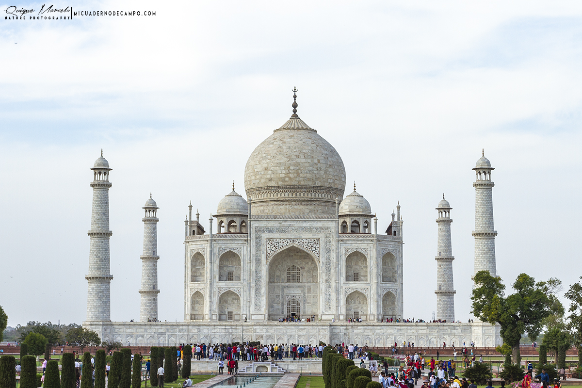 Al mirar con los prismáticos, pudimos apreciar que había dos ejemplares descansando en la orilla donde señaló Shyam, y más tarde, pudimos ver 4 ejemplares más en distintos lugares. Hubo un momento mágico, en el que teníamos en el mismo plano de visión, 3 ejemplares de Gavial (Gavialis gangeticus), un grupo de Rayador indio (Rynchops albicollis), Charrán ventrinegro (Sterna acuticauda), Correlimos de Temminck (Calidris temminckii), Ánsar indio (Anser indicus), Suirirí de Java (Dendrocygna javanica) y Cocodrilo de las marismas (Crocodylus palustris), una auténtica pasada. Una vez terminada la jornada matutina de pajareo, fuimos a comer, y por la tarde, teníamos una visita programada al Taj Mahal. Simplemente decir que, este mausoleo construido por el emperador Shah Jahan, no es solamente una de las 7 maravillas del mundo, si no que es, un impresionante complejo de edificios construidos por amor a su decimocuarta esposa. Una auténtica obra maestra de ingeniería. Realmente, merece mucho la pena visitarlo. Terminada la tarde, compramos unos bocatas en un restaurante y fuimos hacia la estación de tren. Íbamos a pasar toda la noche viajando hacia el centro de la India, hacia Katni, cerca del Parque Nacional de Bandavhgarh, la tierra del tigre. Este era nuestro próximo destino.