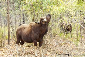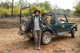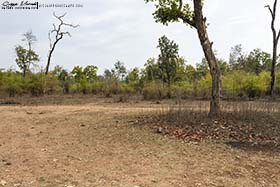 A mitad de la mañana, paramos para desayunar un pic-nic que nos habían preparado en el lodge. La zona de parada era un área de seguridad, donde no podías salir, porque te advierten que es peligroso aventurarse andando fuera por motivos obvios. Sobre las 11 de la mañana, se da por finalizado el tour matinal. Por la tarde volveremos para realizar un nuevo tour dentro del parque. Volvemos al lodge y aprovechamos el tiempo pajareando por los alrededores antes del almuerzo. Entre los pájaros que vemos, se puede destacar Anteojitos oriental (Zosterops palpebrosus), Cálao gris indio (Ocyceros birostris), Urraca vagabunda (Dendrocitta vagabunda), Carraca india (Coracias benghalensis), etc. El safari de por la tarde es un calco al de por la mañana, el tigre no aparece, aunque vemos otros mamíferos que no habíamos visto por la mañana, como Gaur (Bos gaurus) y Sambar (Rusa unicolor), dos cérvidos bastante grandes. También aparecen pájaros interesantes, como Pico mahratta (Leiopicus mahrattensis), Águila india (Aquila hastata), Culebrera chiíla (Spilornis cheela), etc. Terminado el safari, volvemos al lodge y hacemos un pequeño tour por los alrededores para buscar rapaces nocturnas antes de cenar. Escuchamos un Mochuelo de jungla (Glaucidium radiatum) y logramos ver un Chotacabras hindú (Caprimulgus asiaticus). Sin más, ducha, cena y a la cama, que mañana volverá a ser un día duro.