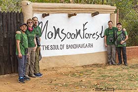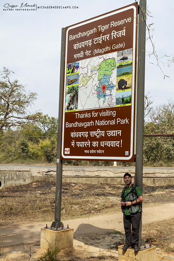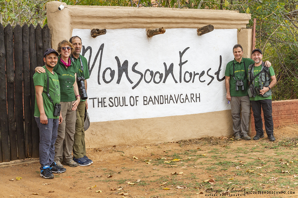 Viajar toda una noche en un tren en India, es una experiencia indescriptible. Dormimos en una cabina pequeña de la clase superior, donde por el pasillo pasaban todo tipo de personas, con un olor en el tren que creo que me duró varios días en mi nariz, lo dicho, por mucho que cuente, eso es para verlo, es difícil de describir con palabras. A las 6:45 llegamos a Katni, donde nos esperaban dos coches para hacernos el transfer hasta el Parque Nacional de Bandhavgarh. El viaje duró unas dos horas aproximadamente hasta llegar a nuestro siguiente alojamiento, el Monsoon forest lodge. Por el camino, y según nos acercábamos al parque, vimos varios carteles que decían: "Land of Tigers". Solamente ver esa inscripción en las señales ya me emocionaba y estaba deseoso de llegar, aunque la verdadera aventura en Bandhavgarh, empezaría al día siguiente, ya que, los miércoles permanecía el parque nacional cerrado por las tardes y no se permitía la entrada. Eran las 9 de la mañana cuando llegamos al lodge. Teníamos libre hasta la hora del almuerzo, con lo cual, unos lo dedicaron a descansar, Coral se dio un buen baño en la piscina del lodge, y Manolo y un servidor recorrimos los jardines en busca de pájaros.