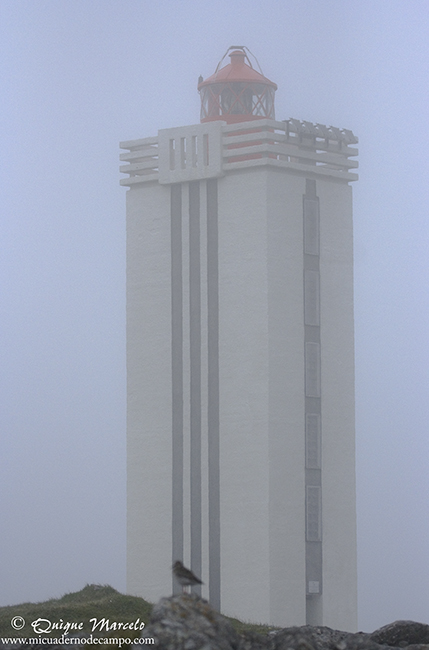 Una vez en el puerto nos dirigimos hasta la punta más al oeste de la península de Snaefellsnes, hacía un faro llamado Svörtuloft, pasando por Olafsvik, Rif y Hellissandur, donde pudimos observar en estos últimos pueblos, cantidad de Archibebe común (Tringa totanus), Charrán ártico (Sterna paradisaea), nuestros primeros Falaropos picofinos (Phalaropus lobatus) del viaje, Gavión atlántico (Larus marinus)y ya en la punta de Svörtuloft en unos cortados marinos, pudimos ver Frailecillos y álcidos a cientos.