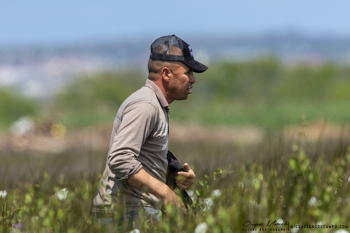 El día comenzó temprano. A las 6 de la mañana sonó el despertador, y tras asearnos y desayunar algo ligero en la habitación, a las 7 ya estábamos fuera, listos para prospectar algunos puntos aledaños a Merja Zerga antes de encontrarnos con nuestro guía, Younes, a las 12 del mediodía. La primera parada fue en los alrededores de nuestro alojamiento, La Casa Latifa, pero el pajareo fue bastante escaso. Aun así, empezamos con buen pie al encontrarnos con una Cigüeña blanca (Ciconia ciconia) buscando alimento a escasos metros del alojamiento. Después nos dirigimos a varias localizaciones destacadas en eBird, entre ellas un camping abandonado, donde lo más interesante fue la observación de un grupo de Gaviota de Audouin (Ichthyaetus audouinii), una especie que siempre es un placer ver. Seguimos explorando en dirección norte hasta llegar a una laguna formada por el desbordamiento de los riegos de las huertas circundantes, llamada Merja El-Halloufa. Allí avistamos varias especies interesantes como, Pagaza piconegra (Gelochelidon nilotica), Garceta común (Egretta garzetta), Garcilla cangrejera (Ardeola ralloides), Urraca magrebí (Pica mauritanica), Pinzón magrebí (Fringilla spodiogenys), etc. A mediodía, nos dirigimos al punto de encuentro con Younes, al otro lado del parque. Primeramente nos llevó a una zona de herbazales costeros, donde tras caminar unos minutos, conseguimos ver un primer ejemplar de Búho moro (Asio capensis). A lo largo de esa hora, logramos localizar hasta cinco individuos. Sin embargo, la observación no fue tan satisfactoria como esperábamos: con el sol ya en lo alto, las aves salían volando de espaldas, con mala luz y alejándose rápidamente para posarse de nuevo a varios cientos de metros. Además, no queríamos causar molestias innecesarias en una franja horaria poco respetuosa para estas aves. Younes nos explicó que al atardecer, la situación cambia: los búhos vuelan bajo y a veces se posan en los postes, permitiendo observaciones mucho más interesantes. Tras una rápida reflexión, tomamos una decisión importante: modificar la ruta original, cancelar nuestra última noche en Kenitra y volver a La Casa Latifa al final del viaje para intentar de nuevo el Búho moro con mejores condiciones. Después de dejar a Younes cerca de su casa, improvisamos un almuerzo campestre y pusimos rumbo a El Yadida, a unas 4 horas en coche. Allí, planeábamos buscar al Torillo andaluz (Turnix sylvaticus), sabiendo que no sería una tarea nada fácil, sino dificilísima. Al llegar por la tarde, tuvimos un golpe de suerte: nos encontramos con Khalid, un joven marroquí que había participado en 2009 en el estudio y anillamiento del Torillo junto a un grupo de españoles. Nos ofreció su ayuda y, aunque esa misma tarde no conseguimos localizar al esquivo ave, quedamos con él para volver a intentarlo al día siguiente. Con la noche ya cerrada, regresamos a El Yadida, a unos 10 km de las huertas, para descansar tras este intenso segundo día repleto de kilómetros, cambios de planes, encuentros y, por supuesto, naturaleza salvaje. |