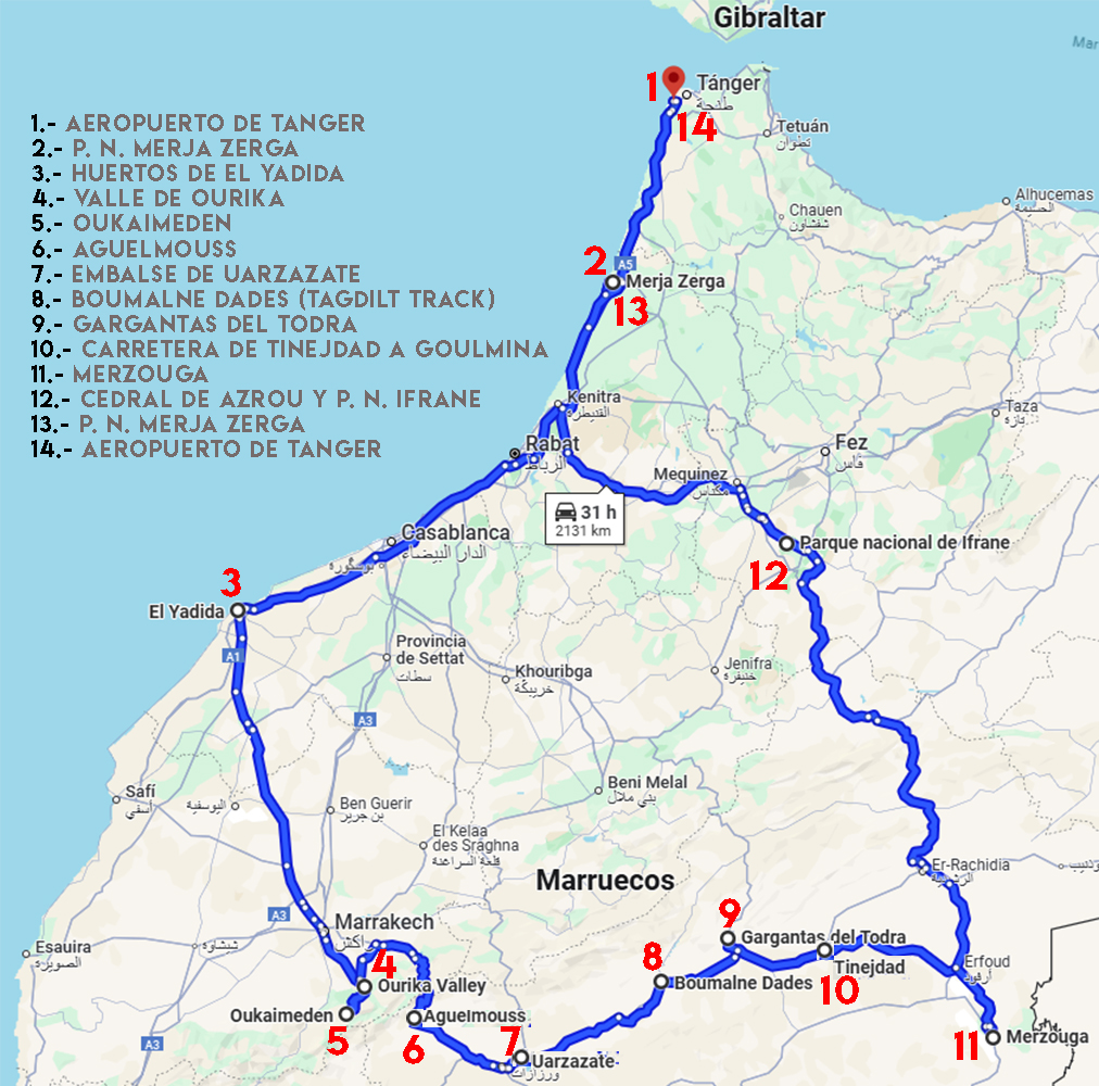 | Vuelo a Tánger y llegada a Merja Zerga |