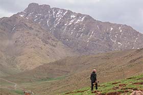 El día comienza temprano, con el despertador sonando a las 5:00 h. Tras asearnos y desayunar rápidamente en la habitación, partimos a las 5:50 h. rumbo a Oukaimeden, una estación de esquí situada a más de 2.600 metros de altitud que, fuera de temporada, se convierte en un enclave ornitológico de primer nivel, además de ser el lugar donde habita el Toubkal, la montaña más alta del norte de África, con 4.167 m. de altura. A nuestra llegada, el sol comienza a despuntar y el aire es frío. La primera parada es en la laguna de Oukaimeden donde observamos una Focha común (Fulica atra) nadando con calma. Comenzamos a ascender a pie por la ladera y enseguida aparecen las primeras especies: una Collalba negra (Oenanthe leucura), seguida de varios Gorriones chillones (Petronia petronia) entre las construcciones de piedra. Más arriba, detectamos las dos chovas características del lugar: la Chova piquigualda (Pyrrhocorax graculus) y la Chova piquirroja (Pyrrhocorax pyrrhocorax), que se dejan ver claramente en vuelo y alguna de las piquigualdas posadas sobre las construcciónes. Poco después, vemos fugazmente a un Colirrojo diademado (Phoenicurus moussieri), aunque desaparece rápido. En la misma roca aparece un Roquero solitario (Monticola solitarius), seguido de un Colirrojo tizón (Phoenicurus ochruros). Con los prismáticos localizamos al gran objetivo del día, un grupo de Camachuelos alirrojos (Rhodopechys sanguineus) se alimentan entre las piedras y nos regalan más de una hora de observación. De regreso hacia el coche, descubrimos a la otra estrella, una pareja confiada de Alondra cornuda (Eremophila alpestris) que completa un bloque excelente de especies alpinas. Seguimos carretera arriba hasta la estación principal del teleférico, donde observamos una pareja de Collalba del Atlas (Oenanthe seebohmi), además de Zorzal charlo (Turdus viscivorus), Pinzón magrebí (Fringilla spodiogenys) y otros comunes de la zona. En ese momento, un chico inglés se detiene en su coche y nos ofrece enseñarnos un Cárabo del Magreb (Strix mauritanica). Le seguimos y, efectivamente, encontramos al impresionante búho posado entre unos cipreses. Un momento inolvidable. También en los alrededores se encontraba un grupo familiar de Ardillas terrestres de Berbería (Atlantoxerus getulus), especie endémica del Atlas. Ya en el poblado de adobe de Oukaimeden, insistimos en buscar nuevamente al Colirrojo diademado (Phoenicurus moussieri), que esta vez se deja ver bien y fotografiar. También repetimos con Roquero solitario (Monticola solitarius), Alondra cornuda (Eremophila alpestris) y añadimos una Collalba gris (Oenanthe oenanthe) al cierre. Para terminar la jornada, decidimos subir en coche hasta lo más alto de la estación de esquí, donde se encuentra un mirador espectacular. Desde allí, las vistas son simplemente sobrecogedoras. Frente a nosotros se alza majestuoso el pico Oukaimeden, que da nombre a la estación, con su perfil escarpado recortándose contra el cielo. Pero aún más impresionante es la panorámica del Toubkal, el techo del norte de África, que con sus 4.167 metros de altura domina todo el paisaje. Es un momento de pausa y contemplación, una forma perfecta de cerrar un día intenso de montaña, aves y naturaleza. Nos quedamos unos minutos en silencio, absorbiendo la inmensidad del entorno antes de iniciar el viaje de vuelta a nuestro alojamiento. Por la tarde, en el valle de Ourika, buscamos al Zarcero bereber (Iduna opaca) y al Pito bereber (Picus vaillantii), sin éxito. Vemos, eso sí, Herrerillo canario (Cyanistes teneriffae), además de Ruiseñor común (Luscinia megarhyncos), Bulbul naranjero (Pycnonotus barbatus) y Lavandera cascadeña (Motacilla cinerea). Pero la jornada se ve abruptamente interrumpida por una tormenta torrencial. La lluvia nos obliga a salir corriendo del campo y detener el coche por lo impracticable de la carretera. Afortunadamente conseguimos cruzar el puente del río y llegar al alojamiento sin problemas. Terminamos el día con una ducha caliente y una cena con un tajine de pollo, satisfechos por las observaciones logradas en un entorno tan espectacular como el Alto Atlas. |