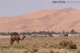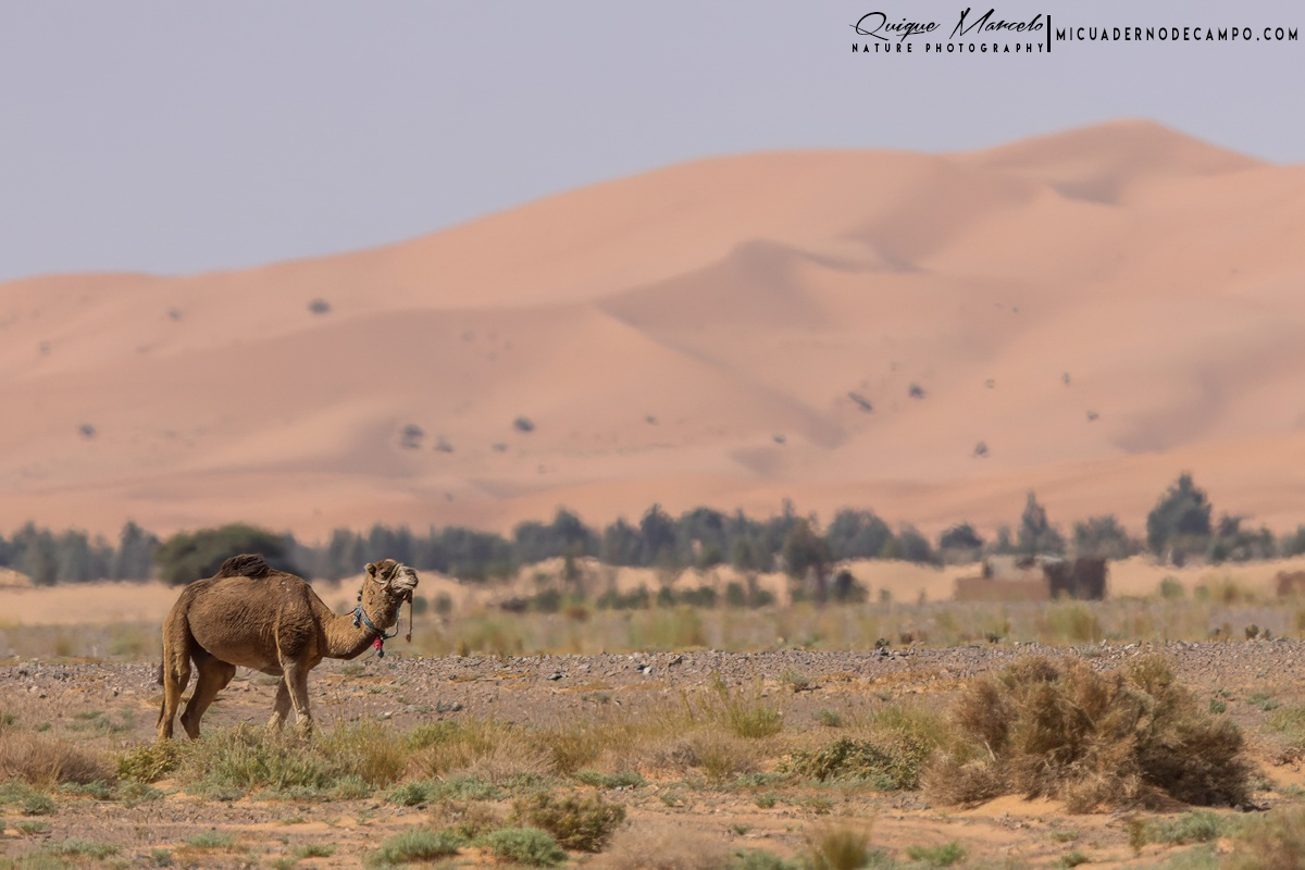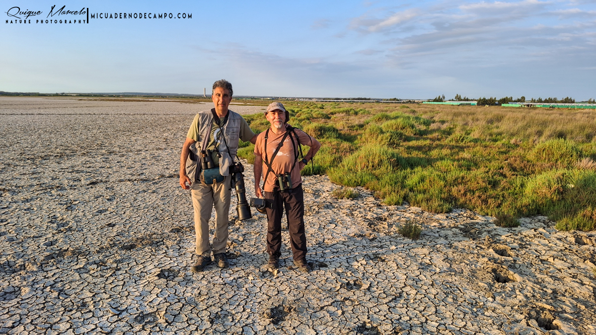 Se repite el mismo ritual mañanero. El despertador suena muy pronto, a las 6:00. Nos aseamos, desayunamos en la habitación con un desayuno que nos ha dejado preparado el chico del alojamiento, y preparamos todo el equipo óptico, ya que a las 7:00 en punto aparece Mohamed, el guía que nos ha asignado Brahim Mezane para realizar el tour por el desierto de Merzouga. Viene acompañado de Said, un conductor experto que maneja su 4x4 como si formara parte del paisaje, sorteando las dunas con habilidad y soltura. El tour tiene una duración prevista de unas 8 horas y desde el inicio se muestra prometedor. Llevamos anotados siete objetivos claros que queremos ver a lo largo del día, y no perdemos tiempo en comunicárselo a Mohamed, quien asiente con seguridad: se los conoce al dedillo. La primera parada nos lleva a una explanada inmensa, un terreno abierto que recuerda al Tagdilt Track, donde hay apenas un charco de un metro cuadrado. Pese a su humildad, sabemos que puede convertirse en escenario de lujo. No olvidemos que es agua en el desierto. Le pedimos a Said que coloque el coche entre el sol y el agua, a escasos metros del borde, para evitar molestar a las aves que están por llegar. No tardamos en tener recompensa: varias decenas de Ganga coronada (Pterocles coronatus) y Ganga moteada (Pterocles senegallus) comienzan a llegar en pequeños grupos. Primero se posan lejos, recelosas, pero poco a poco se van acercando a paso firme y coordinado, como un pequeño ejército. El espectáculo es sencillamente impresionante, uno de esos momentos que se graban para siempre. Con las gangas en el bolsillo, seguimos ruta. Nuestro segundo objetivo es el Gorrión sahariano (Passer simplex). Mohamed nos lleva a un pequeño asentamiento bereber con algunas jaimas y vegetación dispersa. No tarda en aparecer un grupo de gorriones, con su plumaje arenoso y comportamiento confiado. Se dejan observar a placer y conseguimos muy buenas fotografías. Justo cuando nos íbamos, aparece otro guía con un grupo de británicos, entre los que reconocemos a Scott y su hijo. Intercambiamos un breve saludo y seguimos nuestro camino: el reloj no perdona. Ahora buscamos a la esquiva Curruca sahariana (Curruca deserti), más difícil de localizar. Mohamed nos conduce a una zona pedregosa con arbustos dispersos. Aquí toca bajar del coche y caminar. Tras más de una hora de búsqueda infructuosa, Mohamed decide llamar al otro guía, quien nos dice que su grupo está observando la curruca en otro punto. Sin perder un segundo, nos dirigimos hacia allí. Por el camino, se nos cruza varias veces otro de los objetivos del día: la Terrera colinegra (Ammomanes cincturus), que se muestra mucho más confiada, posándose tanto en el suelo como en lo alto de pequeños arbustos, lo que nos permite disfrutarla y fotografiarla con calma. Llegamos finalmente al sitio indicado y allí está: la Curruca sahariana, moviéndose de arbusto en arbusto, nerviosa y ágil, buscando alimento. Nos mantiene ocupados un buen rato, pero conseguimos observarla con detalle y obtener algunas buenas tomas. Es una satisfacción especial, sabiendo lo complicado que es encontrarla. A media jornada, tras un breve descanso, ponemos rumbo a un pequeño oasis donde tienen localizado al Chotacabras egipcio (Caprimulgus aegyptius). El trayecto, de unos 40 minutos, nos lleva a través de zonas pedregosas y dunas. Desde lejos vemos que el grupo de británicos ya ha llegado. Nos tememos lo mejor, y acertamos: uno de los integrantes del grupo nos señala la ubicación exacta. Bajo una pequeña palmera descansan dos adultos y dos pollos perfectamente mimetizados. El camuflaje es tan efectivo que cuesta creer que estén ahí. Permanecen completamente inmóviles, lo que nos permite contemplarlos largo rato sin molestarlos. Nos queda un solo objetivo: el Cuervo desertícola (Corvus ruficollis). Lo localizamos de regreso al campamento, posado en la rama de una acacia solitaria junto a otro ejemplar, protegiéndose del fuerte calor del mediodía. Nos detenemos unos minutos para observarlos, satisfechos de haber logrado ver las siete especies marcadas al inicio del día. Antes de volver al alojamiento, aún nos queda una última parada en el Palmeral de Igrane. Este rincón verde es un verdadero oasis de vida, y no decepciona. Observamos varias especies en plena migración, como el Mosquitero silbador (Phylloscopus sibilatrix), el Mosquitero musical (Phylloscopus trochilus) y la siempre elegante Tórtola europea (Streptopelia turtur). También aparece, para nuestra sorpresa, un Turdoide rojizo (Argya fulva), y es la segunda vez que vemos hoy, ya que donde el Gorrión sahariano, también apareció uno fugazmente. Y creíamos que iba a ser de los más difíciles del viaje, en fin. Por la tarde, tras una comida rápida y algo de descanso, decidimos acercarnos a la laguna de Merzouga. Nos recibe completamente llena de agua, un espectáculo asombroso en medio del desierto. Está repleta de limícolas y otras aves acuáticas que reconocemos fácilmente: Cigüeñuela común (Himantopus himantopus), Correlimos menudo (Calidris minuta), Correlimos zarapitín (Calidris ferruginea), Chorlitejo chico (Thirnonis dubius), Chorlitejo patinegro (Charadrius alexandrinus), Avoceta común (Recurvirostra avosetta) y Tarro canelo (Tadorna ferruginea), entre otras. Con la luz dorada del atardecer envolviéndolo todo, regresamos finalmente al hotel, agotados pero felices. Ha sido una jornada larga e intensa, quizás la más completa del viaje. Tras una ducha reparadora, cenamos en el Tifinagh Guest con una sonrisa de oreja a oreja, sabiendo que el desierto nos ha regalado uno de esos días que no se olvidan nunca. |