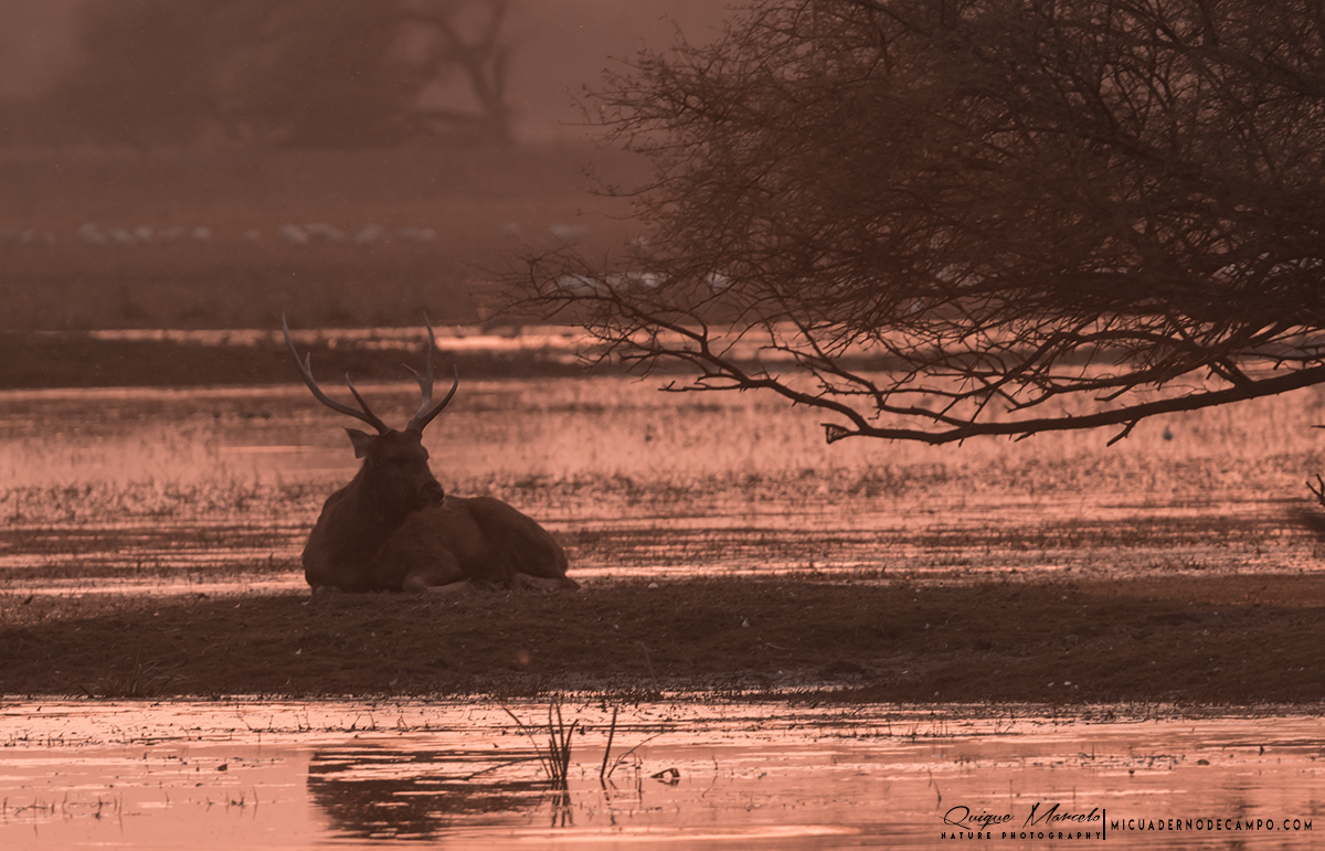 Hoy ha sido un largo día visitando todo lo que es la reserva de Koshi Tappu. Esta reserva es uno de los lugares más interesantes de Nepal para un ornitólogo. Koshi Tappu es un área protegida con una extensión de unos 175 Km² y con una fauna que no deja indiferente a nadie, con más de 450 especies de aves, más de una treintena de mamíferos, por no hablar de reptiles, anfibios, mariposas, etc. Tal y como le dije a Sanjib y a su primo Dinesh, quien nos acompañó durante los dos días que permanecimos en la reserva, eran muy afortunados porque nada más salir de la puerta de casa tenían todo ese vergel a sus pies, ellos lo sabían y un buen ejemplo es lo controladas que tenían a todas las especies que por allí andaban. A las 6 en punto de la mañana estábamos desayunando en el comedor de nuestro lodge, llamado Koshi bird village, aprovechando entre bocado y bocado cualquier momento para observar diferentes especies de aves que podíamos ver alrededor de la pequeña laguna que tiene este alojamiento, como Picotenaza asiático (Anastomus oscitans), Alción picocigueña (Pelargopsis capensis), Jacana bronceada (Metopidius indicus), etc. Nada más terminar nuestro desayuno, salimos hacia la puerta de la reserva, donde Sanjib hizo los trámites rutinarios y los guardas nos dieron acceso al interior de aquella inmensa zona inundada.