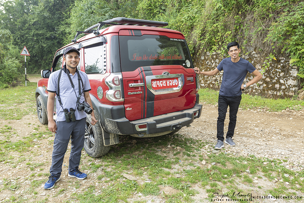 Tomamos a las 22:30 h. del día 9 de junio nuestro avión con dirección Katmandú. Nuestra primera parada fue Doha, capital de Qatar, donde hicimos una escala de hora y cuarto antes de embarcar de nuevo en el avión de la compañía Qatar airways para alcanzar nuestro destino final. Al aterrizar en la capital nepalí al día siguiente (10 de junio) tuvimos dos problemas, el primero y el más preocupante fue que mi mujer, Pepa, se encontraba fatal del estómago, seguramente por algo que habría ingerido durante el viaje, ya sabemos que la comida asiática, aunque muy rica, es también muy fuerte para nuestros finos estómagos. El segundo problema y no menor, fue que mi maleta no llegó a Katmandú, con lo cual, una vez hecha la reclamación y el visado correspondiente para la entrada al país, salimos al exterior del bullicioso aeropuerto y nos encontramos con Sanjib, nuestro extraordinario guía que nos acompañó durante todo nuestro viaje. Eran las 5 de la tarde cuando nos montamos en el coche para dirigirnos a nuestro hotel. El viaje en coche desde el aeropuerto a nuestro alojamiento nos llevó más de hora y media pasando por enormes atascos que había por todo Katmandú, pero finalmente alcanzamos el Hotel Nepalaya, en el mismo centro de Katmandú, donde permanecimos esta primera noche y la última de nuestro viaje. Pronto anocheció, por cierto, no quiero olvidar en contaros que hoy era el cumple de Iris. Todo esto viene al hilo que cuando fuimos a cenar mientras Pepa se quedó descansando y recuperándose en la habitación, el restaurante nos recibió con una tarta que les había dejado Sanjib para que nos sirvieran a la cena, todo un detalle. Enseguida nos fuimos a dormir, realmente había sido un día muy duro para todos. Al día siguiente sonó el despertador a las 6:30 horas. Había quedado con Sanjib a las 7 para salir por Phullchowki mountains, un paraje en el sur de la ciudad, pero todo dependía de cómo se encontrara Pepa. No había pasado mala noche, pero por precaución ella prefirió quedarse descansando en el hotel. Durante la mañana tuvimos que llamar varias veces al aeropuerto para saber sobre mi maleta, ya que me dijeron que llegaría al día siguiente en otro vuelo, con lo cual, tenía que estar pendiente de este tema también. Nos pusimos en marcha hacia Phullchowki mountains, un precioso lugar montañoso al sur de Katmandú con un bosque espeso y realmente difícil para ver pájaros por lo alto de los árboles, pero yendo con Sanjib no hay nada imposible, ya que éste los veía de una manera extraordinaria. Al principio del camino oíamos muchos pájaros, pero pocos lográbamos ver, hasta que llegamos a una zona que conocía Sanjib donde no daba a vasto para ver, identificar y fotografiar pájaros de distintas especies, Fulveta nepalesa (Alcippe nipalensis), Pico pechirrojo occidental (Dryobates cathpharius), Pito crestigualdo (Picus chlorolophus simlae), Picaflores pechofuego (Dicaeum ignipectus), eran algunas de las lindezas que se encontraban allí. Seguimos aquel camino de montaña hacia arriba con el coche conducido por Lamsal, nuestro conductor, pudiendo descubrir nuevos bimbos para mi lista. Quiero hacer un inciso en este relato y comentar que quiere decir el término "bimbo", ya que, últimamente me he encontrado con birders en España que desconocían el significado de esta palabra, y creo que es un término ya muy extendido y usado por todas las personas que salen a ver e identificar pájaros. Bimbo es la descripción que se le da a una especie cuando es la primera vez que la ves en tu vida. En este artículo escrito por Marc Gálvez explica de donde viene este término, BIMBO. Sobre las 13:30 nos llamó el primo de Sanjib que estaba cerca del aeropuerto y nos confirmó que mi maleta ya había llegado, con lo cual, nos dirigimos al aeropuerto para recogerla y más tarde al hotel para comer. Por la tarde me quedé en la habitación con las chicas y Pepa ya me comentó que estaba bastante mejor, menos mal, porque al día siguiente nos esperaba un largo viaje hacia el este del país, a la ciudad de donde es natural Sanjib, Koshi Tapu.