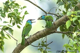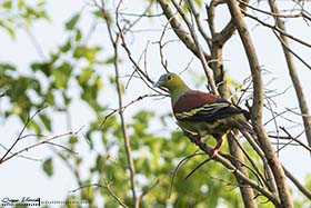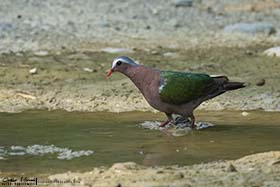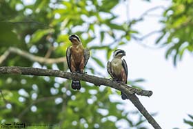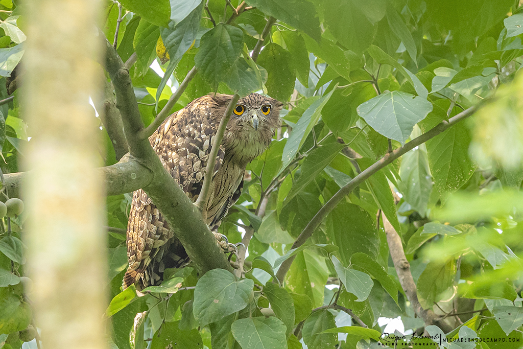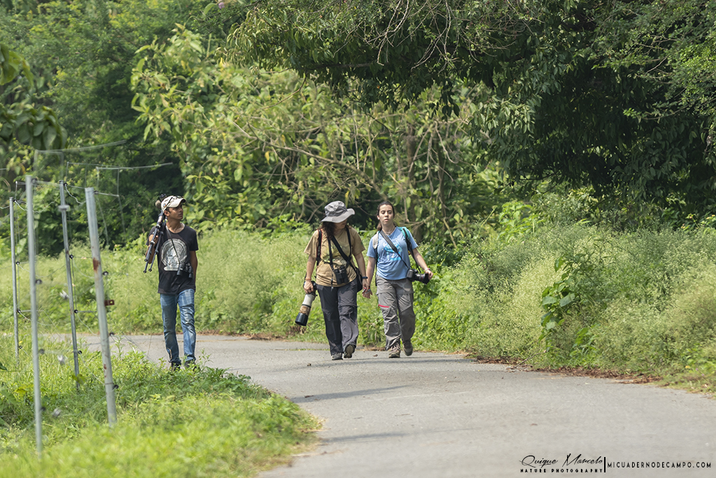 En cuanto entramos a la reserva pude comprender porque es uno de los mejores lugares de Nepal para observar aves, ya que éstas se sucedían sin parar y no daba a vasto de ver y fotografiar distintas especies entre las que se encontraban, Koel occidental (Eudynamys scolopaceus), Alción de Esmirna (Halcyon smyrnensis), Pito bengalí (Dinopium benghalense), Oropéndola encapuchada (Oriolus xanthornus), Estornino pío común (Gracupica contra), etc., aunque el bimbo del día llegó al final de la mañana, cuando Dinesh descubrió una pareja de Búho pescador de Ceilán (Ketupa zeylonensis leschenaulti) descansando en un árbol. El momento fue alucinante. Sanjib y yo nos pudimos acercar lo suficiente como para tomarles un buen número de fotos sin molestarles. Más tarde volvimos al Koshi bird village para almorzar y descansar un rato. Sobre las 4 de la tarde volvimos a la reserva a gastar las últimas dos horas que le quedaban al día de luz. Realmente aquellas dos horas fueron bastante provechosas, con muchas especies interesantes y nuevos bimbos, como Miná grande (Acridotheres grandis), Cucal bengalí (Centropus bengalensis), Avetorillo chino (Ixobrychus sinensis), Mochuelo brahmán (Athene brama), etc., pero igual que pasó por la mañana, tuvimos un espectacular momento cuando dimos con un árbol repleto de unos frutos pequeños circulares, se trataba de un Árbol de Koda (Ehretia acuminata), en el cual, estaban alimentándose gran cantidad de aves que nos tuvieron entretenidos mucho tiempo. Barbudo gorjiazul común (Psilopogon asiaticus), Vinago del Himalaya (Treron phayrei) y Vinago bicinta (Treron bicinctus), eran algunos de ellos. Ya de vuelta al lodge, paramos durante unos minutos al borde de un camino, ya que se nos cruzaron una bonita pareja de Francolín palustre (Francolinus gularis) y algo más tarde descubrimos un joven Buitre dorsiblanco bengalí (Gyps bengalensis) perchado en un árbol cercano. También pudimos ver a última hora de la tarde, ya casi sin luz, una hembra de Ciervo porcino (Axis porcinus) con su cría, un bonito Meloncillo gris (Herpestes edwardsii) cruzando el camino, así como, un enorme ejemplar de Elefante asiático (Elephas maximus) alimentándose de hierba fresca al otro lado del río. Llegamos al lodge casi de noche, ducha, cena y a dormir. |