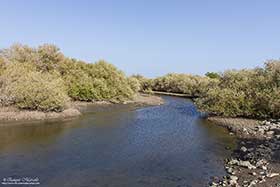Este fue un día apasionante en cuanto a fotografía se refiere, muchas especies interesantes fotografiadas, y también en cuanto a pájaros observados, muchos de ellos bimbos para mí, como por ejemplo, Alción acollarado (Todirhamphus chloris) o Garcilla india (Ardeola grayii). La mañana empezaba muy pronto, en la puerta de las Sun farms, donde habíamos quedado con el ornitólogo inglés John Atkins. John vive en Omán desde hace algunos años y es un gran conocedor de toda su avifauna. A la hora acordada estábamos en la puerta y allí estaba esperándonos, ya que había hecho la gestión para que nos dejaran entrar. Las Sun farms son unas granjas de producción de ganado que dejaron de funcionar oficialmente en noviembre del 2012. Se dice de ellas que eran uno de los mejores lugares, si no el mejor, para observación de aves interesantes en todo Omán, pero la falta de actividad en sus campos han hecho que decline muchísimo, tanto el número de ejemplares, como la cantidad de especies allí. Aún así, a nosotros nos gustó y vimos un montón de pájaros que hicieron las delicias de todo el grupo. No quiero ni pensar, como sería aquello cuando la granja estaba a tope de actividad. Empezamos recorriendo en coche varias zonas de la las grandes granjas, como las charcas, totalmente secas, o la colonia de Abejaruco esmeralda árabe (Merops cyanophrys sp. cyanophrys) al norte del lugar. En estas zonas, aunque con pocos pájaros, logramos ver Pico de plata indio (Lonchura malabarica), Suimanga asiático (Cinnyris asiaticus), Collalba isabel (Oenanthe isabellina), Collalba afgana (Oenanthe chrysopygia), Collalba desértica (Oenanthe deserti), Francolín gris (Francolinus pondicerianus), etc. Después nos dirigimos a la zona que John nos había indicado como el "área de las alondras", donde pudimos ver y fotografiar Terrera negrita (Eremopterix nigriceps), Terrera común (Calandrella brachydactyla), Cogujada común (Galerida cristata), pero sin duda, lo que más ilusión nos hizo fueron las Calandrias bimaculadas (Melanocorypha bimaculata). Una vez que nos íbamos, descubrimos un pequeño charco alimentado por la toma de agua de un riego que estaban utilizando unos obreros para llenar un camión cisterna para la construcción de una mega-mezquita cercana. Khatmat Milalah fue el primero de los tres en visitar. Se trata de una zona muy árida, aunque alimentada por aguas subterráneas que provienen de las montañas cercanas, con grandes árboles, llamados Proposis cineraria, una especie de algarrobo. Dicha área es el lugar de invernada de un pequeño pájaro llamado Mosquitero sencillo (Phylloscopus neglectus), que aunque no muy vistoso, era nuestro objetivo principal allí. Al principio se nos resistió y no lográbamos localizarle, pero algo más tarde logramos ver hasta 3 ejemplares. Otros allí fueron, Miná común (Acridotheres tristis), Tordino arábigo (Turdoides squamiceps), Collalba afgana (Oenanthe chrysopygia), Collalba desértica (Oenanthe deserti), Curruca mirlona oriental (Sylvia crassirostris), Curruca de Menetries (Sylvia mystacea), Curruca chica (Desert whitethroat), etc. De allí nos fuimos a Shinas donde llevábamos otro objetivo claro, el Alción acollarado (Todirhamphus chloris). Después de un buen rato buscándolo, solamente fui yo quien vio uno pasar volando a todo gas y poco más, con lo cual, decidimos ir a Liwa para pasar allí el resto de la jornada. Liwa es un buen sitio para recorrerlo tranquilamente por una senda con la playa a un lado y la zona de manglar al otro. Este último lugar es donde se debe buscar al Alción acollarado (Todirhamphus chloris). De nuevo pude ver otro allí pasando volando rápidamente, como en Shinas, pero al poco tiempo pudimos localizar posado a un ejemplar y algo más tarde a otro más, los cuales les pudimos tomar varias fotos. Allí también pudimos disfrutar de Bulbul orejiblanco (Pycnonotus leucotis), Mosquitero común de la sp. abietinus (Phylloscopus collybita abietinus), Alcaudón isabel (Lanius isabellinus phoenicuroides), Garcilla india (Ardeola grayii), etc. Terminado el día volvimos a nuestro hotel Al Multaqa en Sohar. |