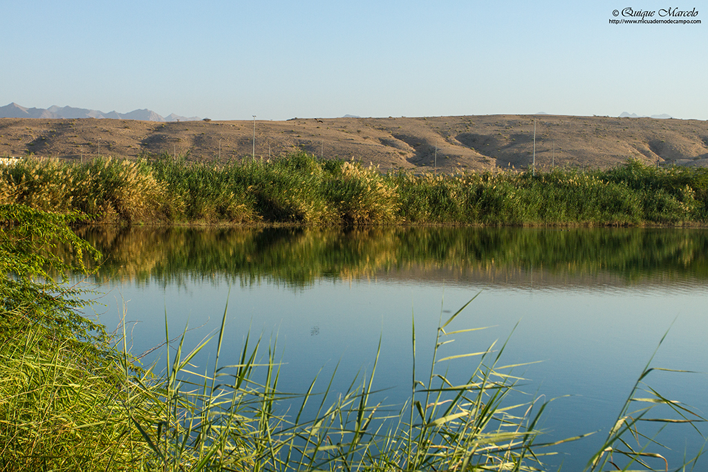 Empezamos el día de nuevo en las Sun Farms, aquellas granjas que nos habían dejado tan buen sabor de boca el día anterior. Al llegar nos abríó la valla muy amablemente el personal pakistaní que cuidaba la finca y rápidamente nos dirigimos a aquel punto de agua que habíamos descubierto en el corazón de las granjas. En esta jornada no nos había acompañado Santi, que se quedó en el hotel, con lo cual, Guille, Manolo y un servidor hicimos de nuestro coche un hide tapándolo con telas de camuflaje y lo colocamos muy cerca de aquel charco. La verdad que fue espectacular las 3-4 horas que pasamos allí en el "hide-car", Francolín gris (Francolinus pondicerianus) por todos lados, Alondra común (Alauda arvensis), Terrera común (Calandrella brachydactyla), Terrera negrita (Eremopterix nigriceps), Cogujada común (Galerida cristata), Calandria bimaculada (Melanocorypha bimaculata), Tortolita rabilarga (Oena capensis), Tórtola senegalesa (Streptopelia senegalensis), Alcaudón isabel (Lanius isabellinus), Pico de plata indio (Lonchura malabarica), Gorrión común (Passer domesticus sp. indicus), Cotorra de Kramer (Psittacula krameri), Tórtola turca (Streptopelia decaocto), Miná común (Acridotheres tristis), etc., y todos ellos a muy corta distancia. Sinceramente fue una muy buena sesión fotográfica. Terminamos allí sobre las 10:45, justo en el momento que se acercó el camión cisterna que venía a llenar su depósito para proveer de agua la obra de la super-mezquita cercana. Fuimos al hotel a recoger a Santi y las maletas y emprendimos viaje hacia Muscat, ya que, habíamos quedado a las 15:30 con Manal en las puertas de Al Ansab Lagoons. Manal es una chica que guía a birdwatchers en el interior del parque y es muy buena conocedora de las especies que allí se dan. Durante las 2 horas que permanecimos allí, apuntamos casi todas los especies de patos que se pueden dar en Omán, y que hasta entonces, no habíamos logrado ver ni uno de ellos, aunque la especie más interesante, al menos para mí, fue el Porrón pardo (Aythya nyroca). Otras especies que también pudimos ver allí fueron, Lavandera cetrina (Motacilla citreola), Cormorán grande (Phalacrocorax carbo), Garcilla india (Ardeola grayii), Garceta dimorfa (Egretta gularis), Garceta intermedia (Egretta intermedia), Carricero estentóreo (Acrocephalus stentoreus), Suimanga asiático (Cinnyris asiaticus), Buitrón elegante (Prinia gracilis), Águila moteada (Aquila clanga), etc. Terminamos allí a las 17:45 y solamente nos quedó tiempo para ir al aeropuerto, dejar el coche y coger el vuelo interior que nos llevaría a Salalah. Nada más llegar a Salalah, recogimos nuestro nuevo coche de alquiler, un Nissan Altima, y muy cansados nos dirigimos a nuestro hotel Al Nile. |