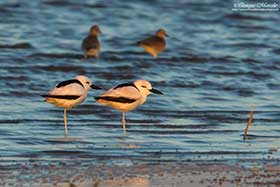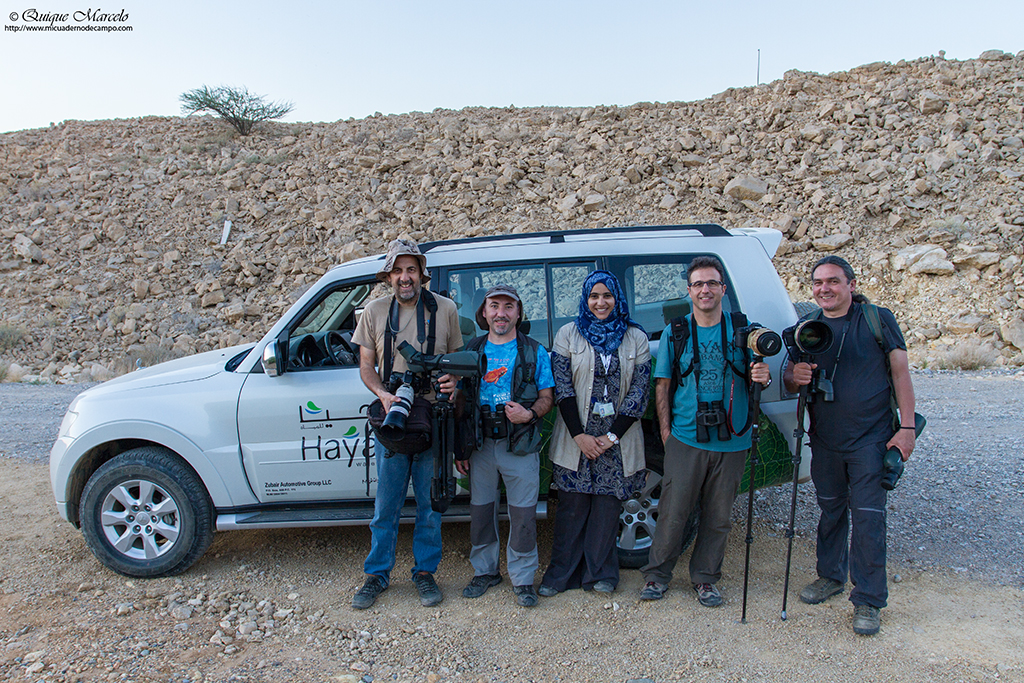 Nuestro vuelo salió el 29 de enero sobre las 15:20 horas, casi en hora. Llegamos a Doha (Qatar) sobre las 23:30 (hora qatarí, 2 horas más que en España). Embarcamos de nuevo en otro avión de la compañía Oman air a la 1:25, ya del día 30, llegando nuestro vuelo a las 3:30 (hora omaní, 3 horas más que en España). Después de pasar los trámites pertinentes de control policial, consecución del visado (15 € X 10 días), etc., nos dirigimos a la oficina de cambio de moneda para a continuación retirar los coches en Europcar, donde teníamos alquilado un Suzuki Kizashi. Todos estos trámites nos llevaron un buen rato, saliendo del aeropuerto sobre las 5:30 de la mañana hacia nuestro primer destino, Al Qurm Natural park, un impresionante lugar con lagunas y vegetación palustre, aunque solamente lo pudimos ver desde fuera de la valla, ya que, era viernes y en los países musulmanes es fiesta y el parque no se abre esos días, con lo cual, decidimos ir fichando nuestros primeros bimbos desde el exterior. No defraudó para nada el parque, Chorlito dorado siberiano (Pluvialis fulva), Chorlitejo mongol grande (Charadrius leschenaultii), Chorlitejo mongol chico (Charadrius mongolus), Garcita verdosa (Butorides striata), Francolín gris (Francolinus pondicerianus), Alcaudón isabel (Lanius isabellinus), etc. Todas estas especies las vimos dentro del parque, porque en la playa aledaña vimos Charrán patinegro (Sterna sandvicensis), Charrán piquigüaldo (Sterna bergii), Charrán bengalí (Sterna bengalensis), Gaviota cejiblanca (Larus hemprichii), Gaviota picofina (Chroicocephalus genei),Gaviota de estepa (Larus fuscus sp. barabensis), Gaviota de Heuglin (Larus fuscus heuglini), etc. Lo curioso del lugar es que ese día había un maratón, por consiguiente, a medida que avanzaba la mañana había gente por todos lados y los pájaros estaban a sus anchas. Desde allí nos fuimos a un lugar marcado en el libro "Birdwatching to Oman" llamado Al Amrat waste disposal, un basurero cercano a la gran ciudad, que como todos los basureros de Omán, se suele llenar de águilas, pero había tantos trabajadores por allí que decidimos irnos, además nos estuvieron diciendo que allí ya no había águilas. Seguimos el viaje en dirección este por la costa, hasta llegar a un pueblo cercano llamado Yiti con la intención de ver la Collalba de Hume (Oenanthe albonigra), que no tuvimos la suerte de ver en las inmediaciones del pueblo, pero que logramos ver encima de una señal de tráfico a pocos kilómetros de allí. Otras exquisiteces que vimos allí fueron Carraca india (Coracias benghalensis), Suimanga asiático (Cinnyris asiaticus), otro Alcaudón isabel (Lanius isabellinus), Perdiz árabe (Alectoris melanocephala), Miná común (Acridotheres tristis), etc. Con mucha hambre al mediodía y mucho sueño, apenas habíamos dormido nada en las últimas 24 horas, decidimos sobre las 12:00 irnos de allí y seguir nuestro camino hasta el Khawr Jirama, en la punta noreste del país. La suerte estaba de nuestro lado, porque al poco tiempo de abandonar Yiti, se nos cruzó otra collalba, esta vez se trataba de una Collalba variable (Oenanthe picata picata), que nos tuvo entretenidos un buen rato tomándola fotos durante la siguiente media hora. Hicimos una parada en un restaurante para comer, por cierto un arroz con pollo que picaba como rayos, y seguimos la marcha hasta llegar al Khawr Jirama, un lugar impresionante y grandísimo. Habíamos viajado hasta allí con la única intención de buscar un pájaro muy singular, a medio camino entre una garza y un limícola grande, llamado Droma (Dromas ardeola) y sobre todo porque era el lugar de Omán más cercano en nuestra ruta donde podríamos encontrar con alguna garantía a esta ave. Nada más llegar vimos Gavión cabecinegro (Larus ichthyaetus), Chorlitejo mongol grande (Charadrius leschenaultii), Chorlitejo mongol chico (Charadrius mongolus), Gaviota cejiblanca (Larus hemprichii), Gaviota de Heuglin (Larus fuscus heuglini), estas dos últimas muy abundantes durante todo el viaje, Gaviota de estepa (Larus fuscus sp. barabensis), Charrán patinegro (Sterna sandvicensis) y piquigüaldo (Sterna bergii), pero sin noticias del Droma (Dromas ardeola), por lo que decidimos irnos con el coche a la punta más oriental del khawr, lugar donde pudimos encontrar unos 15 ejemplares a los que pudimos ver y fotografiar durante algunos minutos. Con la tarea hecha y ya acabado prácticamente el día nos fuimos al hotel Sur, sito en la ciudad con el mismo nombre y que distaba unos 30 km de nuestra posición, para descansar, descargar fotos, cenar y por fin dormir. |