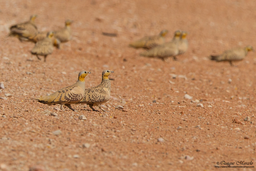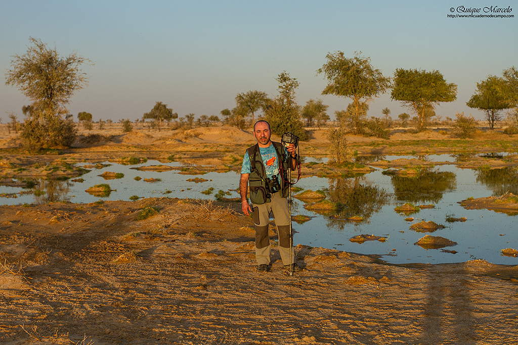 Empezamos el día algo más tarde de lo habitual, saliendo a las 6:15 de la mañana del Hotel Al Nile, donde nos recibió en la puerta un Estornino de Tristram (Onychognathus tristramii) encima de una farola. En este día teníamos que llegar a Qatbit, un motel en medio del desierto central de Omán con dos oasis cercanos, uno con el mismo nombre del motel y el otro llamado Muntasar, pero antes, no queríamos pasar la oportunidad de parar en el basurero de Thumrait para darnos un atracón de águilas. Los basureros, aunque no son sitios para nada idílicos, son grandes puntos de concentración de las tres grandes águilas que invernan en Omán, el Águila moteada (Aquila clanga), el Águila imperial oriental (Aquila heliaca) y sobre todo, el Águila esteparia (Aquila nipalensis). Además de las tres águilas anteriormente mencionadas, también pudimos ver Alcaudón real de la subespecie Aucheri (Lanius meridionalis aucheri), Collalba desértica (Oenanthe deserti), Collalba monjina (Oenanthe monacha), Collalba afgana (Oenanthe chrysopygia), Perdiz desértica (Ammoperdix heyi), etc., y un gato de buen porte que después de ser consultado con varias guías de mamíferos resultó ser un Gato montés de la subespecie iraki (Felis silvestris iraki), en el cual se diferencia de nuestros gatos monteses europeos por ser mucho más pálidos, como no podía ser de otra manera al vivir en lugares muy desérticos. Llenos de polvo terminamos dando vueltas por ese secarral que era aquel vertedero de Thumrait, así que, después de un buen rato seguimos camino hacia Qatbit, encontrándonos en varias ocasiones al borde de la carretera varias decenas de Ganga moteada (Pterocles senegallus) y alguna Ganga coronada (Pterocles coronatus). Paramos el coche delante de aquellos buenos grupos de gangas y les pudimos hacer alguna foto, aunque muy lejos. Sobre las 13:00 horas llegamos al motel Qatbit. Después de dejar la maleta en nuestra habitación fuimos a comer al restaurante que hay allí mismo, para seguidamente salir a visitar todos los campos aledaños al motel y la gasolinera cercana. Logramos ver un Papamoscas papirrojo (Ficedula parva), Mosquitero común de la subespecie Tristis (Phylloscopus collybita tristis), Mosquitero musical (Phylloscopus trochilus), Collalba desértica (Oenanthe deserti) y un precioso e inquieto Mosquitero de Hume (Phylloscopus humei), aunque no hubo noticias del más buscado del lugar, el Hipocolio (Hypocolius ampelinus). Decidimos entonces ir al oasis que hay a unos 3 km del motel, donde al llegar nos estaba esperando una Curruca desertícola (Sylvia nana) y una hembra de Suimanga del Nilo (Anthodiaeta metallica). Poco más pudimos ver por allí, a excepción de numerosas Tórtolas senegalesas (Streptopelia senegalensis). De allí y con la tarde casi terminada fuimos al oasis de Muntasar, donde llegamos muy tarde y con muy poco tiempo de luz, pero aún así, pudimos ver varias Agachadizas comunes (Gallinago gallinago), Ánade azulón (Anas platyrhynchos), una Garceta común (Egretta garzetta), Cuervo desertícola (Corvus ruficollis), más Tórtolas senegalesas (Streptopelia senegalensis), etc. Desde allí volvimos al motel donde cenamos, ducha rápida, descarga de fotos y a dormir. |