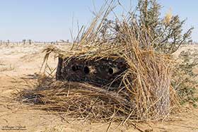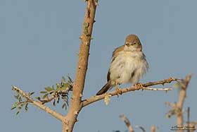 Este día nos dimos un madrugón de aúpa, ya que, queríamos montar un hide en Muntasar, en una zona donde el día anterior habíamos visto un montón de huellas donde entraban a beber las gangas. El material empleado para la construcción del hide consistió en 3 bloques de hormigón y una tabla para hacer de asiento, más 4 listones para apoyar las redes de camuflaje y unas cuantas cañas que había allí caídas para mimetizarlo. Todo este material lo cogimos de la parte de atrás del motel Qatbit, ya que estaba amontonado como si fuera los desechos de una antigua obra. La verdad es que quedó muy bien, pudimos fotografiar a muy poca distancia Collalba desértica (Oenanthe deserti) y Curruca desertícola (Sylvia nana). Incluso esta última se nos llegó a posar en lo alto del hide. Fue toda una experiencia, ir al desierto y montar un hide allí, aunque mucho mejor hubiera quedado todo si las gangas hubieran entrado donde nosotros pensamos en un principio, que llegaran a las playitas que habíamos visto llenas de huellas el día anterior y que teníamos a escasos 5 metros de nuestras narices. Solamente llegaron dos grupos de Ganga moteada (Pterocles senegallus) de unos 25 individuos cada uno, pero se posaron como a 200 metros de nosotros. Andaban de un lado a otro, siempre sin aproximarse mucho, hasta que de repente todas volaron posándose directamente en el agua, lejos de nosotros, y en 5 segundos volaron para no volver más, una pena. Al menos lo intentamos, aunque al final no obtuviéramos los resultados esperados, con lo cual, recogimos el hide, dejamos todo como en un principio y nos fuimos, no sin antes tener un pequeño percance, nuestro coche se nos quedó estancado en un banco de arena y nos llevó unos 40 minutos sacarlo de allí. Sobre las 12:00 llegamos de nuevo al motel Qatbit, donde dejamos todo ese material de la construcción del hide que habíamos cogido la noche anterior, para recoger las maletas, para tomar una coca-cola y sin perder tiempo, emprender el viaje. Nuestro siguiente destino estaba a 280 km. del motel, a una población muy cercana a la frontera de Yemen, llamada Mudayy. El motivo de ir a ese lugar, que en un principio nunca pensamos en ir, ni siquiera lo habíamos oído nombrar, es porque el día anterior una pareja de birdwatchers, él americano, ella canadiense, nos habían asegurado que allí veríamos con garantías el Hipocolio (Hypocolius ampelinus), pájaro que se nos había escapado el día anterior. También nos comentaron que mientras nosotros habíamos estado en Muntasar ellos habían podido ver allí una solitaria hembra de Hipocolio (Hypocolius ampelinus) y un Estornino rosado (Pastor roseus). Mudayy es un pueblo muy pequeño con varios palmerales dentro del pueblo, lugares donde nos habían dicho que allí lo encontraríamos, pero no había manera de dar con ellos, aunque sí que pudimos ver Tórtola senegalesa (Streptopelia senegalensis), Colinegro común (Cercomela melanura), Mosquitero común, tanto de la subespecie abietanus como tristis y varias Suimangas del Nilo (Anthodiaeta metallica). A lo lejos se veía en las afueras del pueblo más palmeras en dirección Oeste, con lo cual, decidimos dirigirnos hacia allí. Aquel lugar era un verdadero oasis, con palmeras gigantes y un gran charco artificial, donde nada más bajarnos del coche oímos al ansiado Hipocolio (Hypocolius ampelinus) que pudimos ver varios ejemplares y a muy buena distancia. Además vimos Bulbul árabe (Pycnonotus xanthopygos), Tórtola senegalesa (Streptopelia senegalensis) y Suimanga del Nilo (Anthodiaeta metallica). Tarde llegamos a Salalah, donde dormimos de nuevo en el hotel Al Nile. |