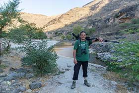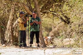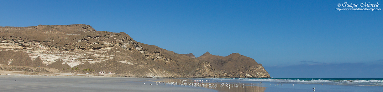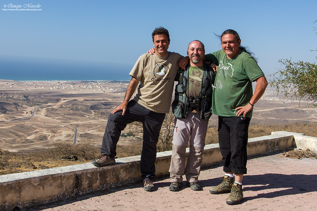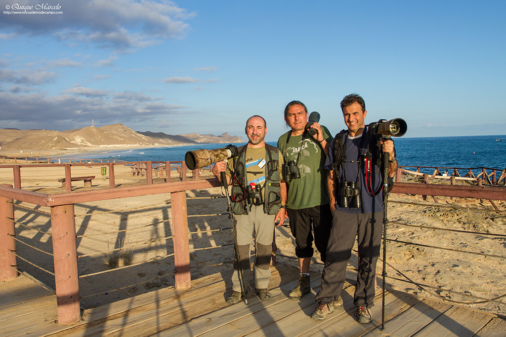 Este día fue uno de los mejores días de pajareo en Omán, a pesar, que se nos escapó el Picogordo árabe (Rhynchostruthus percivali), un ave escasa en Omán y uno de los principales objetivos del día. Empezamos la jornada en Ayn Razat, un parque muy bien mantenido y ubicado en la falda de la montaña que utilizan los omaníes para hacer sus pic-nic. Aunque estaba cerrado fue un buen lugar para bimbar varias aves que se encuentran en la zona sur de Salalah, como el Anteojitos abisinio (Zosterops abyssinicus), Escribano canelo (Emberiza tahapisi), Escribano estriolado (Emberiza striolata), Suimanga palestina (Cinnyris osea), Suimanga brillante (Cinnyris habessinicus), Curruca árabe (Sylvia leucomelaena), Colinegro común (Cercomela melanura), Avión roquero africano (Ptyonoprogne fuligula sp. fuligula), etc. Otros que nos encontramos allí, fueron Andarríos chico (Actitis hypoleucos) en el arroyo que corre por el parque, Bulbul árabe (Pycnonotus xanthopygos), Tórtola senegalesa (Streptopelia senegalensis), etc. Abandonamos aquel bonito parque sobre las 9:00 de la mañana para irnos a otro parque, algo más rústico, pero que de igual manera lo usan los omaníes para sus ágapes, pic-nics o festejos, llamado Ayn Hamran. Este era el lugar donde debíamos buscar al Picogordo árabe (Rhynchostruthus percivali). Después de una larga búsqueda de más de 2 horas, el picogordo no apareció, pero sí que tuvimos contacto con otras especies muy interesantes también y que hicieron las delicias del grupo. Vinago Waalia (Treron waalia), Monarca colilargo africano (Terpsiphone viridis), Chagra de Senegal (Tchagra senegalus), Alcaudón núbico (Lanius nubicus) y Pico de plata africano (Lonchura cantans) entre otros, fueron especies que pudimos encontrar allí. En estos dos parques anteriormente mencionados, se puede ver a la majestuosa Águila cafre (Aquila verreauxii), ya que al estar en las faldas de grandes montañas, ésta siempre anda patrullando las laderas buscando presas, pero por más que miré al cielo no hubo manera de localizarla. Eran las 12:45 h. cuando decidimos irnos, con la pena que te vas de un lugar que es el único sitio que se encuentra un pájaro que no vas a poder ver en ningún otro lugar, el Picogordo árabe (Rhynchostruthus percivali), pero hacía calor, sed y también mucha hambre. Después de estar relajados un buen rato en un restaurante comiendo e hidratándonos, salimos sobre las 14:30 en busca de más pájaros. Para la tarde habíamos dejado dos Khawrs (lagunas costeras). El primero fue toda una decepción, el Khawr Sawli. Era una laguna costera que la recorrimos alrededor de todo su perímetro y que solamente pudimos ver Garceta común (Egretta garzetta), Garceta dimorfa (Egretta gularis), una lejana Águila pescadora (Pandion haliaetus) y quizás lo mejor fue un par de Avefrías coliblancas (Vanellus leucurus). De allí fuimos al Khawr Taqah para terminar el día. El Khawr Taqah sí que nos pareció un lugar alucinante que en poco más de 2 horas y media pudimos ver Espátula común (Platalea leucorodia), Garza imperial (Ardea purpurea), Garza real (Ardea cinerea), Aguilucho lagunero occidental (Circus aeruginosus), más las exquisiteces de la zona, Lavandera cetrina (Motacilla citreola), Garceta intermedia (Egretta intermedia), Gaviota de Heuglin (Larus fuscus heuglini), Chorlito dorado siberiano (Pluvialis fulva), Jacana colilarga (Hydrophasianus chirurgus) y para terminar llegó la sorpresa del día. Pudimos localizar en la playa aledaña dos preciosos ejemplares de Rayador africano (Rhynchops flavirostris) mezclados entre una multitud de gaviotas. Fue un buen broche para terminar el día. |