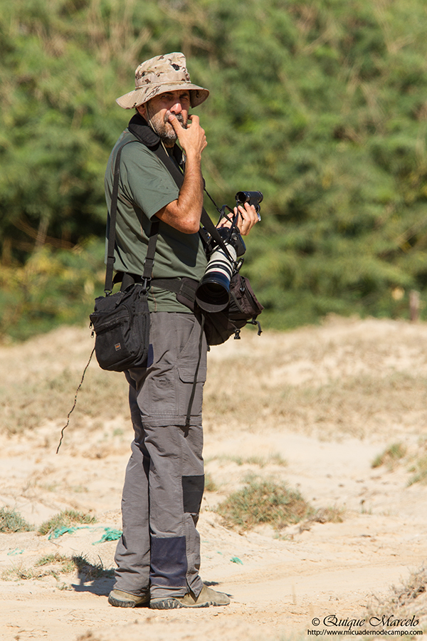 Aquí empezaban nuestros últimos 4 días en el sur de Omán, en la región de Dhofar en Salalah. Este primer día fuimos a las dos granjas que estaban cerca de nuestro hotel, Jarziz y Sahnawt. En Jarziz nos dejaron entrar muy amablemente operarios de la granja y la verdad, no nos defraudó. Allí nos recibieron un coro de Alondras cantarinas (Mirafra cantillans) y Carriceros estentóreos (Acrocephalus stentoreus). También pudimos ver Ruiseñor pechiazul (Luscinia svecica), Golondrina común (Hirundo rustica), Avión roquero africano (Ptyonoprogne fuligula sp. fuligula), Lavandera cetrina (Motacilla citreola), Águila imperial oriental (Aquila heliaca), Tejedor de Ruppell (Ploceus galbula), Colinegro común (Cercomela melanura), Cotorra de Kramer (Psittacula krameri), Alcaudón isabel (Lanius isabellinus), Buitrón elegante (Prinia gracilis), Correlimos de Temminck (Calidris temminckii) en un charco que se había formado por una rotura en una cañería, , etc. De allí nos fuimos a la otra granja, Sahnawt, que ya sabíamos por otros compañeros que estuvieron el año pasado que no nos iban a permitir la entrada, pero una vuelta por los alrededores del lugar nos permitieron unas estupendas vistas de Abejaruco esmeralda árabe (Merops cyanophrys sp. cyanophrys), Buitrón elegante (Prinia gracilis), Águila imperial oriental (Aquila heliaca) y alguna Alondra cantarina (Mirafra cantillans) volando y reclamando por encima de nuestras cabezas. Nuestro siguiente destino nos llevó al basurero de Raysut, donde después de convencer a los guardas de la puerta logramos pasar, aunque nos costó bastante. Aviso a navegantes, cuando íbamos a salir nos paró una persona en un todoterreno y nos dijo que allí no se podía estar sin permiso bajo ningún concepto, con lo cual, si viajas a Omán y tienes pensado visitar el basurero de Raysut pide permiso antes. Siento no poder anotar aquí la dirección que nos dieron para pedir el permiso porque perdimos el papel. La verdad que es un lugar excelente para ver águilas a muy poca distancia. Allí vimos cientos de ejemplares de Águila esteparia (Aquila nipalensis), sin duda la más común, con alguna Águila imperial oriental (Aquila heliaca) y Águila moteada (Aquila clanga), pero estas dos muy escasas. También en unas balsas cercanas buscamos a la Cigüeña de Abdim (Ciconia abdimii), pero estaban sin apenas agua y fue imposible dar con ellas. Más tarde paramos en un restaurante de carretera para comer rápidamente y emprendimos el viaje hacia Al Mughsayl, una playa con un promontorio donde se pueden ver cetáceos y aves marinas, además de un Khawr (laguna costera). En el Khawr pudimos ver Ánade rabudo (Anas acuta), Garceta intermedia (Egretta intermedia), Garza real (Ardea cinerea), Morito común (Plegadis falcinellus), Archibebe claro (Tringa nebularia), Ánade azulón (Anas platyrhynchos), Combatiente (Philomachos pugnax)), etc. Manolo quiso quedarse en esa laguna, mientras Santi, Guille y un servidor nos fuimos a aquel promontorio con pasarelas en Al Mughsayl. Desde allí, por más que chequeé el mar, nada me llamó la atención a excepción de algún Charrán piquigüaldo (Sterna bergii), Charrán bengalí (Sterna bengalensis), Gaviota cejiblanca (Larus hemprichii), o alguna Gaviota de Heuglin (Larus fuscus heuglini), además de un par de Estorninos de Tristram (Onychognathus tristramii) en los arbustos cercanos. Es verdad que sí que pudimos ver los saltos y filigranas de un grupo de delfines, posiblemente la especie común en aquellos mares de Delfín jorobado (Sousa chinensis). Con la caída de la tarde emprendimos viaje de vuelta a nuestro hotel Al Nile en Salalah. |