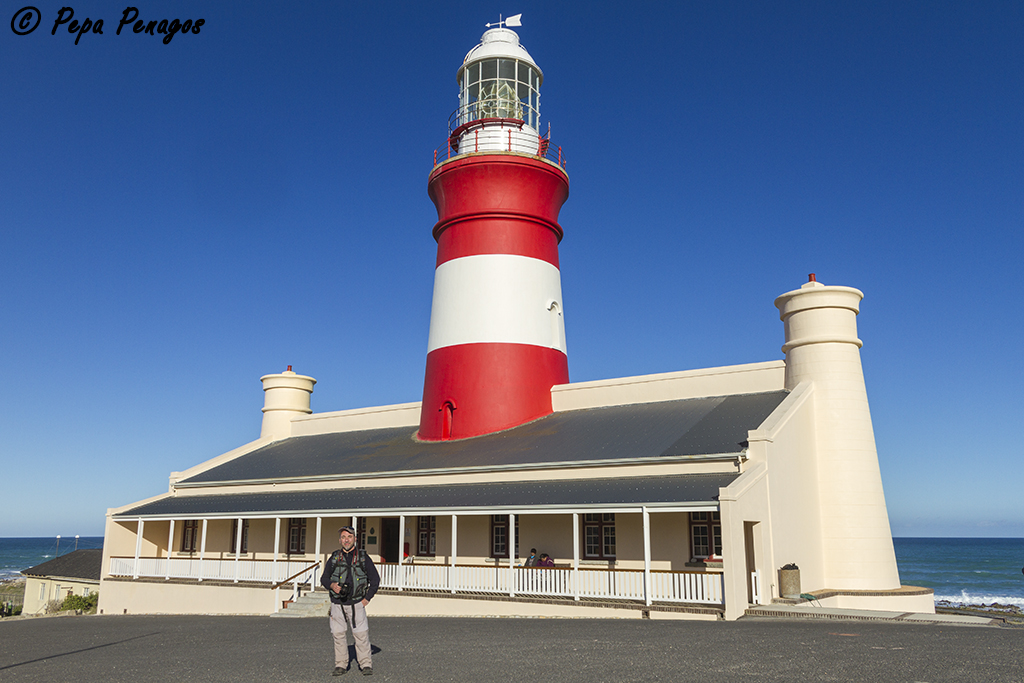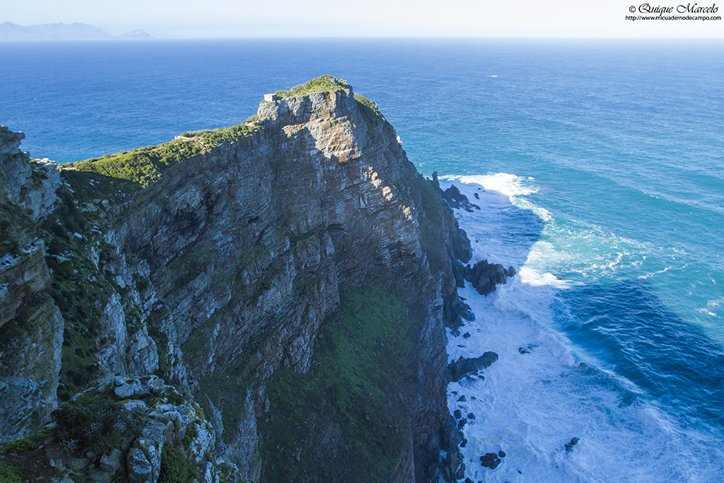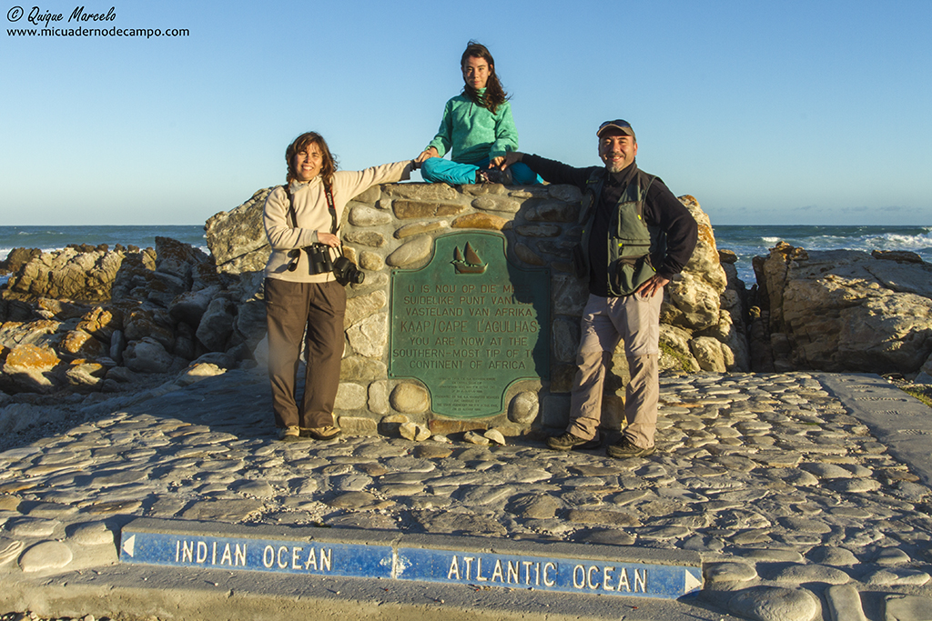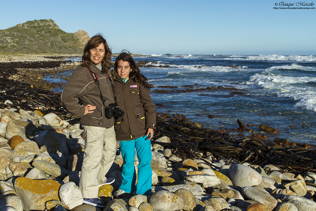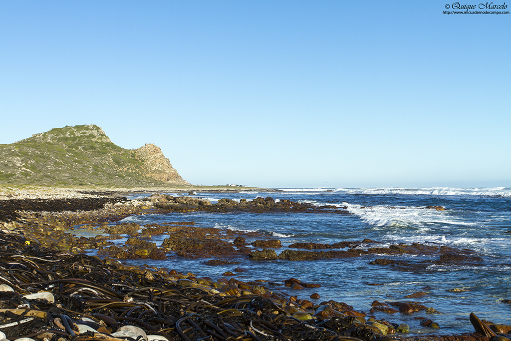 Amaneció a las 7:15 horas, pero mientras nos preparamos y tomamos unas cuantas fotografías desde la terraza de la casa, eran prácticamente las 09:00 de la mañana cuando salimos. Entre las aves vistas desde esa terraza puedo destacar Zorzal oliváceo (Turdus olivaceus), Ojiblanco pálido (Zosterops capensis), Estornino pinto (Sturnus vulgaris), etc. Desayunamos en el mismo restaurante que cenamos la noche anterior, Olimpia, un desayuno que me rio yo de algún plato combinado que te venden por ahí para almorzar. Una vez terminado nuestro desayuno tomamos algunas fotos a algún ejemplar de Cormorán de El Cabo (Phalacrocorax capensis) y a una Garza cabecinegra (Ardea melanocephala) que se encontraban en el puerto que se situaba enfrente del restaurante. El primer lugar que visitamos fue Boulders beach, lugar emblemático donde reside la colonia del endémico Pingüino de El Cabo (Spheniscus demersus). El lugar está muy bien montado, con unas pasarelas que paseas entre los pingüinos hasta llegar a la playa donde descansan cientos de ellos. También en aquella playa pudimos ver Lavandera de El Cabo (Motacilla capensis), Pintada común (Numida meleagris), Ostrero negro africano (Haematopus moquini), Cormorán de El Cabo (Phalacrocorax capensis) y también Damán de El Cabo (Procavia capensis), un mamífero que, aunque tiene un gran parecido a un roedor, es el pariente vivo más cercano al elefante, increíble, pero cierto. Luego visitamos, en este orden, Cape point y el Cabo de Buena esperanza. En el primero subimos hasta unos acantilados en un funicular donde disfrutamos de unas espectaculares vistas, además de una espectacular colonia de Cormorán de El Cabo (Phalacrocorax capensis). Mirando con los prismáticos hacia el mar también pude ver algunos ejemplares de Alcatraz de El Cabo (Morus capensis). Más tarde. descendimos con el funicular y paramos en un pequeño restaurante de comida rápida, donde vendían bocadillos, etc. Allí pudimos comprobar de primera mano cómo los Estorninos alirrojos (Onychognathus morio) se lanzaban sin ningún pudor a picotear tu bocadillo o sándwich. Otros animales vistos allí fueron Escribano de El Cabo (Emberiza capensis) y un simpático Ratón rayado. De camino al cabo de Buena Esperanza pudimos ver dos ejemplares de Avestruz común (Struthio camelus) andando tranquilamente por la orilla de la carretera. Al llegar al cabo de Buena Esperanza, estaba el lugar atestado de gente, con lo cual nos hicimos la foto de rigor en el cartel que dice que te encuentras allí, no sin antes esperar la cola para tomarse la foto y poco más, ya que el tiempo apremiaba. El dichoso tiempo se nos había echado encima y eran más de las 15:00 horas, con lo cual no podíamos perder mucho tiempo si queríamos llegar a Gaansbai, lugar donde íbamos a dormir las siguientes dos noches, con la luz del día. Aun así, llegamos con la noche cerrada. Al llegar a nuestro alojamiento preguntamos por un restaurante para cenar. El propietario de la casa nos dijo que en el restaurante Rosemary íbamos a cenar muy bien y tenía muy buen vino, con lo cual, no dudamos en darnos un buen homenaje a base de carnes, pescados, cervezas y por supuesto, un exquisito vino sudafricano. Al día siguiente, como ya contaré, este homenaje me pasó factura. |