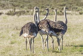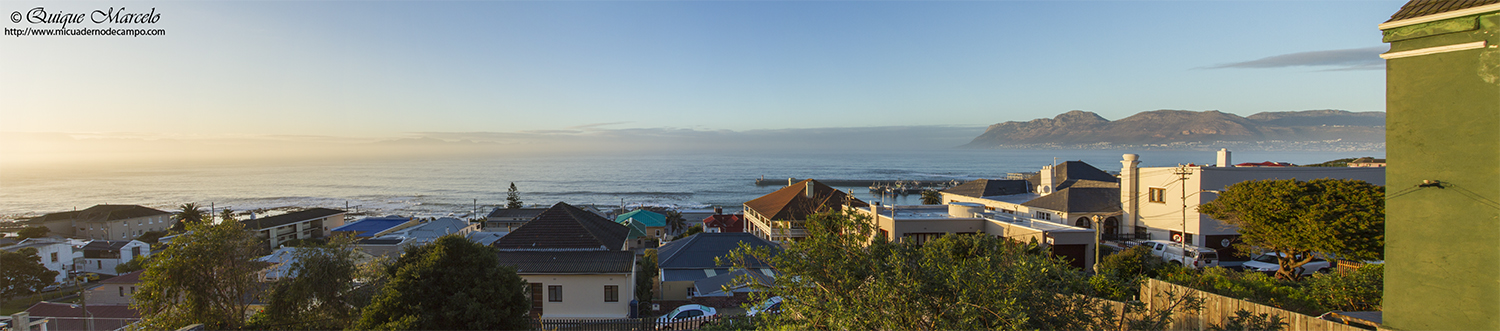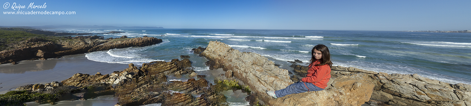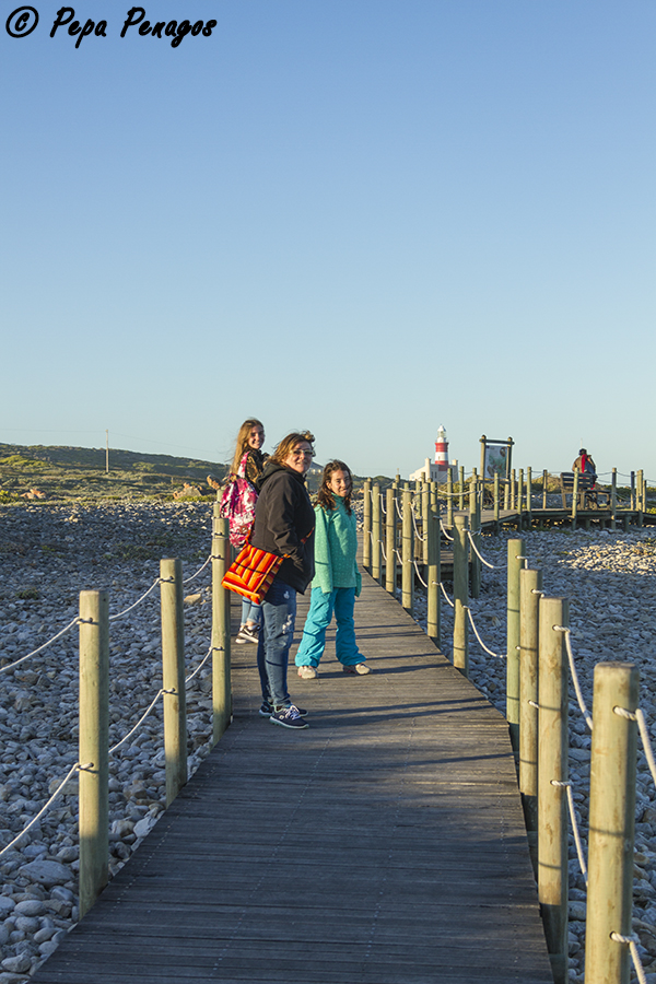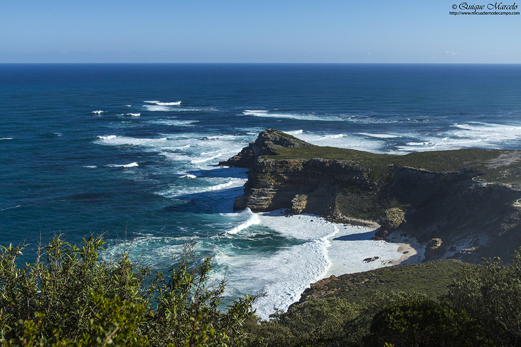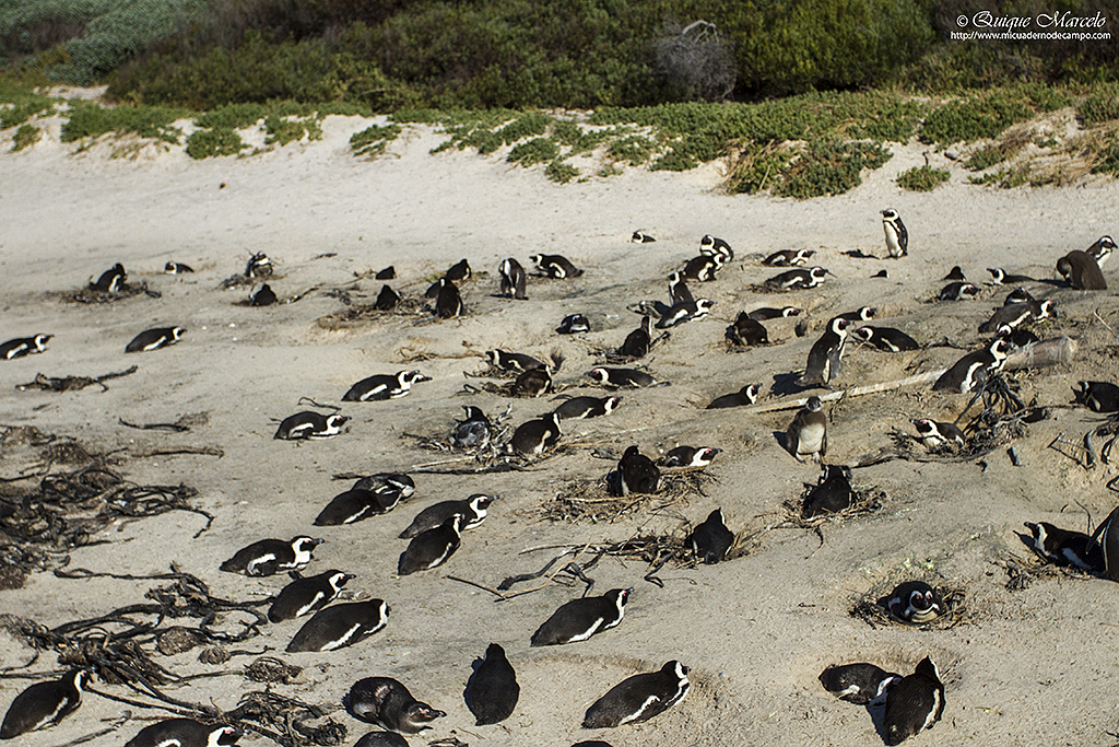 Amaneció a las 7:15 horas, pero mientras nos preparamos y tomamos unas cuantas fotografías desde la terraza de la casa, eran prácticamente las 09:00 de la mañana cuando salimos. Entre las aves vistas desde esa terraza puedo destacar Zorzal oliváceo (Turdus olivaceus), Ojiblanco pálido (Zosterops capensis), Estornino pinto (Sturnus vulgaris), etc. Desayunamos en el mismo restaurante que cenamos la noche anterior, Olimpia, un desayuno que me rio yo de algún plato combinado que te venden por ahí para almorzar. Una vez terminado nuestro desayuno tomamos algunas fotos a algún ejemplar de Cormorán de El Cabo (Phalacrocorax capensis) y a una Garza cabecinegra (Ardea melanocephala) que se encontraban en el puerto que se situaba enfrente del restaurante. El primer lugar que visitamos fue Boulders beach, lugar emblemático donde reside la colonia del endémico Pingüino de El Cabo (Spheniscus demersus). El lugar está muy bien montado, con unas pasarelas que paseas entre los pingüinos hasta llegar a la playa donde descansan cientos de ellos. También en aquella playa pudimos ver Lavandera de El Cabo (Motacilla capensis), Pintada común (Numida meleagris), Ostrero negro africano (Haematopus moquini), Cormorán de El Cabo (Phalacrocorax capensis) y también Damán de El Cabo (Procavia capensis), un mamífero que, aunque tiene un gran parecido a un roedor, es el pariente vivo más cercano al elefante, increíble, pero cierto. Luego visitamos, en este orden, Cape point y el Cabo de Buena esperanza. En el primero subimos hasta unos acantilados en un funicular donde disfrutamos de unas espectaculares vistas, además de una espectacular colonia de Cormorán de El Cabo (Phalacrocorax capensis). Mirando con los prismáticos hacia el mar también pude ver algunos ejemplares de Alcatraz de El Cabo (Morus capensis). Más tarde. descendimos con el funicular y paramos en un pequeño restaurante de comida rápida, donde vendían bocadillos, etc. Allí pudimos comprobar de primera mano cómo los Estorninos alirrojos (Onychognathus morio) se lanzaban sin ningún pudor a picotear tu bocadillo o sándwich. Otros animales vistos allí fueron Escribano de El Cabo (Emberiza capensis) y un simpático Ratón rayado. De camino al cabo de Buena Esperanza pudimos ver dos ejemplares de Avestruz común (Struthio camelus) andando tranquilamente por la orilla de la carretera. Al llegar al cabo de Buena Esperanza, estaba el lugar atestado de gente, con lo cual nos hicimos la foto de rigor en el cartel que dice que te encuentras allí, no sin antes esperar la cola para tomarse la foto y poco más, ya que el tiempo apremiaba. El dichoso tiempo se nos había echado encima y eran más de las 15:00 horas, con lo cual no podíamos perder mucho tiempo si queríamos llegar a Gaansbai, lugar donde íbamos a dormir las siguientes dos noches, con la luz del día. Aun así, llegamos con la noche cerrada. Al llegar a nuestro alojamiento preguntamos por un restaurante para cenar. El propietario de la casa nos dijo que en el restaurante Rosemary íbamos a cenar muy bien y tenía muy buen vino, con lo cual, no dudamos en darnos un buen homenaje a base de carnes, pescados, cervezas y por supuesto, un exquisito vino sudafricano. Al día siguiente, como ya contaré, este homenaje me pasó factura. |