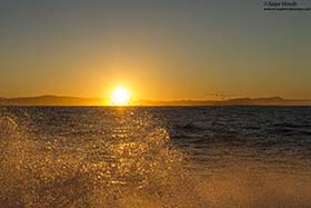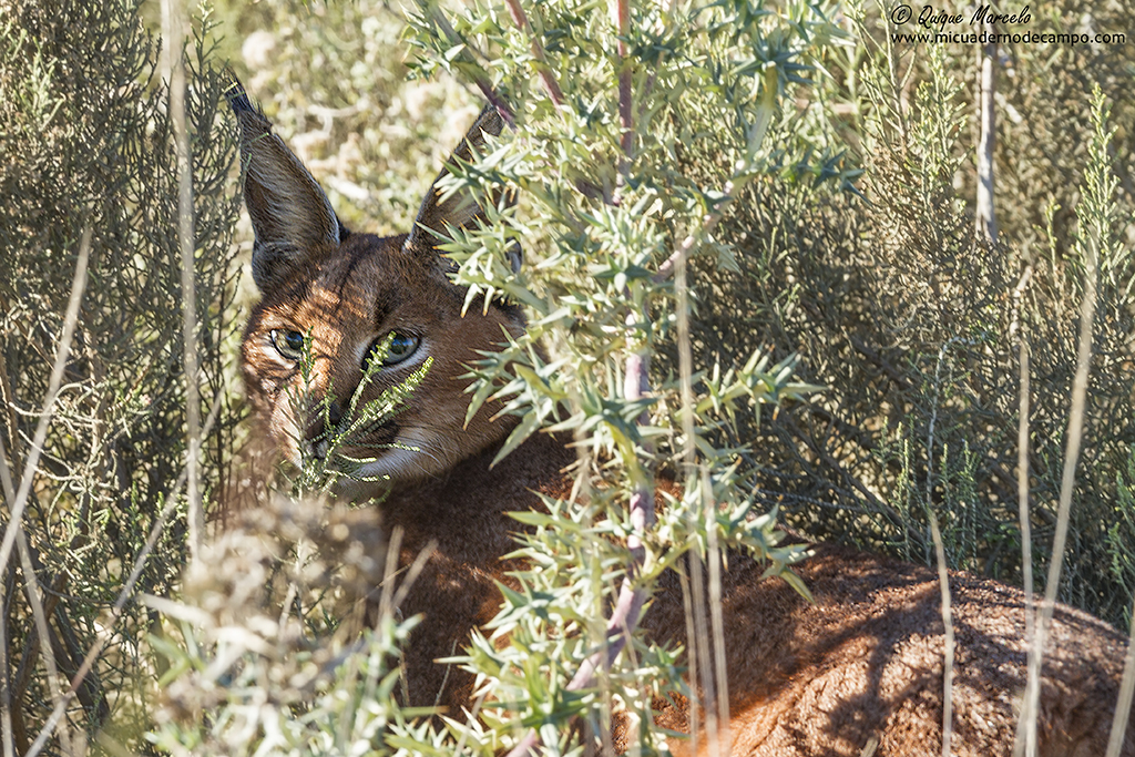 Este día tocaba vivir una experiencia de esas que no se olvidan fácilmente. Desde que planeamos hacer este viaje, tenía en mente llegar a Ciudad de El Cabo, salir con un barco a alta mar e introducirme en una jaula para ver de muy cerca al increíble Tiburón blanco (Carchadoron carcharias). La aventura empezó muy pronto, sobre las 06:00 de la mañana, hora a la que quedamos en las instalaciones de Shark diving unlimited (http://www.sharkdivingunlimited.com), compañía con la que íbamos a hacer nuestro tour. Allí había un buffet para desayunar antes de zarpar a base de café, té, bollería, una especie de empanadillas saladas y dulces y un largo etc. Ya casi amaneciendo, el guía nos dio la charla de rigor con las normas y salimos de allí andando hacia el puerto. En el momento de levantarme de la silla me di cuenta que había hecho todo lo que una persona propensa a marearse tenía que hacer para que un viaje de ese tipo fuera un martirio. Aunque había tomado pastillas anti-mareo, la noche anterior había cenado como si fuera la última noche, había bebido alcohol y por la mañana había desayunado con abundancia, tal y como comentaba anteriormente, todo eso es lo que no te recomiendan hacer si vas a navegar en un barco pequeño, como era el caso. Pues nada, sabiendo el riesgo que corría, zarpamos sobre las 7:00 de la mañana. Al principio todo iba viento en popa a toda vela, con un mar tranquilo y disfrutando del paseo. En el camino hacia donde el barco iba a echar el ancla vimos diferente de aves, como Vencejo de Namibia (Apus bradfieldi), Pardela gorjiblanca (Puffinus carneipes), Gaviota cocinera (Larus dominicanus), Págalo subantártico (Catharacta antarctica), Cormorán de bajío (Phalacrocorax neglectus), etc., éstos últimos atraídos por el chum que iban arrojando la tripulación al mar para atraer a los tiburones. El chum es una masa hecha de pescado machacado y aceite. Una vez parado el barco la tripulación colocó la jaula pegada a uno de los laterales y se podía meter cualquier persona que estuviera a bordo. Sacaron los trajes de neopreno y todo estaba dispuesto para ver al "gran blanco" que no tardó en hacer acto de presencia. La verdad que cuando lo ves tan cerca del barco, impresionan. A todo esto, el vaivén del barco parado empezaba a hacer estragos en mi cuerpo y poco a poco me estaba sintiendo mal, hasta el punto que llegué a vomitar por la borda, pero había llegado casi a la otra parte del mundo para hacer eso, meterme en la jaula, y no iba a dejar la ocasión pasar, con lo cual, me metí y la experiencia fue increíble. La tripulación arrojaba cabezas de atún atadas con una cuerda y los tiburones llegaban y abrían sus tremendas y dentadas bocas delante de tu bigote, simplemente y a pesar de mi mareo, impresionante. Metido en la jaula no me sentía tan mal, pero al salir a cubierta otra vez me pasaba factura los excesos de la noche anterior. A bordo había también una buena oportunidad de fotografía, no solamente a los tiburones, si no también, a todas las aves pelágicas que volaban alrededor del barco, pero me sentía tan mal que no fui capaz de sacar mi cámara de la mochila, una pena. Lo único que pude hacer es un pequeño video con una cámara sumergible en el momento de meterme en la jaula, algo es algo, aquí os dejo este pequeño video, PINCHA AQUI. Sin más, y después de 4 horas volvimos al puerto. Allí descansé durante un tiempo en las instalaciones de Shark diving unlimited y empecé a sentirme mejor. Luego pensaba, "esta aventura sin esa dichosa indisposición habría sido alucinante, y la prueba era ver las caras de alegría que tenían Pepa e Iris. Ellas no se marearon y disfrutaron a tope la experiencia. Yo soy el blandito de la familia, jeje. Volvimos nuestra casa donde esperamos a que llegaran Guille, Nuria y Violeta, ellos no habían ido al tour de los tiburones y con la tarde libre, emprendimos viaje al cabo de Agulhas, el punto más meridional de África. Durante la espera en la puerta de casa, pudimos ver Vencejo de El Cabo (Apus barbatus), Avión roquero africano (Ptyonoprogne fuligula), Bulbul de El Cabo (Pycnonotus capensis), Tórtola senegalesa (Streptopelia senegalensis), Tejedor de El Cabo (Ploceus capensis) y Lavandera de El Cabo (Motacilla capensis). El camino no es muy largo pero se tarda mucho debido a unos 50 km de carretera sin asfaltar que no se si por equivocación o no tomamos para llegar, pero que nos dieron muchas y buenas sorpresas, como un ejemplar de Grulla del paraíso (Anthropoides paradiseus), Avutarda cafre (Neotis denhami), un nutrido grupo de Avestruz común (Struthio camelus), aunque la gran sorpresa del día, fue ver atravesar la carretera como a unos 100 metros de nuestra posición a un precioso Caracal (Felis caracal), que al llegar al lugar donde había cruzado se encontraba tumbado detrás de unos arbustos al borde de la carretera. Aún muy escondido, no se libró de unas cuantas fotos, ¡¡¡Vaya momentazo!!!. También pudimos ver Avefría armada (Vanellus armatus), Flamenco enano (Phoenicopterus minor), Cerceta de El Cabo (Anas capensis), Avoceta común (Recurvirostra avosetta), etc. Llegamos sobre las 15:00 al Cabo de Agulhas donde subimos al faro y nos hicimos la foto en la señal a la orilla del mar que indica que desde ese punto si miras a la izquierda es el océano Índico y a la derecha el océano Atlántico. Allí, por citar alguna especie que pudimos ver; Cormorán de El Cabo (Phalacrocorax capensis), Francolín de El Cabo (Pternistis capensis), Gaviota cocinera (Larus dominicanus), etc. Llegamos a Gaansbai sobre las 17:30, ya de noche. |