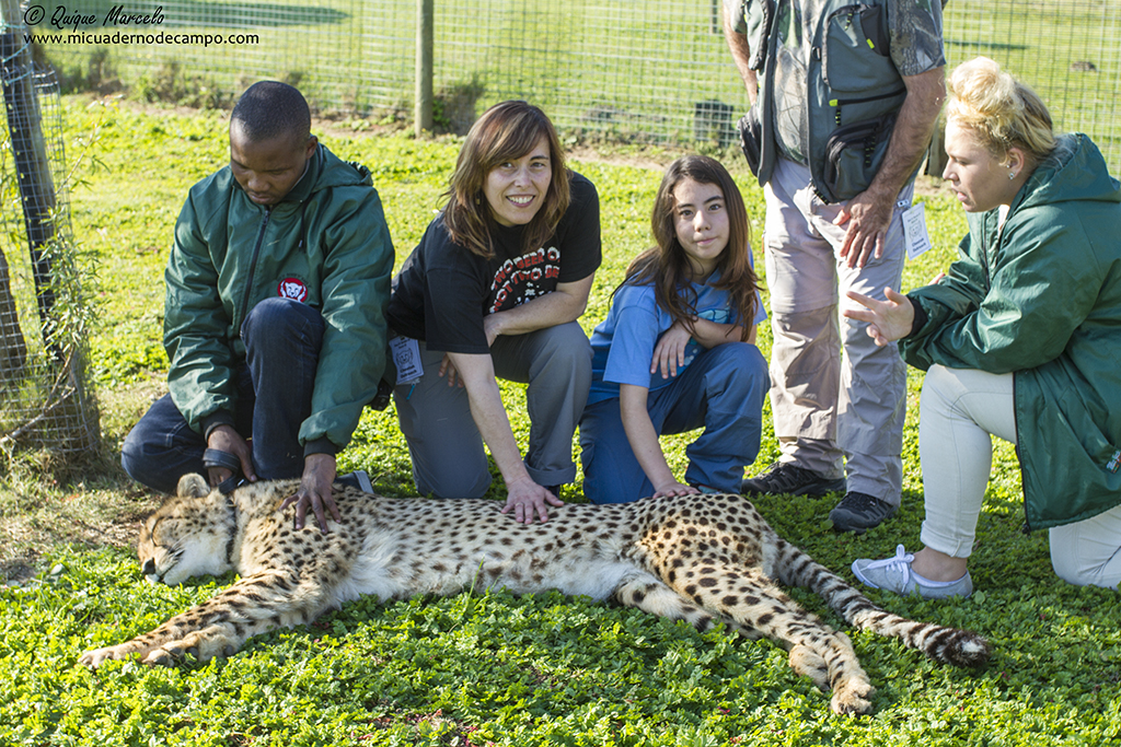 Salimos temprano de nuestro alojamiento en Gaansbai, con la intención de llegar tranquilamente al barrio de Bellville en Ciudad del Cabo a unos 160 Km. Lo primero que hicimos es parar a desayunar en Stanford, en un bar que nos había recomendado la noche anterior el camarero del restaurante Rosemary, donde cenamos. Allí mismo, preguntamos por una bodega, ya que queríamos parar para degustar alguna selección de vinos sudafricanos, los cuales, hablan muy bien de ellos y han adquirido mucha fama en Europa. Fue allá a mediados del siglo XVII cuando se trajeron de Europa esquejes de vid, convencidos que el vino reduciría los casos de escorbuto entre la amplia población marinera. Actualmente la República sudafricana es el noveno productor vinícola del mundo y durante el último siglo han implementado las técnicas de cultivo siguiendo las tendencias internacionales. La bodega elegida para hacer nuestra degustación fue la de Robert Stanford donde probamos seis vinos de muy buena calidad y de los cuales luego compramos alguna botella. A mitad de mañana seguimos nuestro camino llegando a Hermanus. Hermanus es una población en la costa atlántica donde se puede ver ballenas desde la costa. Estuvimos mirando un buen rato sin lograr ver ninguna. Allí había varias personas también intentando localizarlas, pero nos dijeron que principios de julio era cuando empezaban a llegar y era una época difícil para verlas, aunque con suerte se podía empezar a ver las primeras. Aquella zona es un buen lugar de invernada de la enorme Ballena franca austral (Eubalaena australis), las cuales permanecen allí, muy cerca de la costa, hasta octubre, siendo los mejores meses para verlas finales de agosto y septiembre, una pena. De cualquier manera, la parada fue alucinante, con unos paisajes de los que llaman realmente la atención, con calas de fina arena blanca encajonada entre enormes rocas, donde varios Ostreros negros africanos (Haematopus moquini) deambulaban a sus anchas acompañados de algún Cormorán de El Cabo (Phalacrocorax capensis) y varias Gaviotas cocineras (Larus dominicanus). Otros pájaros que pudimos ver fueron el endémico Suimanga acerado (Cinnyris chalybeus), por cierto, una preciosidad de la naturaleza y Bulbul de El Cabo (Pycnonotus capensis). De allí, fuimos a un centro de recuperación de animales, donde tenían Suricato (Suricata suricatta), Zorro orejudo (Otocyon megalotis), Serval (Leptailurus serval), Caracal (Felis caracal), Guepardo (Acinonyx jubatus), etc. La estrella de aquel centro es el Guepardo. En este centro te puedes hacer alguna foto acariciando a este impresionante felino, e Iris con insistencia pidió no dejar pasar esa oportunidad. La verdad que alucinó estando tan cerca de aquel precioso animal. Poco más que contar de este día, ya que, mientras paramos a comer y llegamos a nuestro alojamiento, se echó la noche encima. El lugar elegido para pasar la noche fue Bread and barrel en el barrio de Bellville, muy cerca del aeropuerto, ya que, al día siguiente tocaba madrugar y mucho, porque nuestro vuelo hacia Johanesburgo salía a las 05:45 horas. |