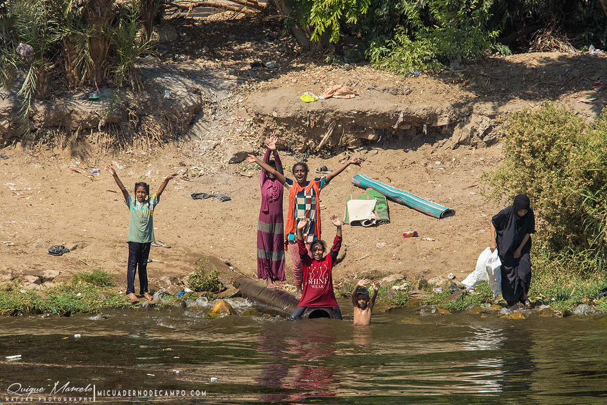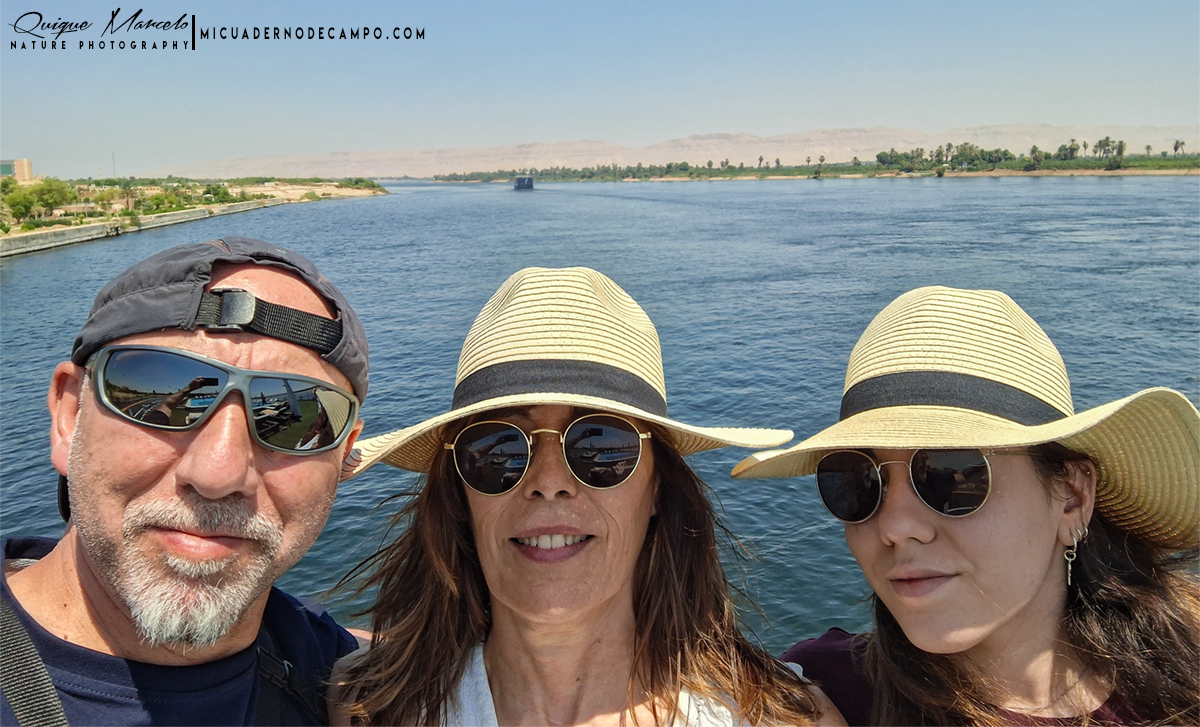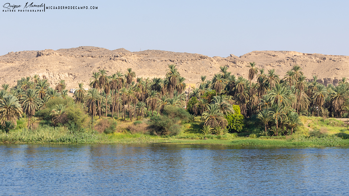 Fue en Aswan donde comenzó de verdad el lado ornitológico. En Abu Simbel, frente a los templos de Ramsés II y Nefertari, las aves se mostraban casi tan omnipresentes como el turista. Primeramente localicé a un Abejaruco esmeralda africano (Merops viridissimus), seguido del Avión isabel norteño (Ptyonoprogne obsoleta) que resultaba especialmente abundante, revoloteando sobre la fachada colosal. En la orilla del lago Nasser aparecieron especies como Paloma bravía (Columba livia), Tórtola senegalesa (Spilopelia senegalensis aegyptiaca), Garcilla bueyera occidental (Ardea ibis), Morito común (Plegadis falcinellus) y Cormorán grande (Phalacrocorax carbo). En el cielo, un Cernícalo vulgar (Falco tinnunculus) y la silueta de varios Milanos negros (Milvus migrans aegyptius) recordaban que Egipto también cuenta con esta subespecie de milano de pico amarillo. Entre las sorpresas más curiosas, la presencia de un grupo de murciélagos, que no pude identificar, en el interior mismo del templo de Ramses II. Estos estaban colgados del techo junto a esos magníficos grabados que lucen estas colosales construcciones. El Nilo, sin embargo, fue el verdadero protagonista. Navegar por sus aguas ofrecía constantemente escenas de vida. Durante el recorrido, las ardeidas se hicieron omnipresentes: Garza real (Ardea cinerea), Garza imperial (Ardea purpurea), Garcilla cangrejera (Ardeola ralloides), Martinete común(Nycticorax nycticorax) y Garcilla bueyera occidental (Ardea ibis) se dejaban ver con facilidad. También llegué a identificar a una Garcilla azulada (Butorides striata) volando hacia el norte sobre la superficie del Nilo y a un buen número de Fumareles aliblancos (Chilidonias leucopterus) en migración siguiendo dirección sur el río. En un momento especialmente emocionante, un Águila pescadora (Pandion haliaetus) sobrevoló el barco siguiendo el curso del río. A sus pies, la abundantísima Gallineta común (Gallinula chloropus) se movía entre la vegetación. |