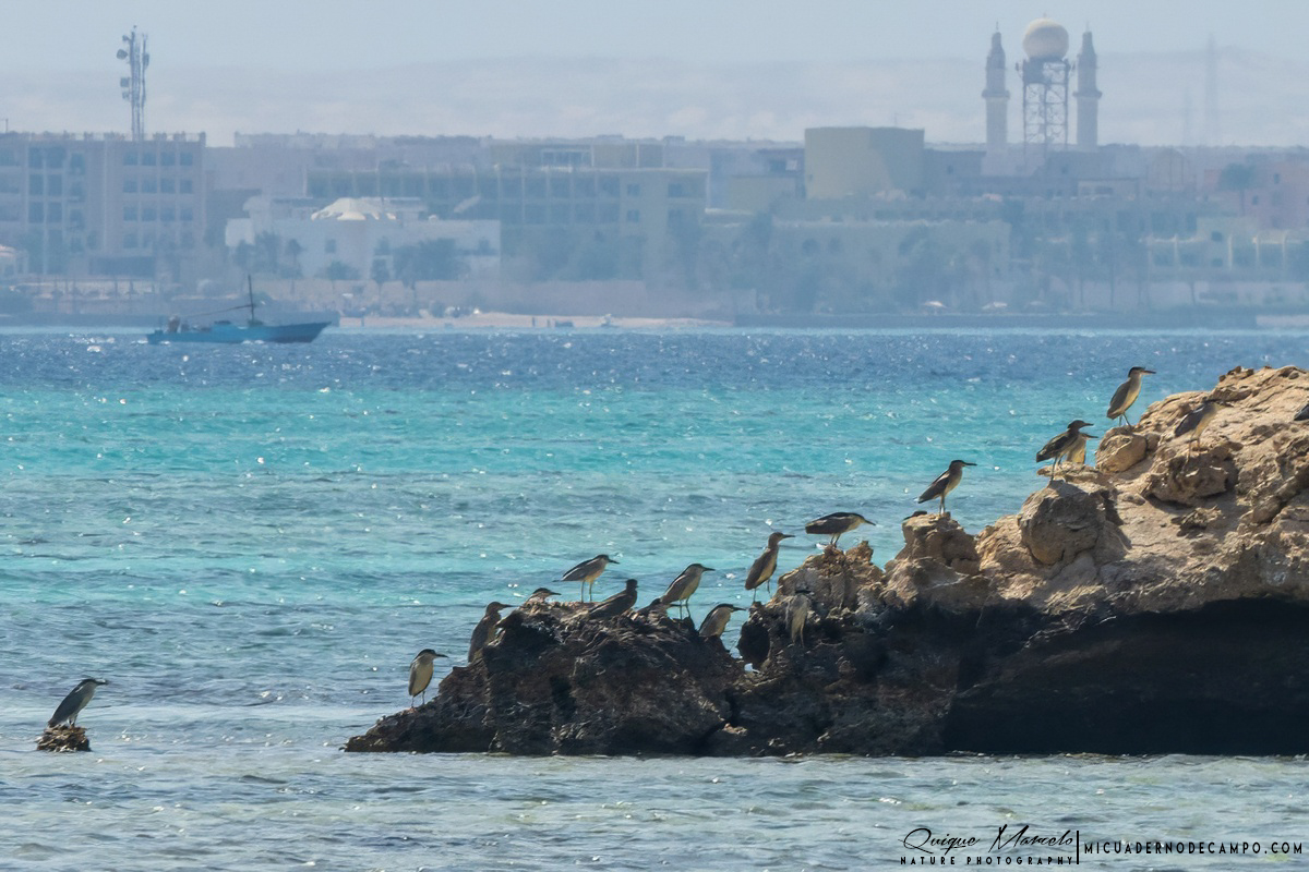 El día más pajarero del crucero fue cuando dejamos atrás los dos impresionantes templos de Kom ombo y Edfú, justo cuando estábamos llegando a Luxor. Esperando con el barco varado en una orilla del Nilo para cruzar la esclusa del Esna, pude observar Calamón africano (Porphyrio madagascariensis), una especie siempre llamativa por su colorido y porte, también aparecieron Avefría espinosa (Vanellus spinosus), Andarríos bastardo (Tringa glareola), Cigüeñuela común (Himantopus himantopus) y Garceta común (Egretta garzetta). Entre las rapaces, un Aguilucho lagunero occidental (Circus aeruginosus) planeaba sobre los cañaverales, mientras que un Halcón pizarroso (Falco concolor) ofreció uno de los encuentros más destacados del viaje: una especie que, aunque escasa, encuentra en Egipto un hábitat favorable. Una Abubilla común (Upupa epops) también se mostró en un árbol cercano a la orilla y los Martines pescadores píos (Ceryle rudis), que eran tan abundantes que parecían acompañarme en cada orilla, hacían sus habituales picados hacia el agua siempre con la intención de sorprender a algún pez despistado. También se dejó ver fugazmente una Cotorra de Kramer (Psittacula krameri), y entre los paseriformes, un Carricero estentóreo (Acrocephalus stentoreus), bien adaptado a los carrizos del Nilo. Pero el verdadero regalo ornitológico de Hurghada llegó en el último día, cuando me acerqué al Sewage Works, una planta de depuración de aguas que pude ver en ebird que estaba cercana a nuestro hotel y que resultó ser un auténtico oasis para las aves. Allí, entre aguas y charcas, se concentraba una gran diversidad: como Cerceta carretona (Spatula querquedula), Cuchara común (Spatula clypeata), Focha común (Fulica atra), Cigüeñuela común (Himantopus himantopus), Zampullín común (Tachybaptus ruficollis) abundantísimo y de nuevo Aguilucho lagunero occidental (Circus aeruginosus). Entre las gaviotas, además de la reidora (Chroicocephalus ridibundus) ya vista en el Nilo, pude observar Gaviota picofina (Chroicocephalus genei) y, sobre todo, Gaviota ojiblanca (Ichthyaetus leucophthalmus), una especie mucho más localizada y característica de la región. Como broche, apareció también Cernícalo vulgar (Falco tinnunculus), Alcaudón núbico (Lanius nubicus), Papamoscas gris (Muscicapa striata) y la Lavandera boyera (Motacilla flava), que completaron la lista de un día excelente. Concluido el viaje, la sensación general es que Egipto no es un destino pensado para pajareros, pero sí ofrece recompensas para quienes viajan atentos. La combinación de cultura faraónica y observación de aves lo convierte en una experiencia única, donde cada especie vista adquiere un valor añadido por el escenario en el que aparece. Ver a un Calamón africano (Porphyrio madagascariensis) en un canal del Nilo o descubrir una Gaviota ojiblanca (Ichthyaetus leucophthalmus) en Hurghada mientras, unas horas antes, me sumergía entre peces tropicales, son recuerdos que permanecerán tanto como la primera visión de la Gran Pirámide, Abu Simbel o los templos de Luxor. Regresé con la maleta llena de historia, de imágenes imborrables y de una lista de aves más corta de lo habitual, pero cargada de simbolismo. Porque si algo me llevo de estos días es la certeza de que, incluso en un viaje cultural por excelencia, siempre hay espacio para la naturaleza, y que el pájaro, aunque discreto, sabe hacerse presente también en la tierra de los faraones. |